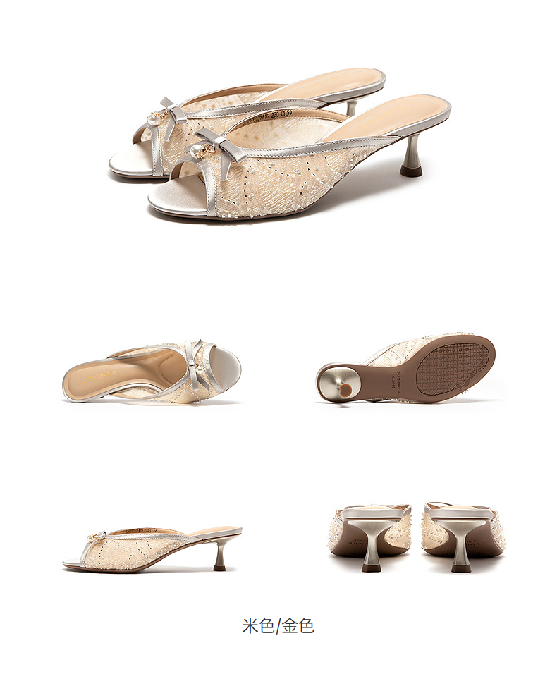 MIO米奥女鞋小香风凉鞋春夏新款甜美链条蝴蝶结法式浅口单鞋皮鞋M252240712
