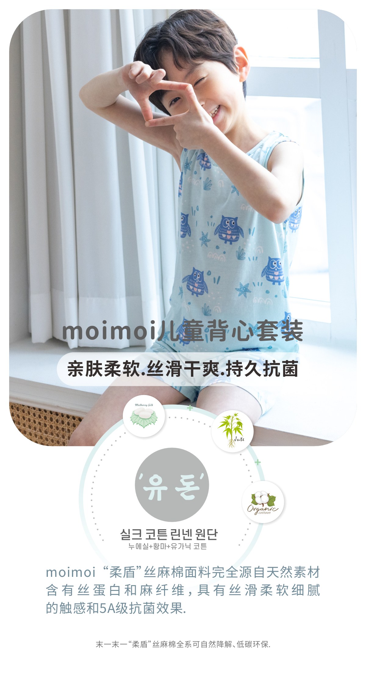 【云优选】韩国moimoi {背心套} 春夏丝麻棉儿童家居服睡衣