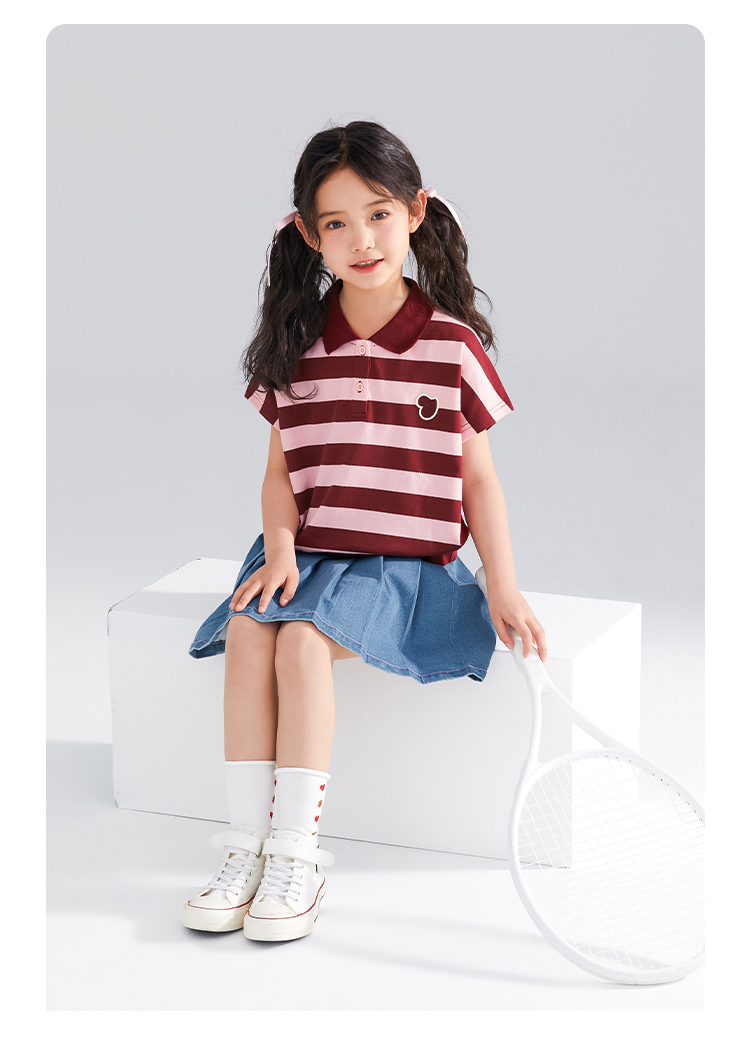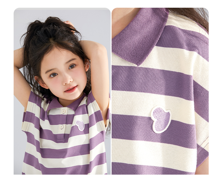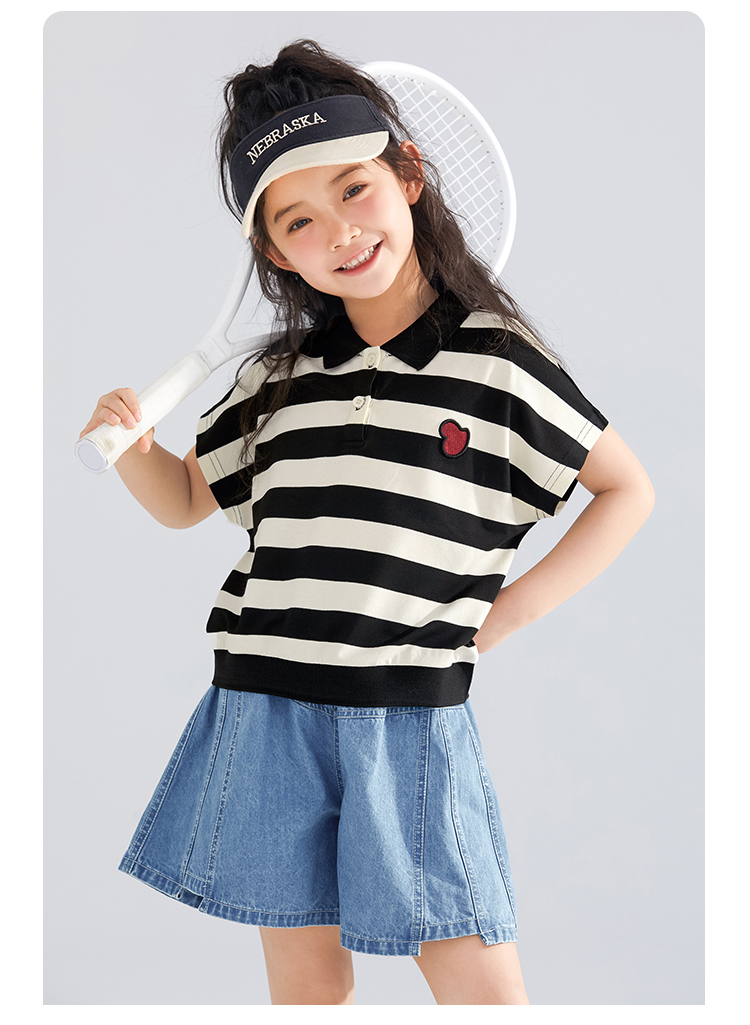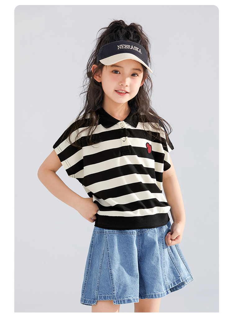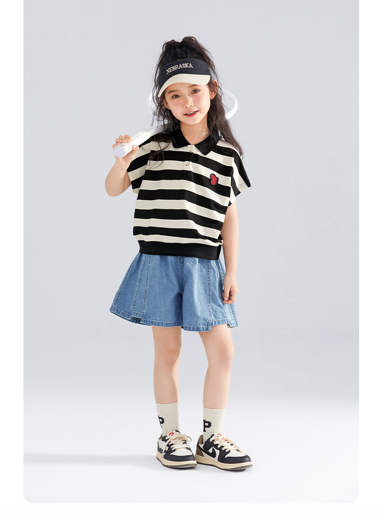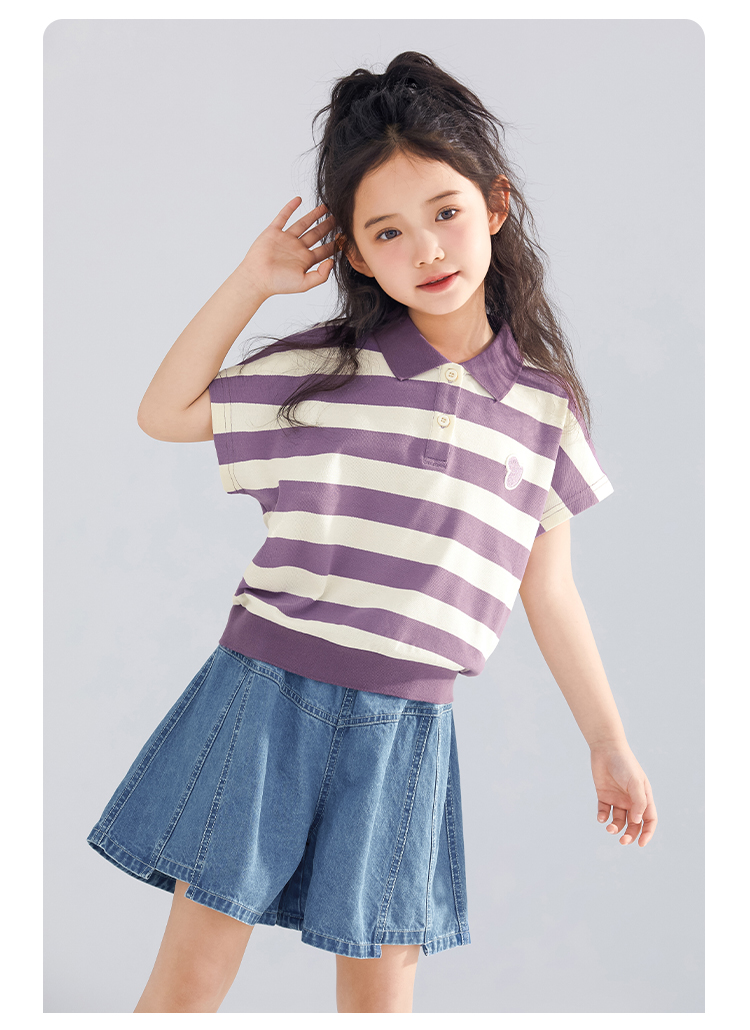 【120-165】【可可鸭】女童polo衫短袖条纹T恤翻领衫
