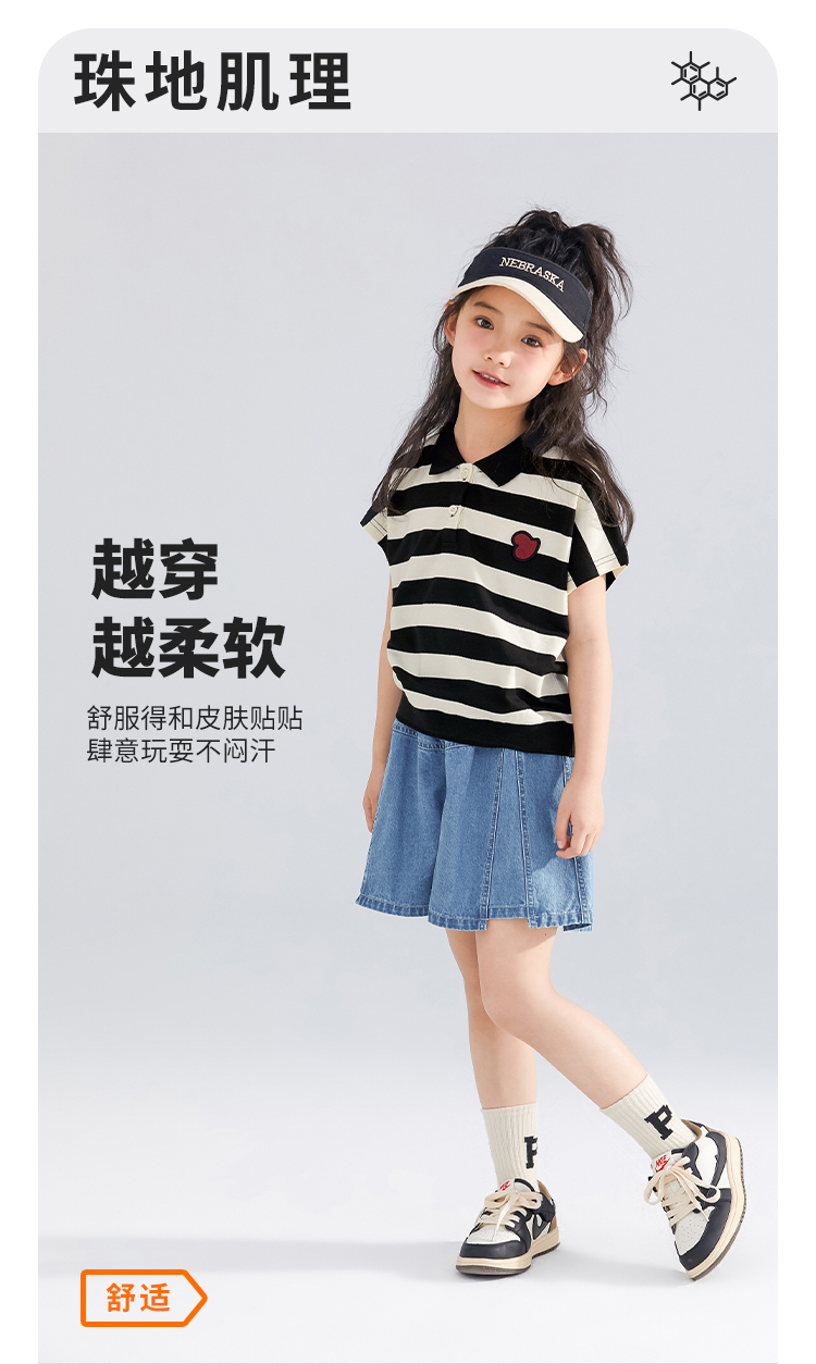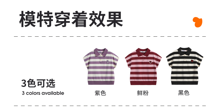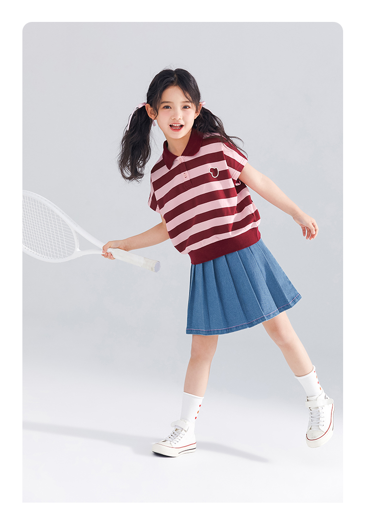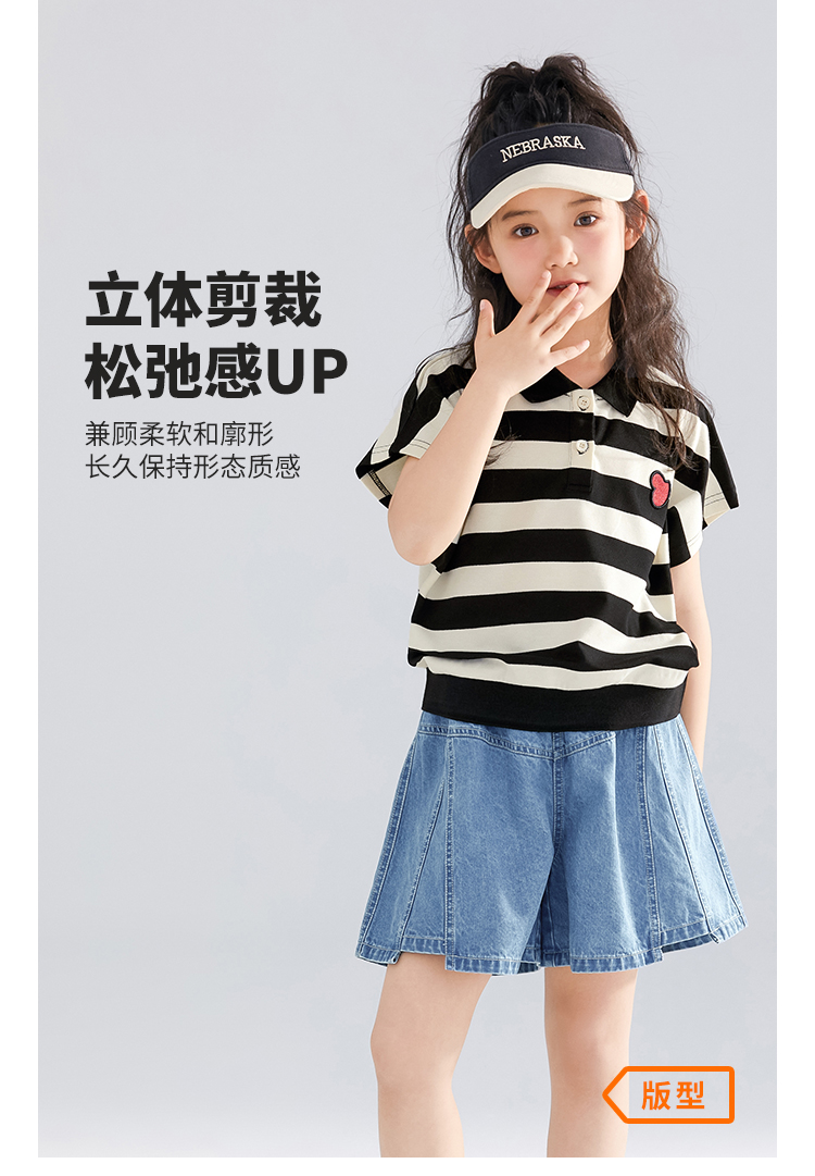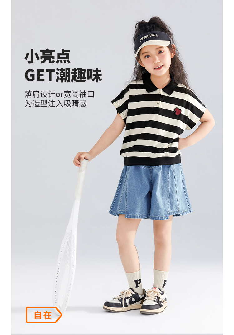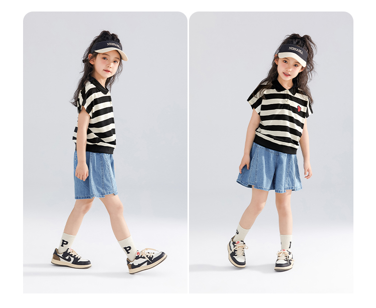【120-165】【可可鸭】女童polo衫短袖条纹T恤翻领衫