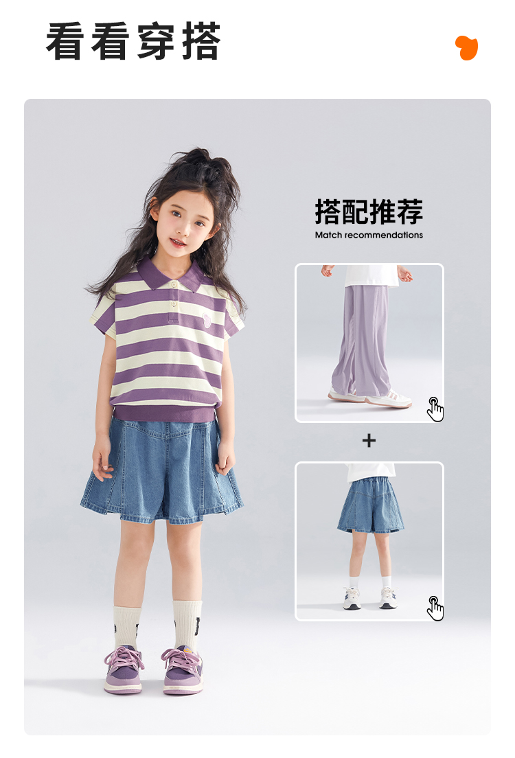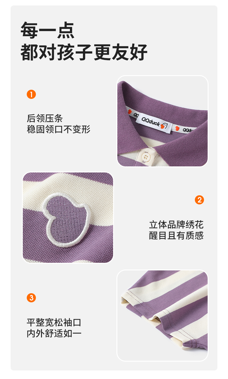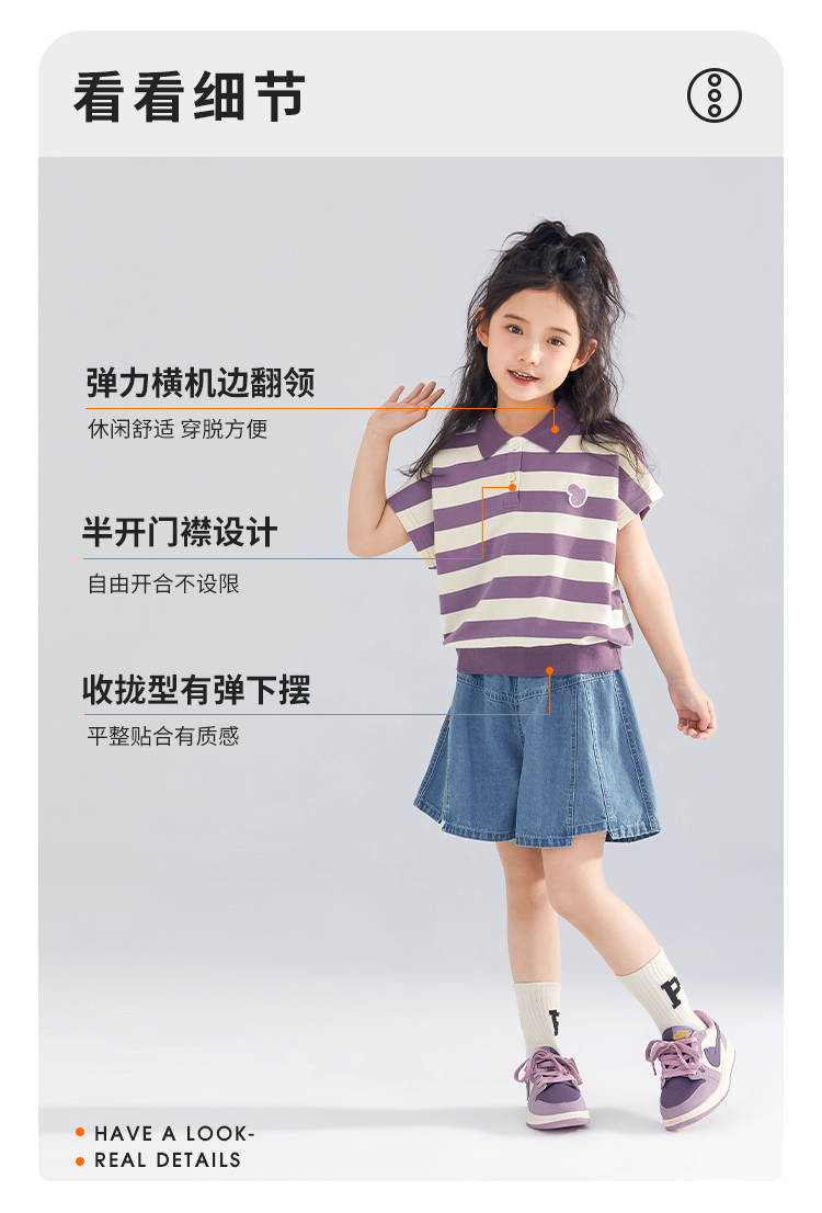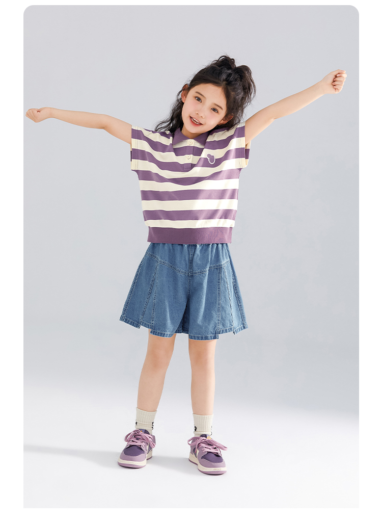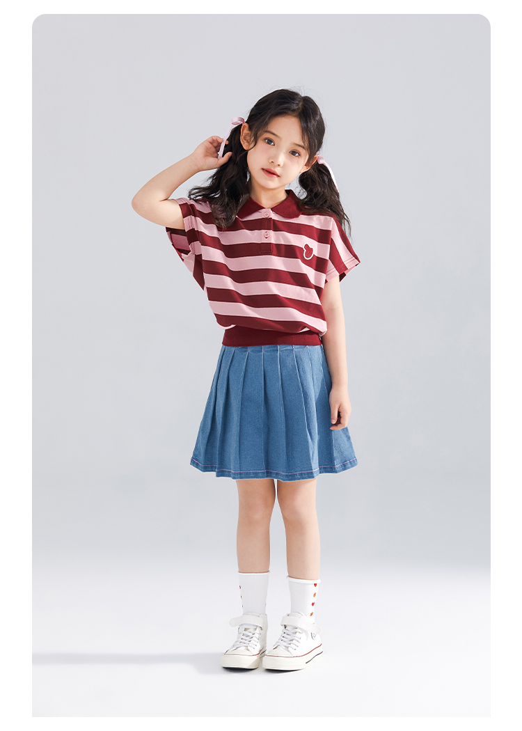 【120-165】【可可鸭】女童polo衫短袖条纹T恤翻领衫