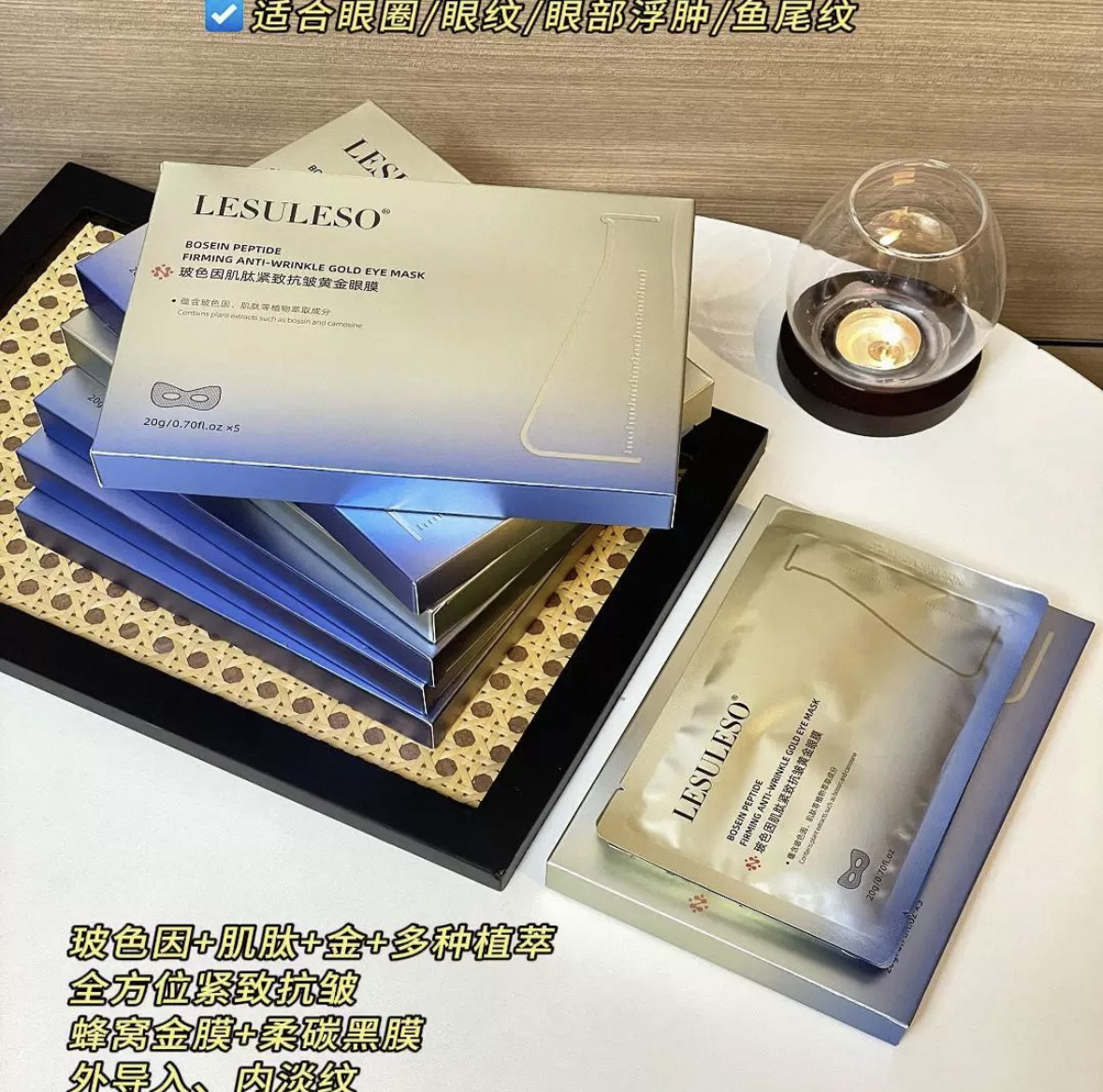 LESULESO · 丽素玻色因黄金抚纹修护眼膜淡纹水润保湿院线专供护理眼膜一盒5片