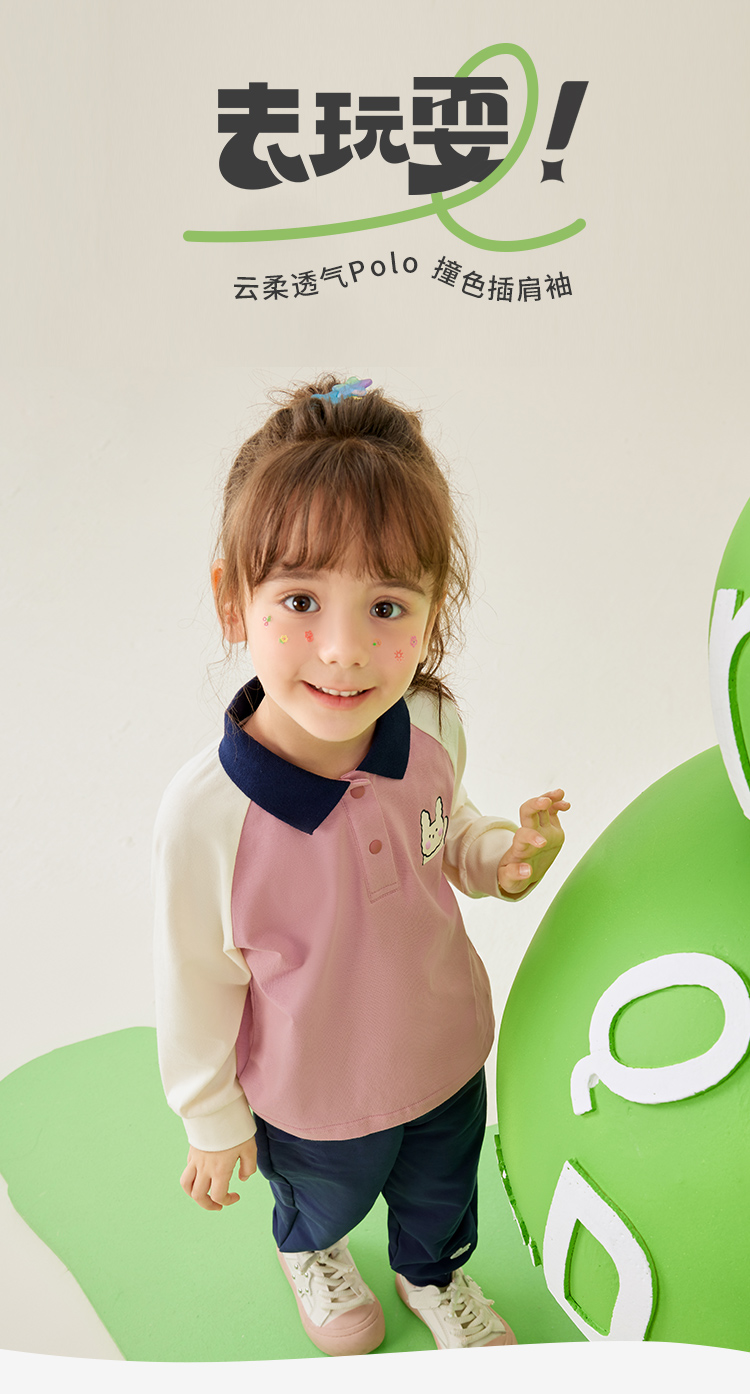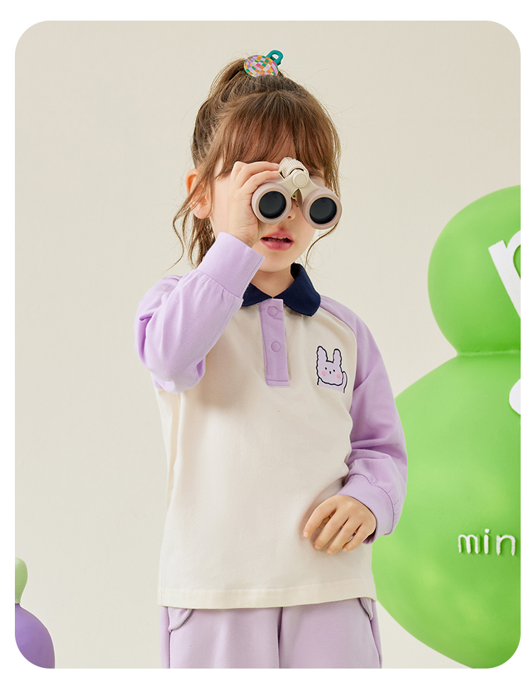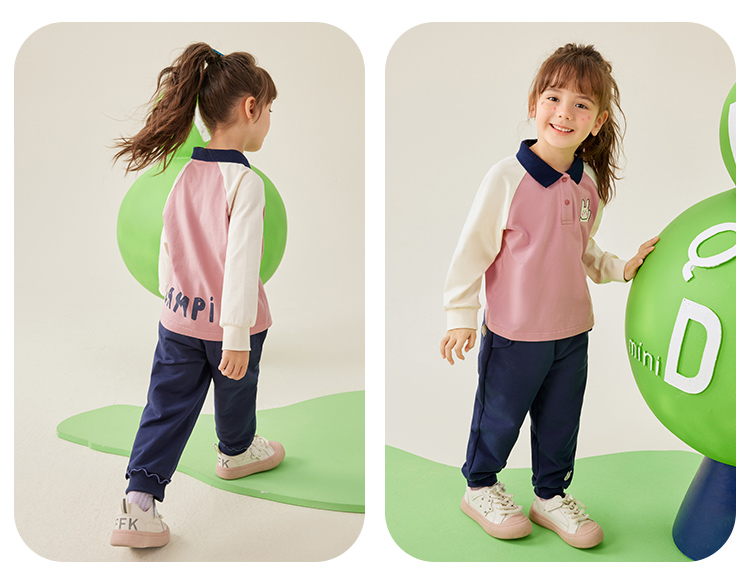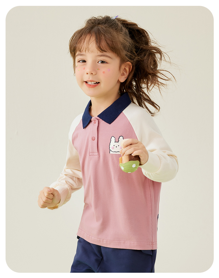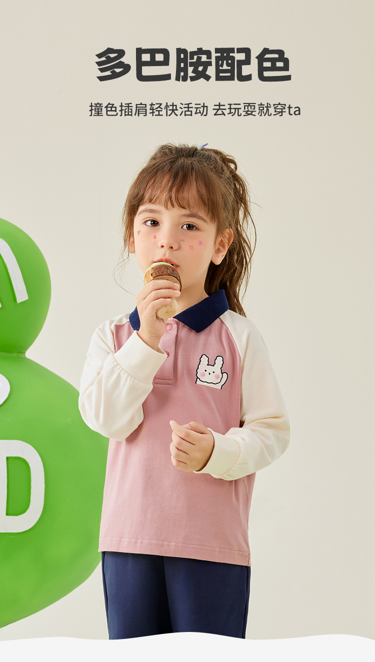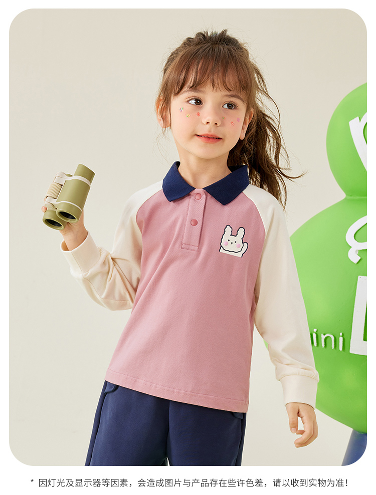 【80-140】【MQDmin】女童春秋长袖t恤撞色插肩袖POLO衫(95%棉 5%氨纶)