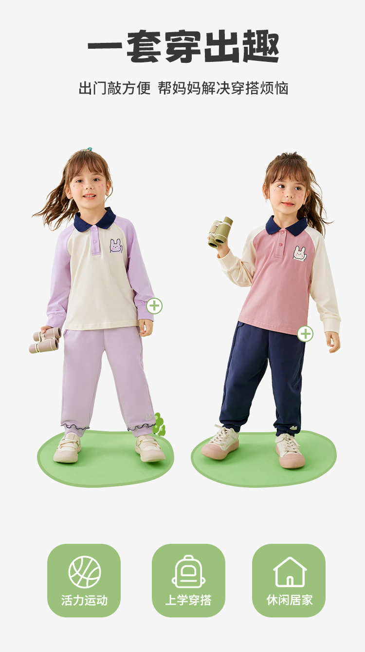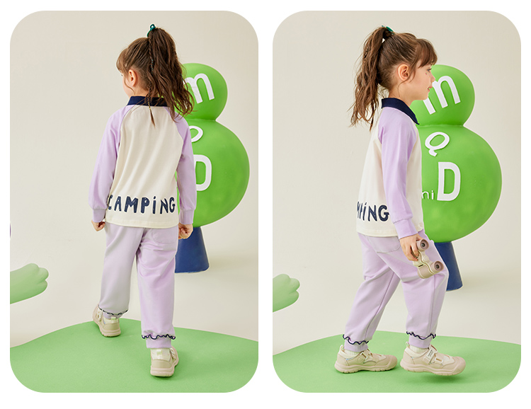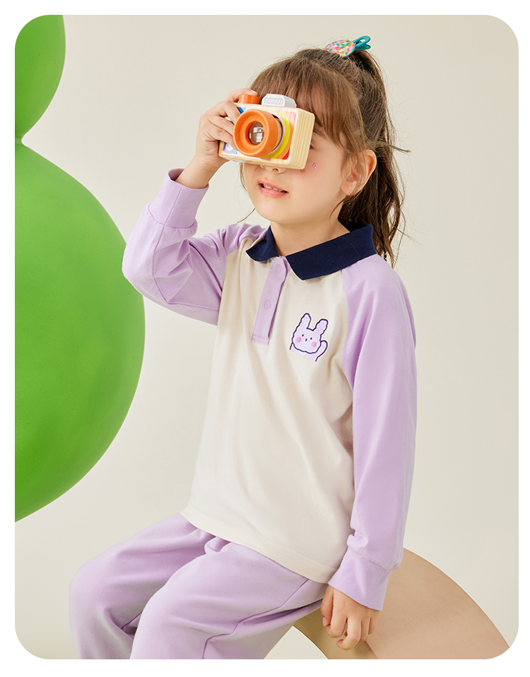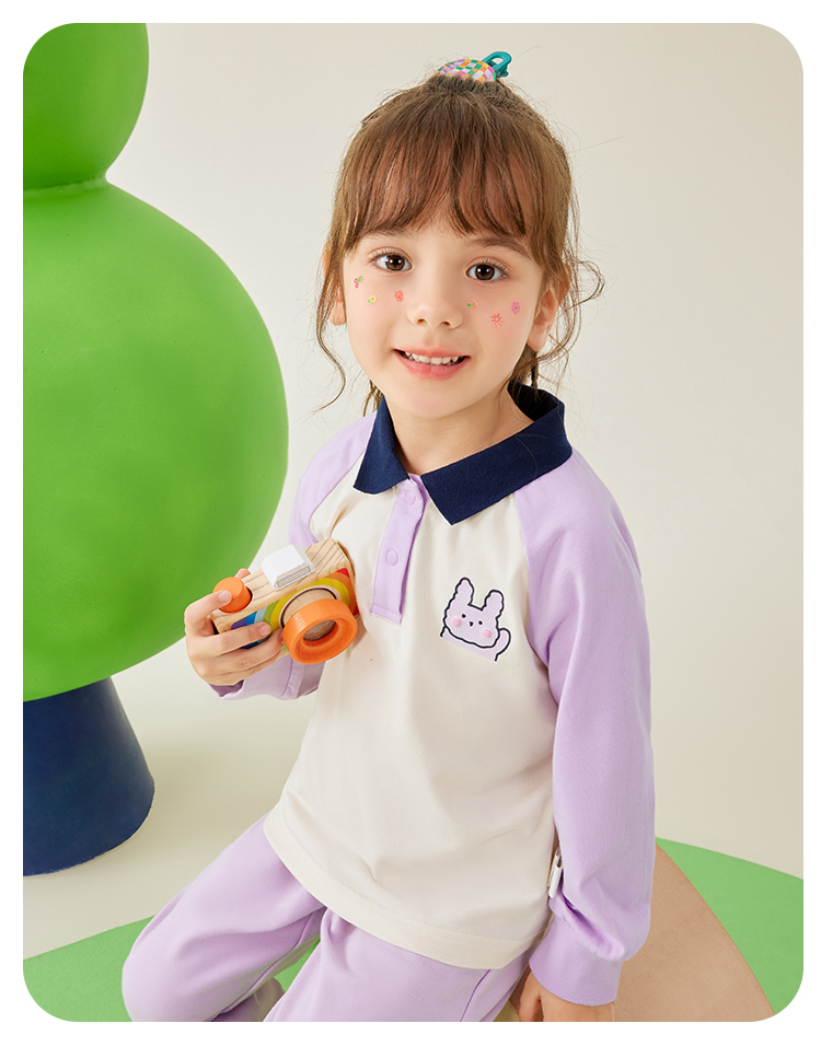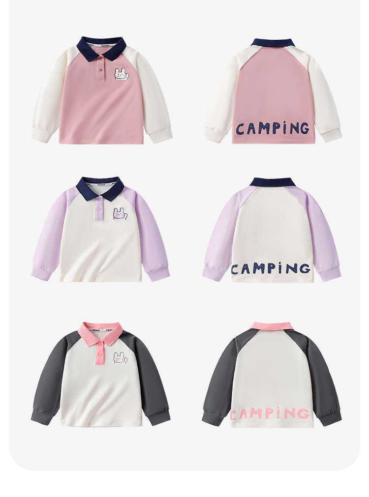 【80-140】【MQDmin】女童春秋长袖t恤撞色插肩袖POLO衫(95%棉 5%氨纶)