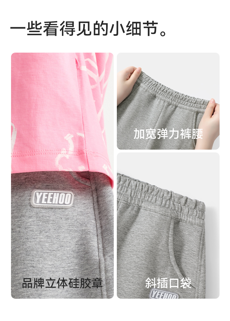【两件套】【120-165】【可可鸭】女童夏季短袖短裤套装(上衣:95%棉 5%氨纶 裤子:100%棉)
