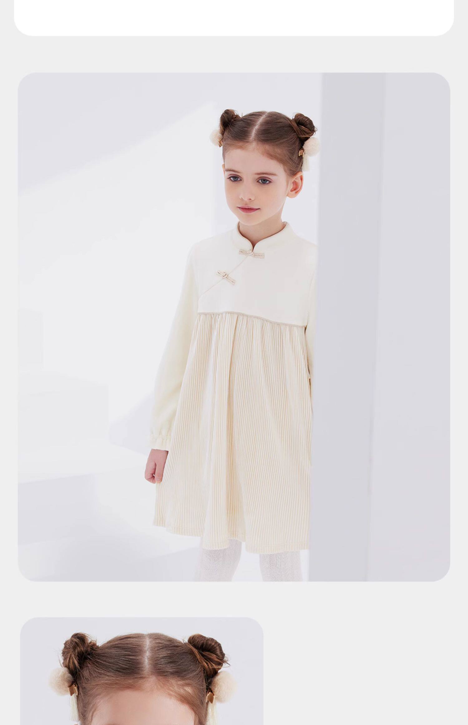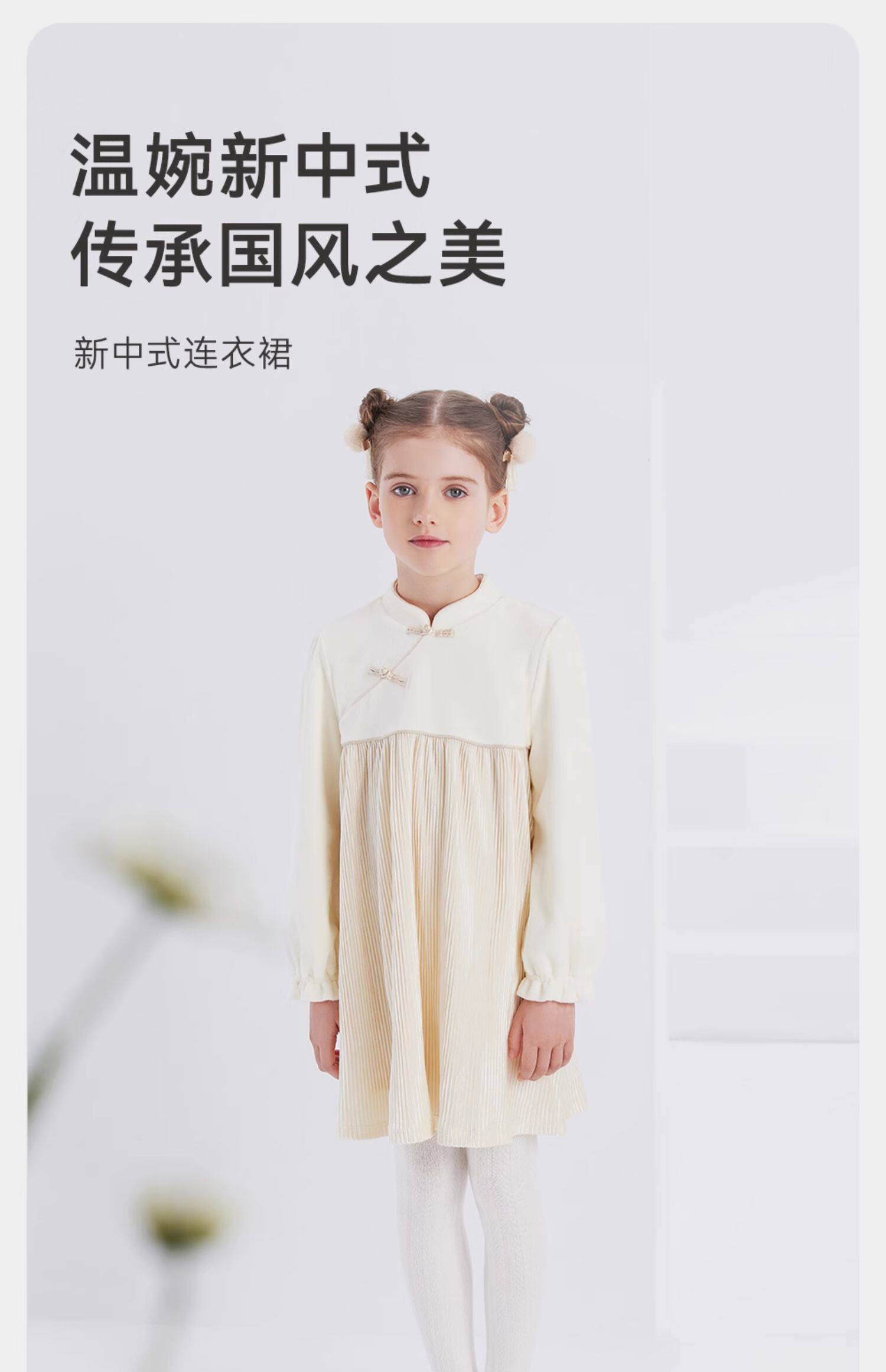 英氏女童连衣裙秋冬春季灯芯绒中式宝宝裙子秋冬YRLAJ42345A