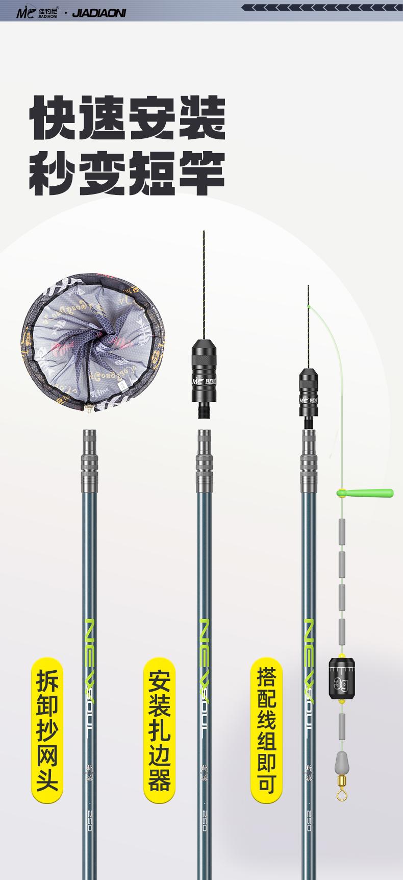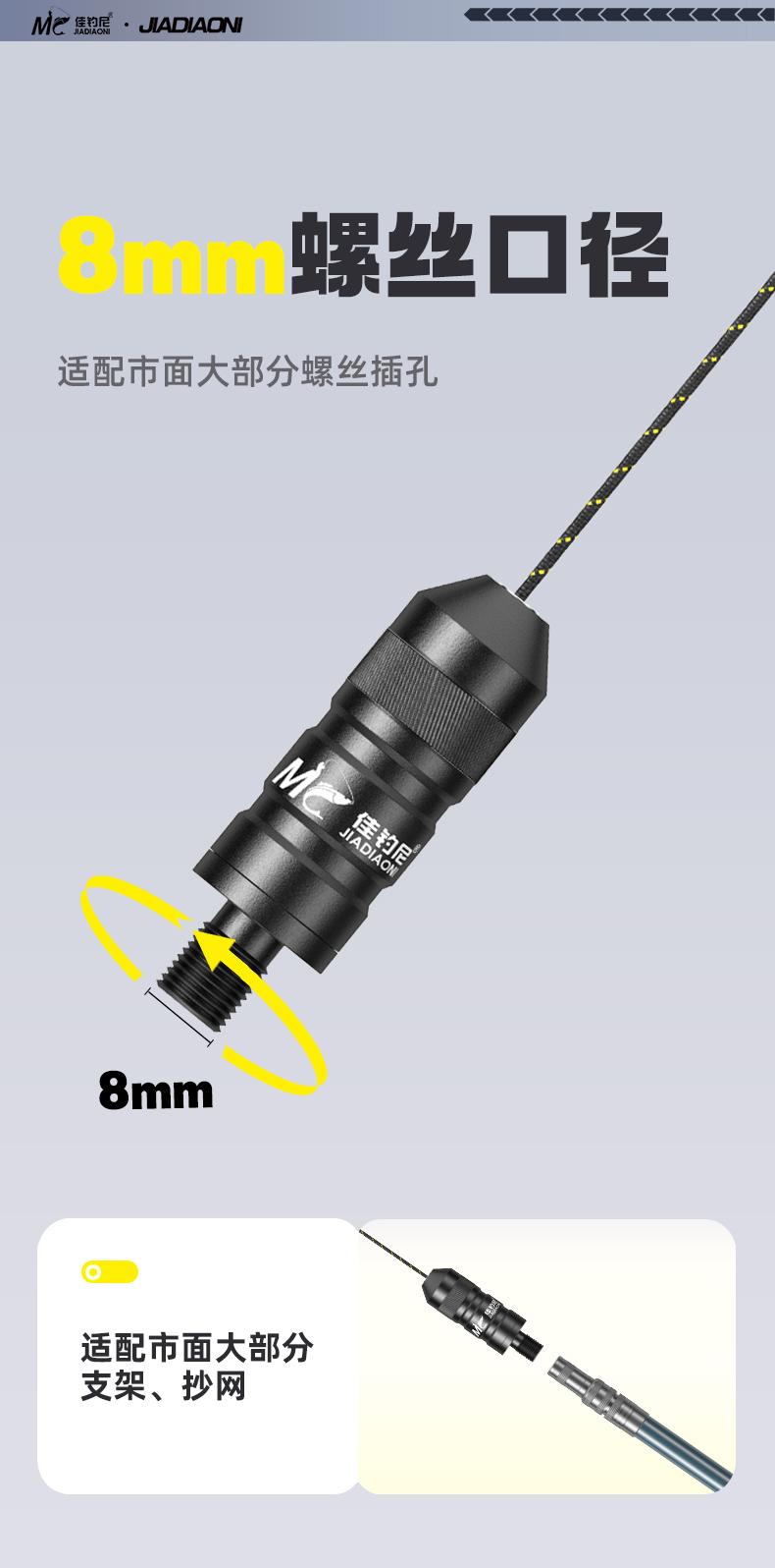 佳钓尼黑坑扎边器钓鱼配件钓边抄网杆变鱼竿支架改装接头竿稍绳