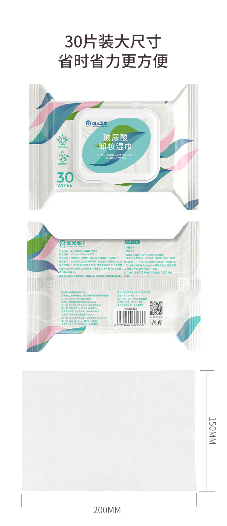【开学必备】国光玻尿酸卸妆湿巾30片带盖*10包(箱规) 温和无刺激脸部深层卸妆一次性水性【GPQ】
