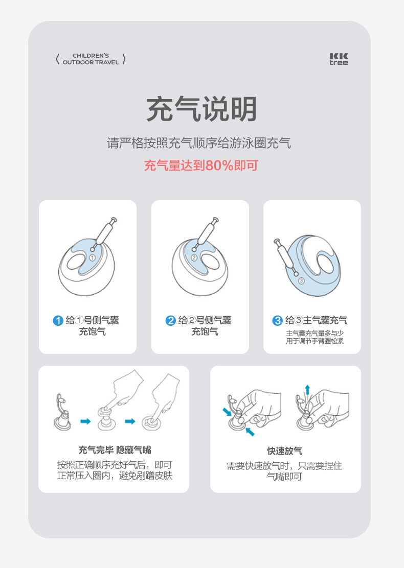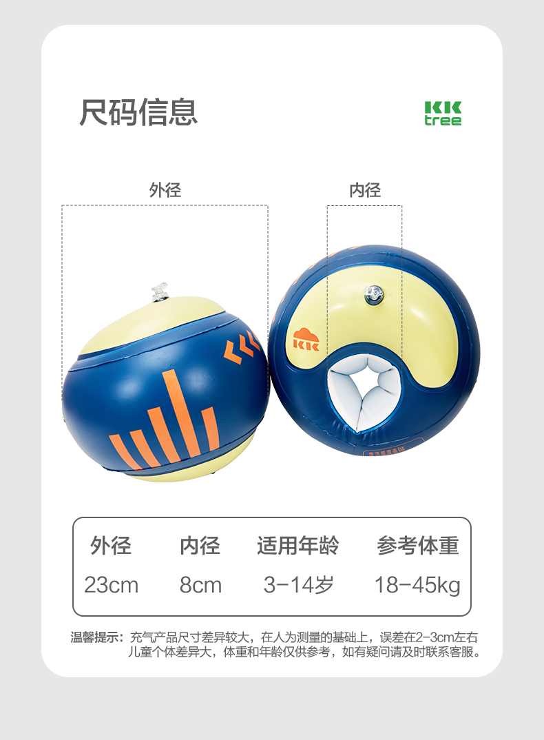 KK树儿童游泳圈宝宝手臂圈三气囊男女孩水袖3岁以上浮袖辅助装备