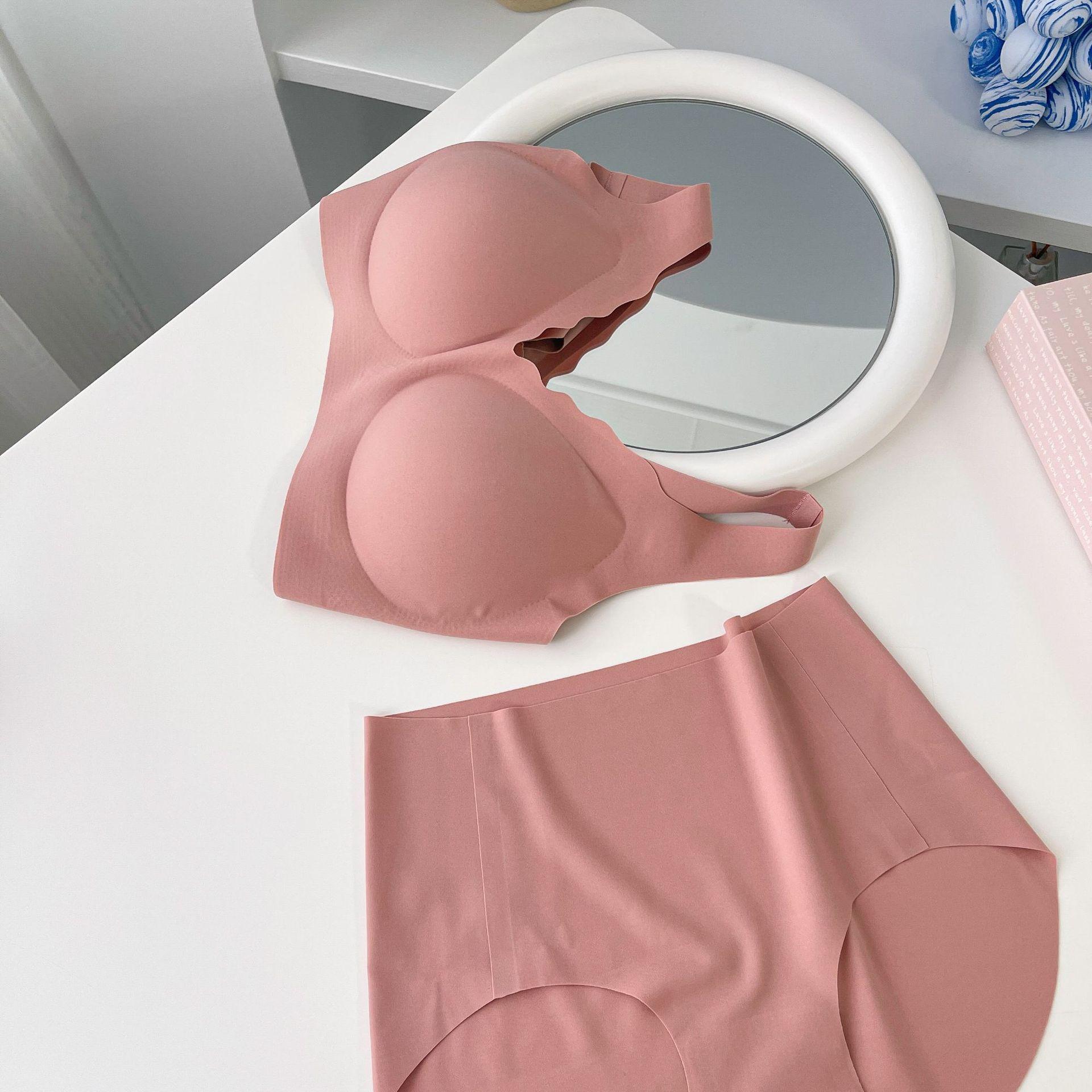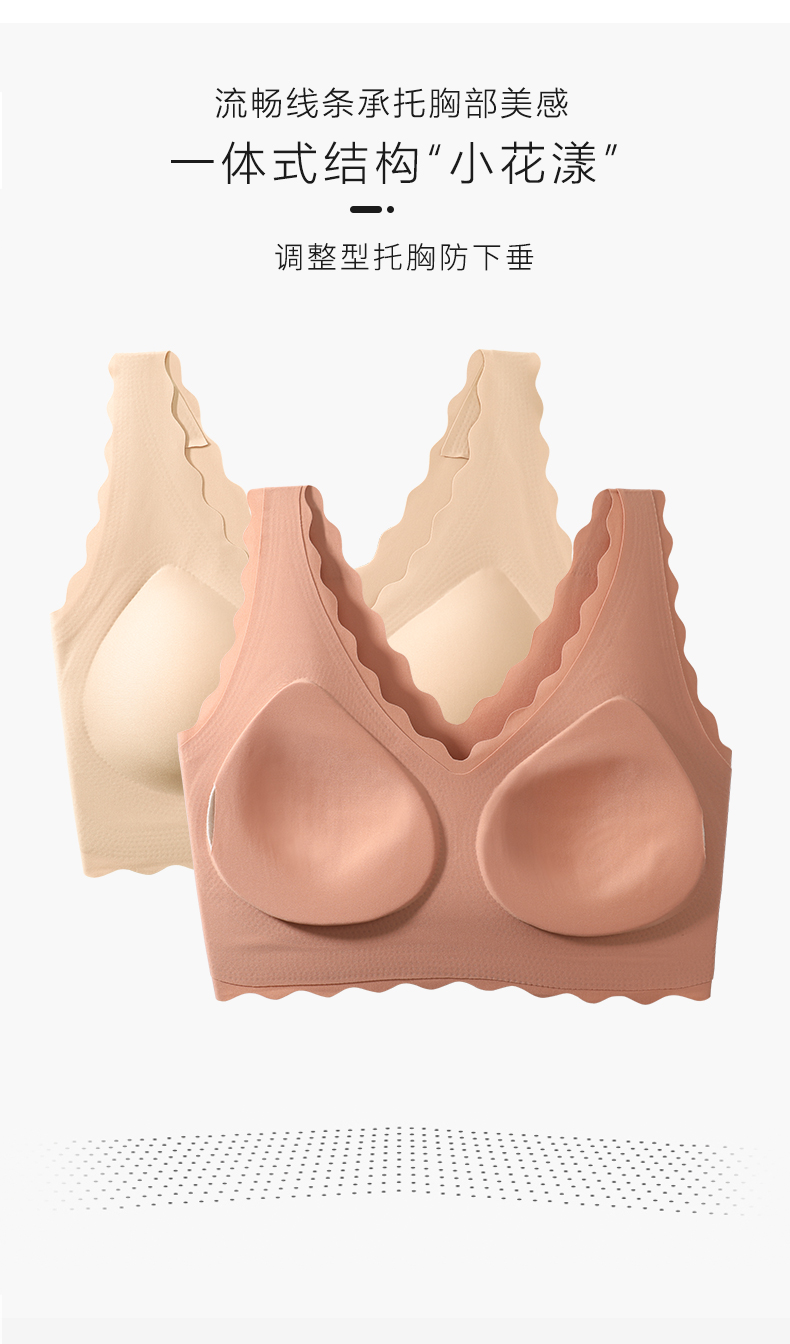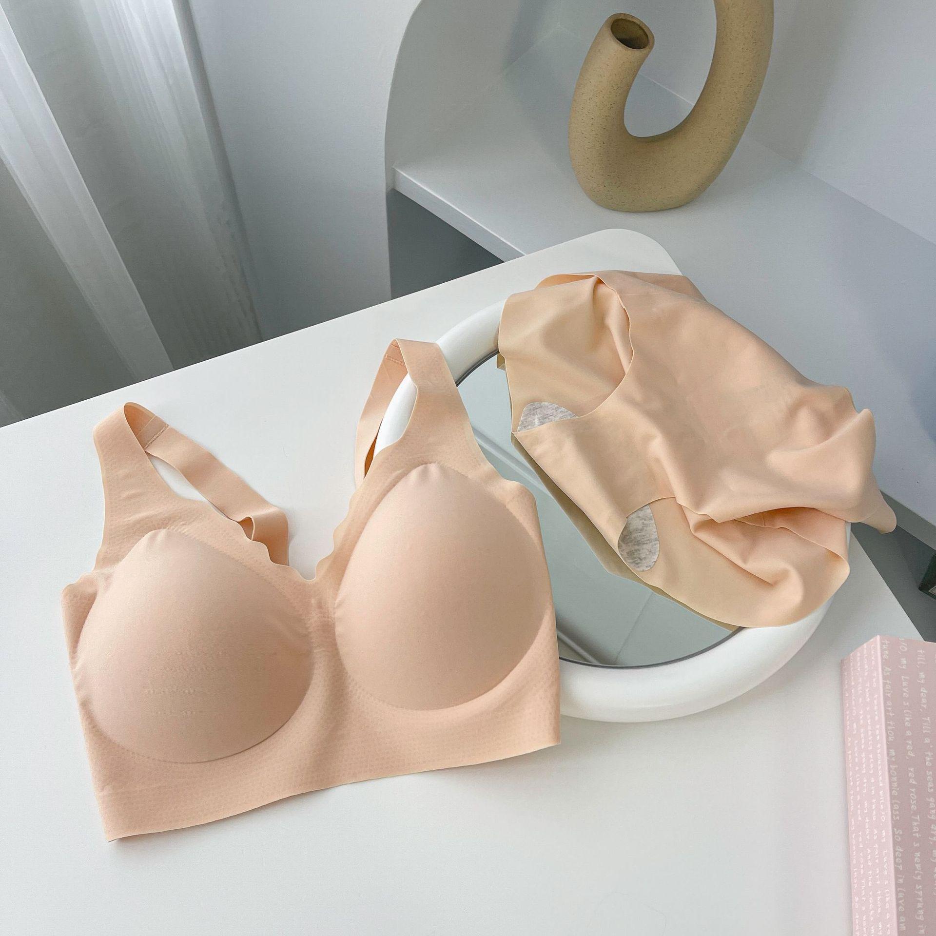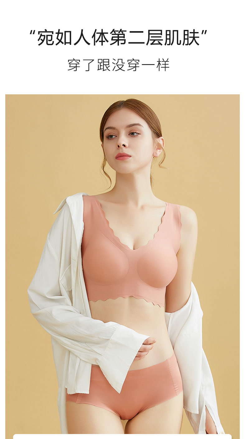 下单即送同款式内裤!「娜比同款」 云感深V小浪花文胸套装 无痕一片式 无钢圈 透气薄款内衣