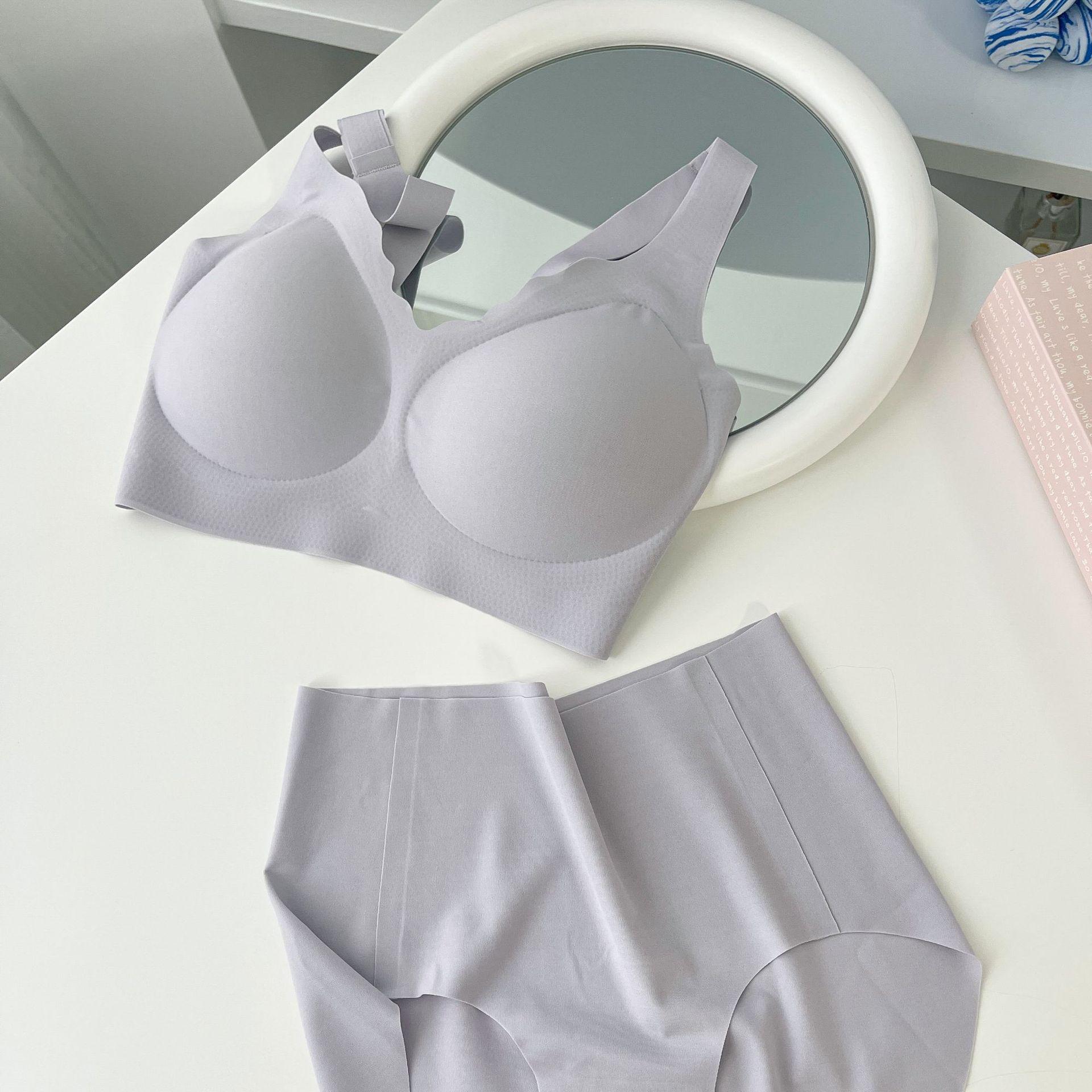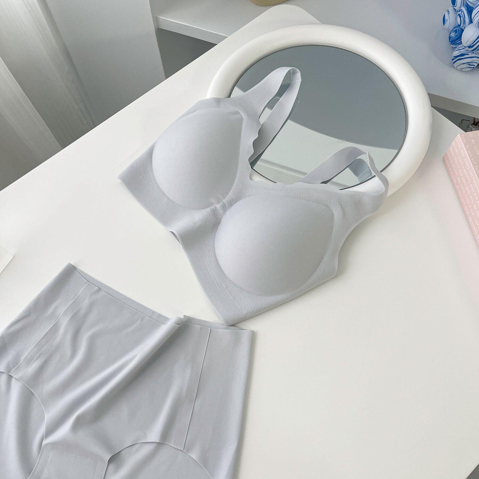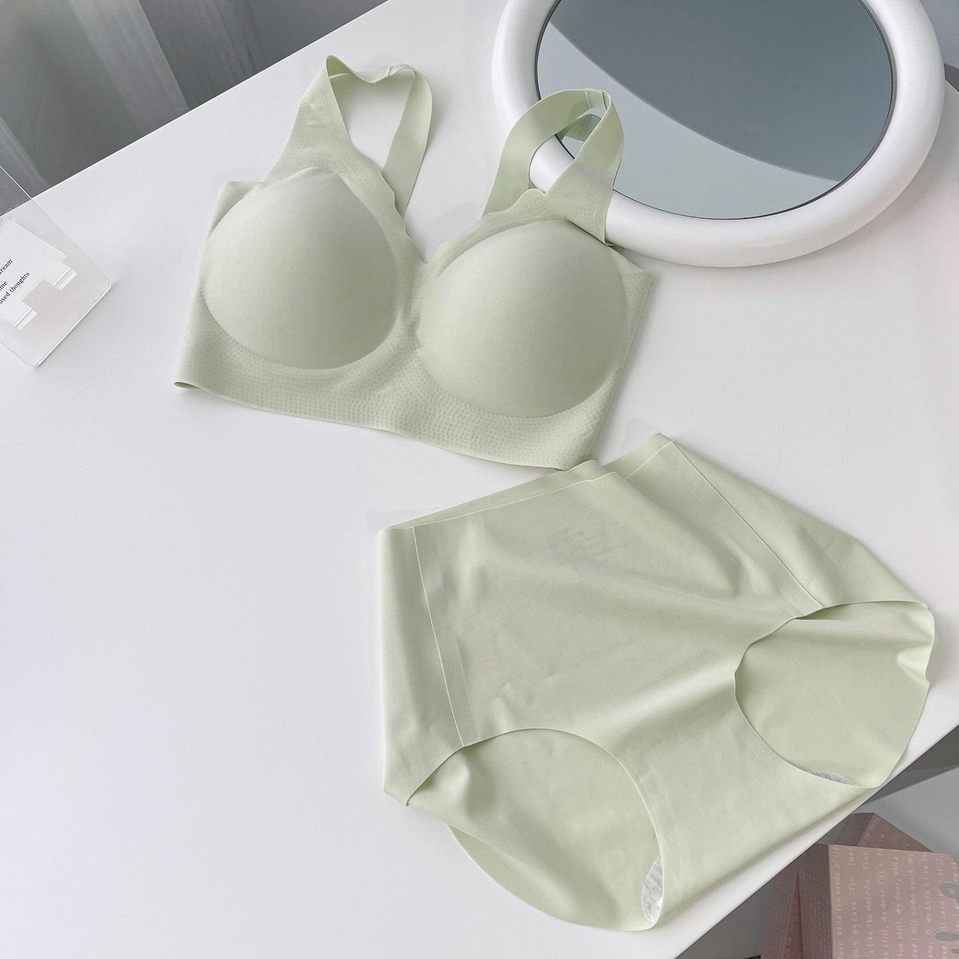 下单即送同款式内裤!「娜比同款」 云感深V小浪花文胸套装 无痕一片式 无钢圈 透气薄款内衣