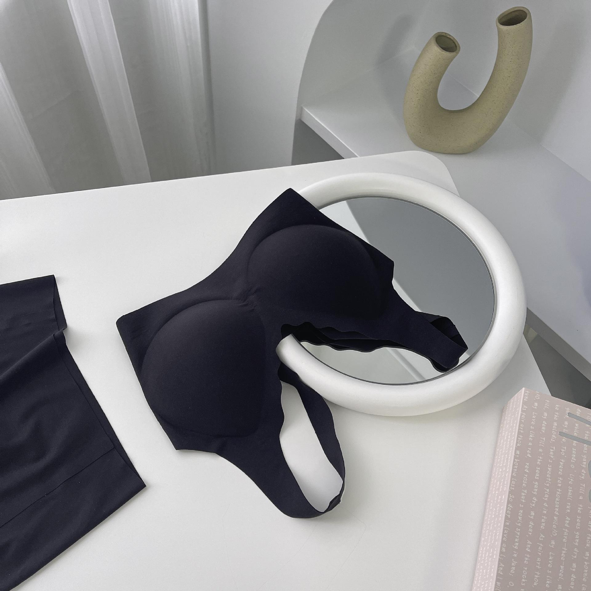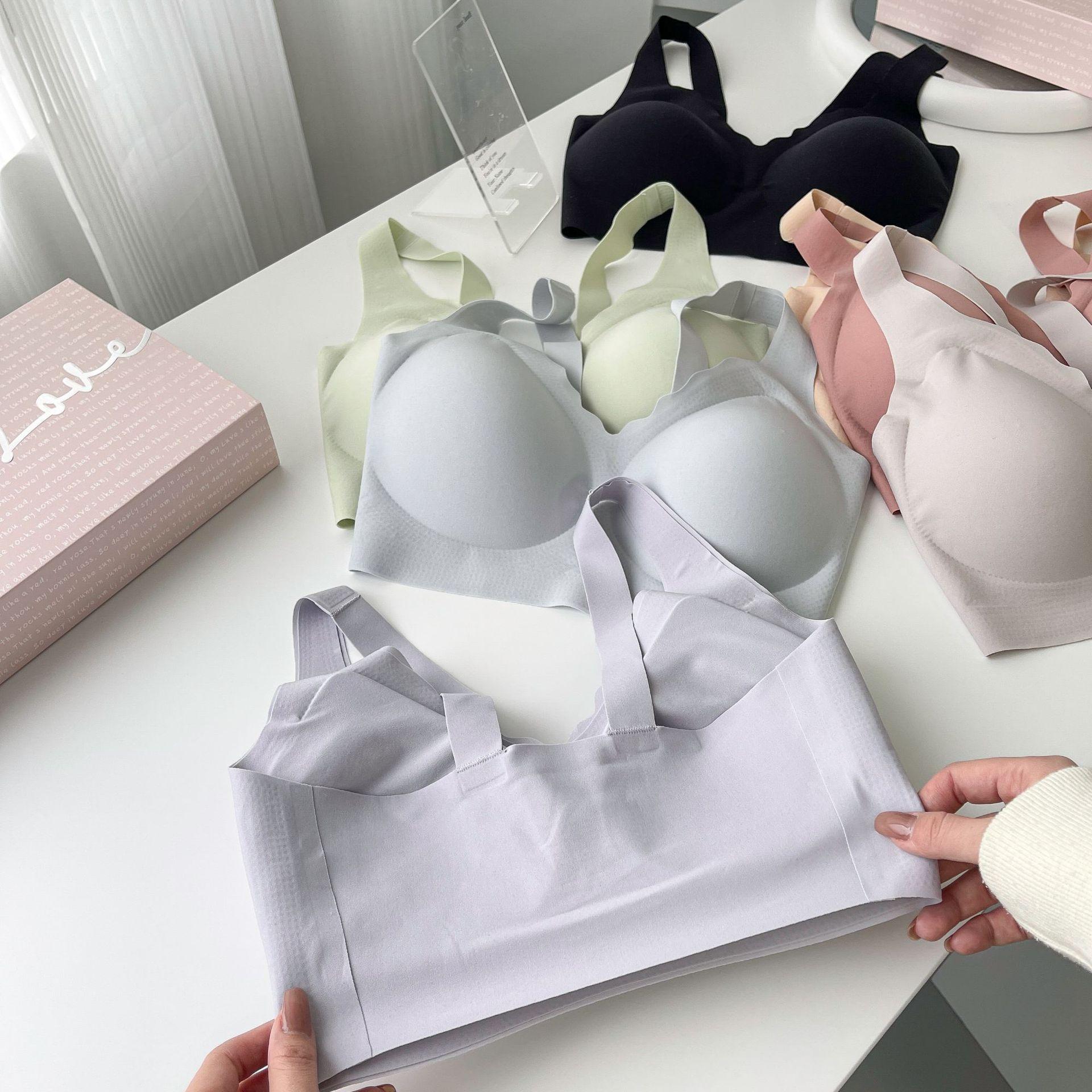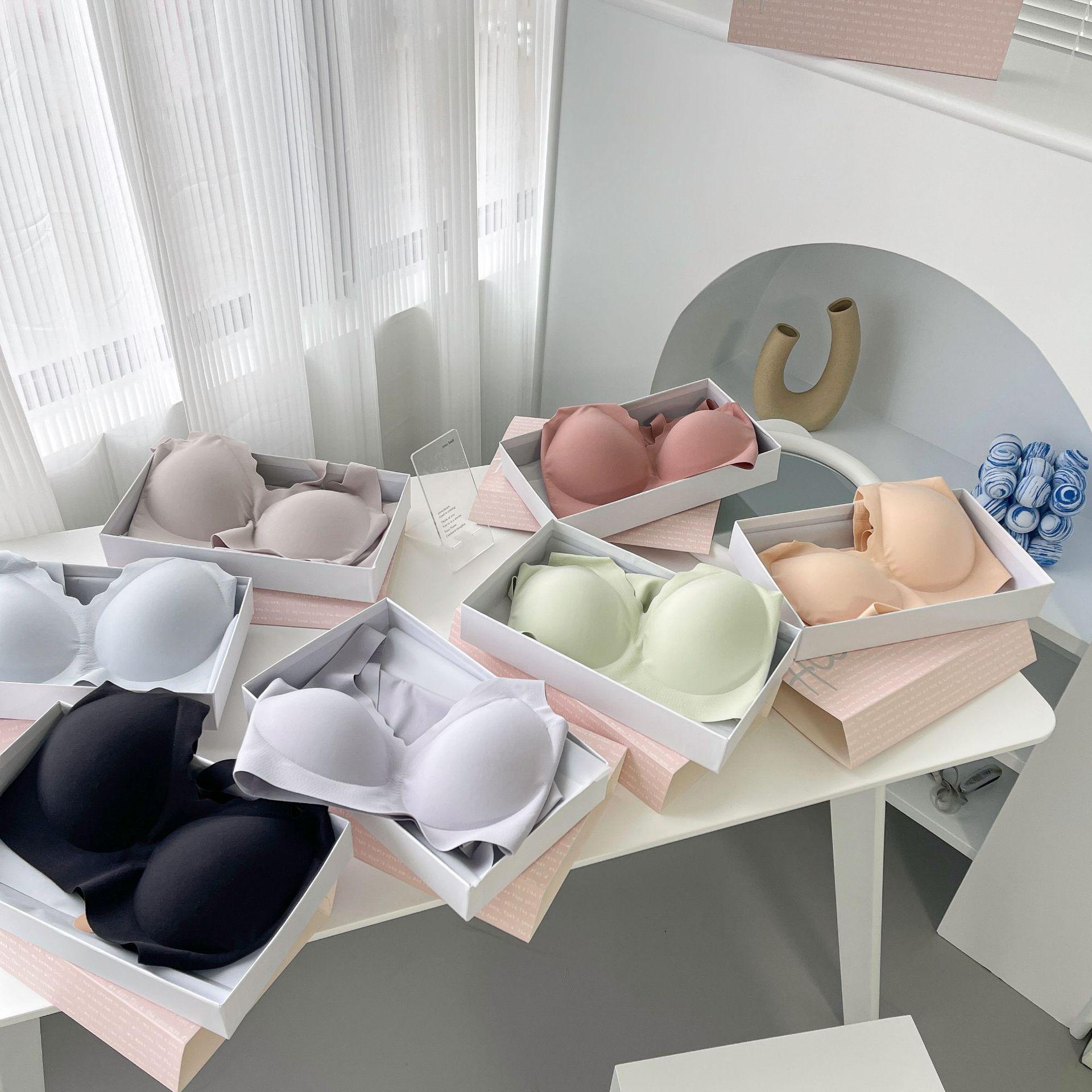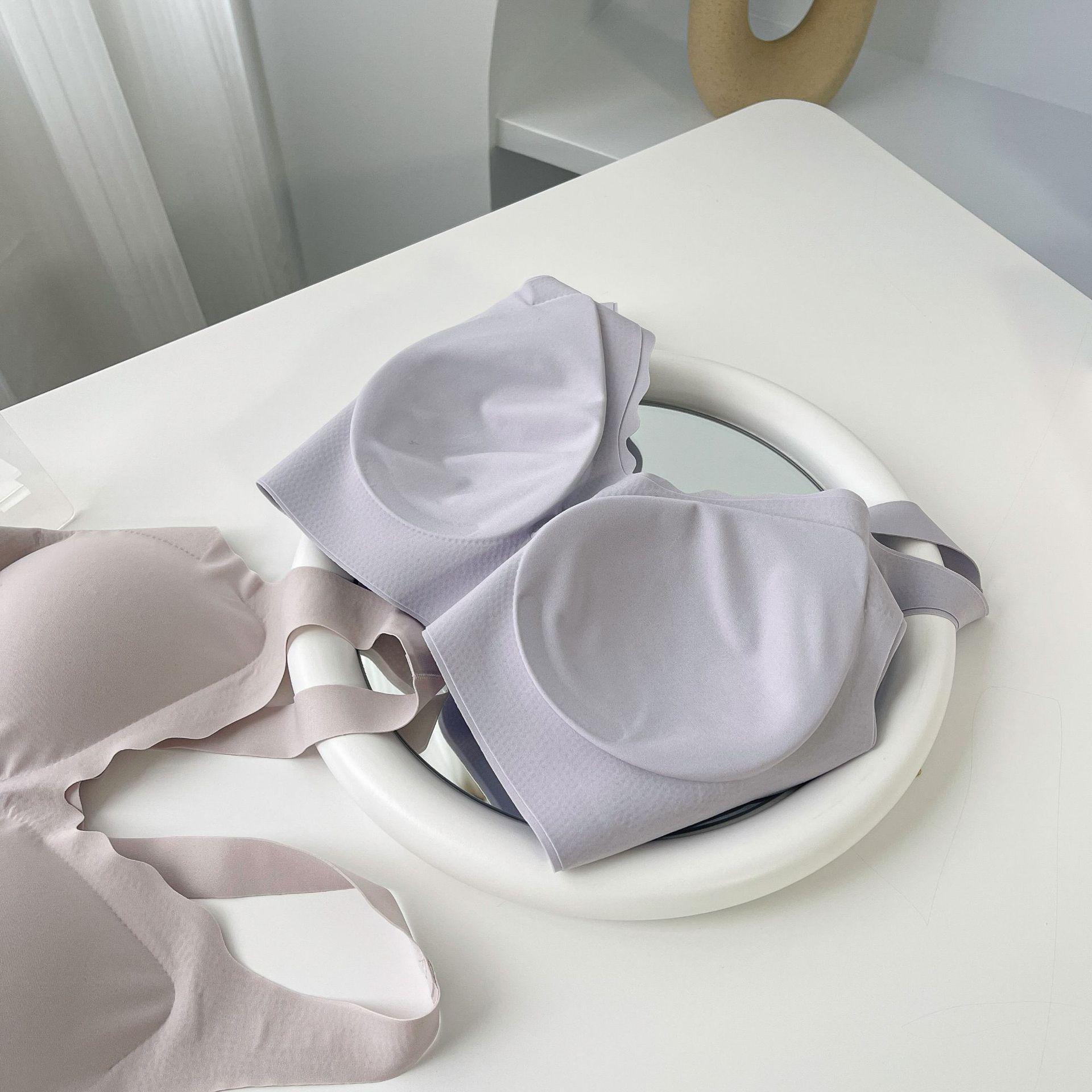 下单即送同款式内裤!「娜比同款」 云感深V小浪花文胸套装 无痕一片式 无钢圈 透气薄款内衣