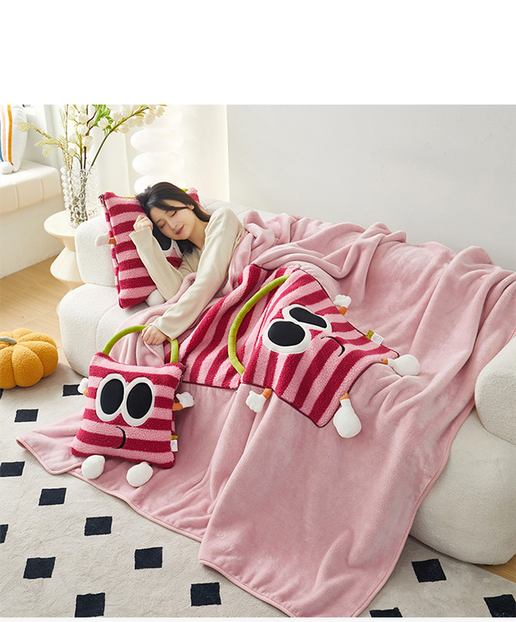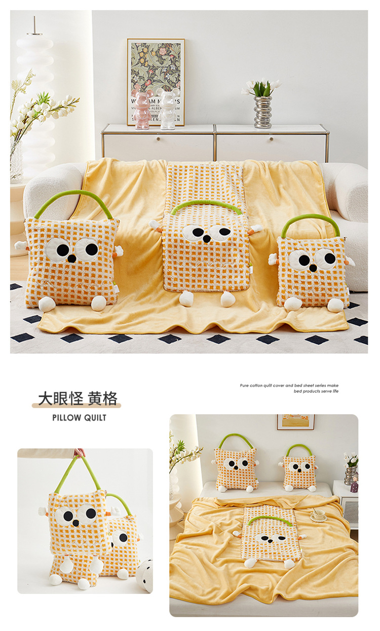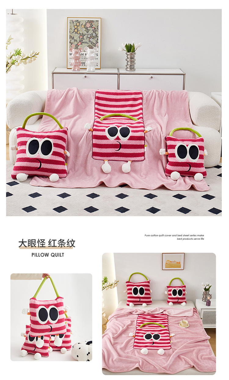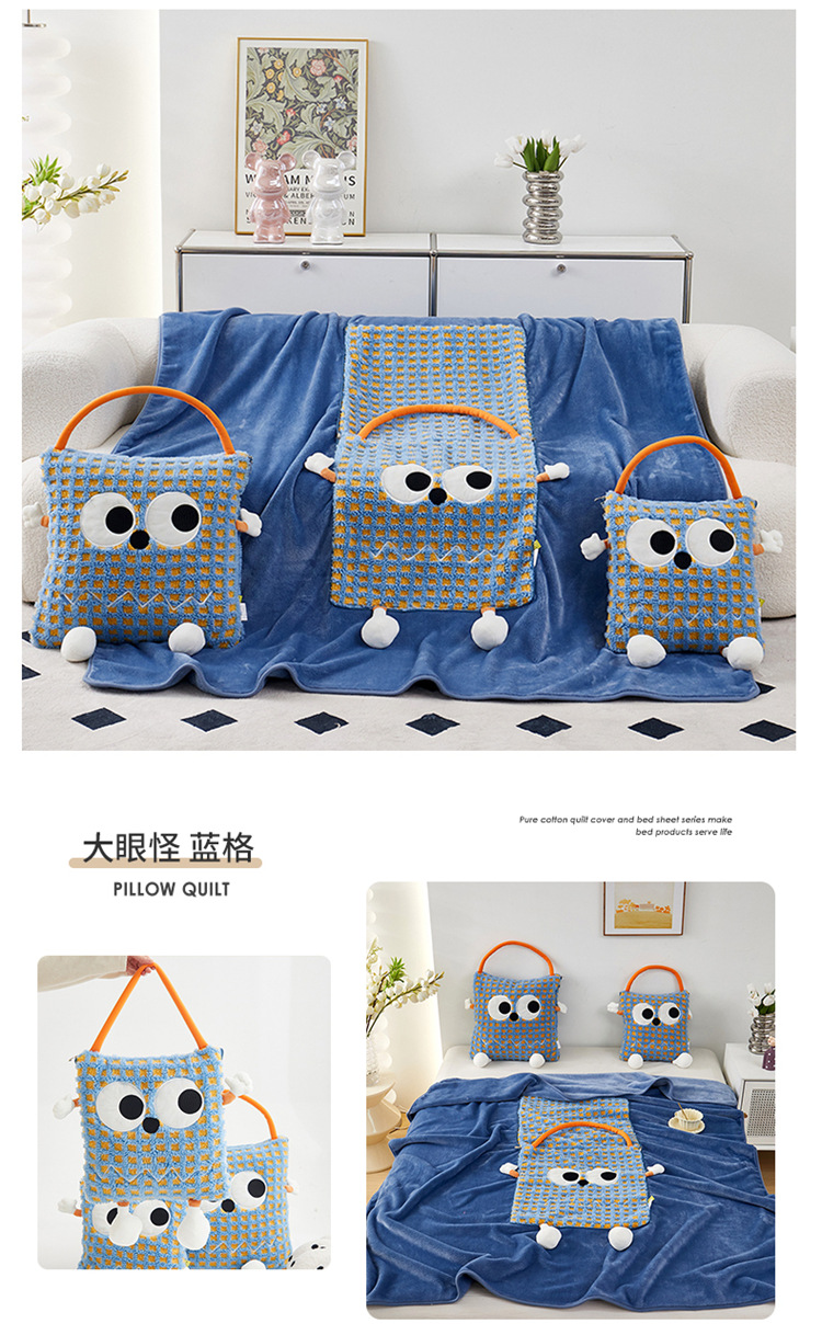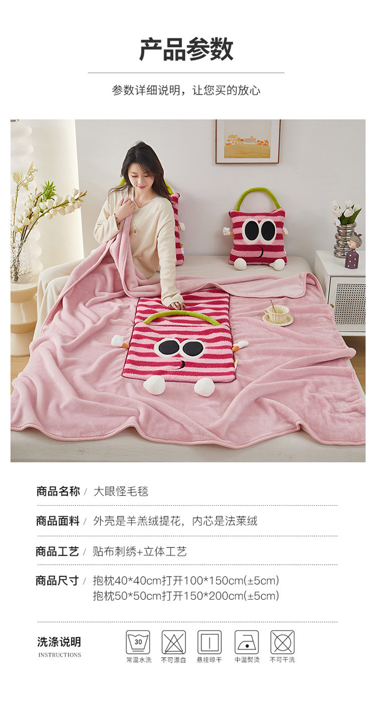 【大眼怪刺绣羊羔绒抱枕被】秋冬季法兰绒毛毯 多巴胺午休办公车用 靠垫被抱枕毯