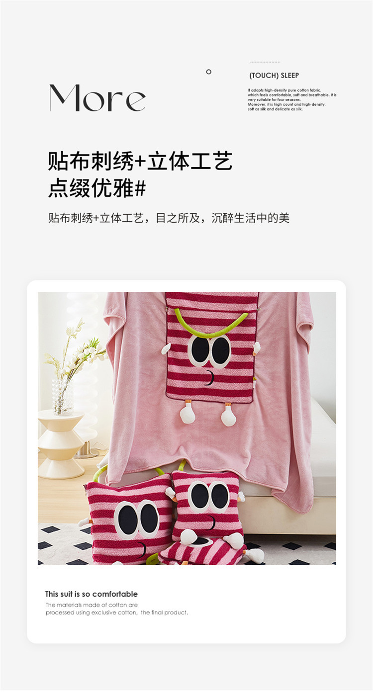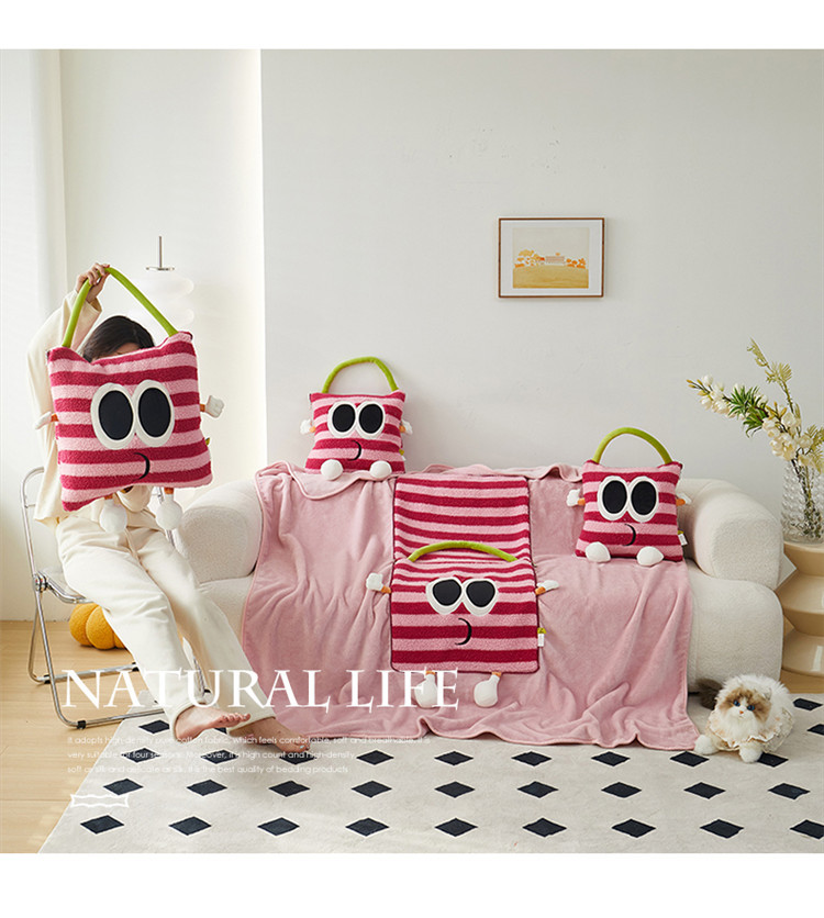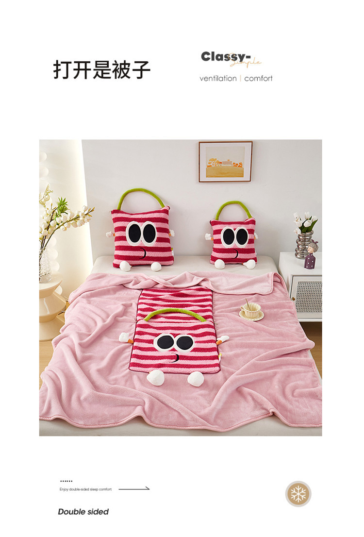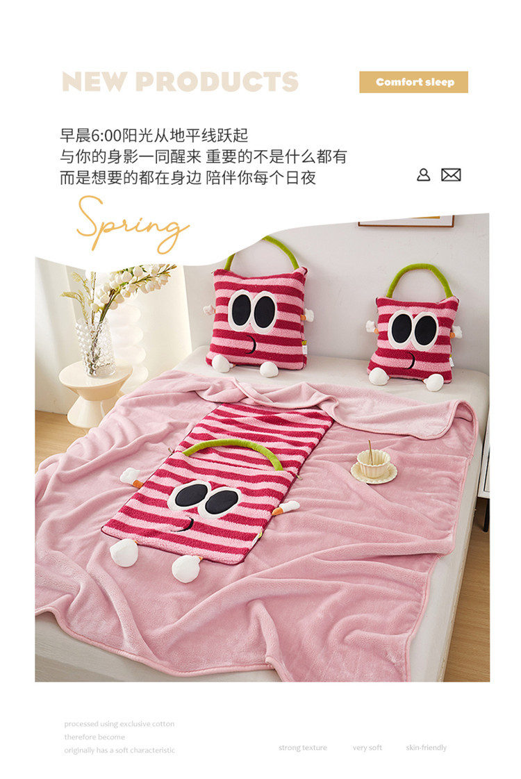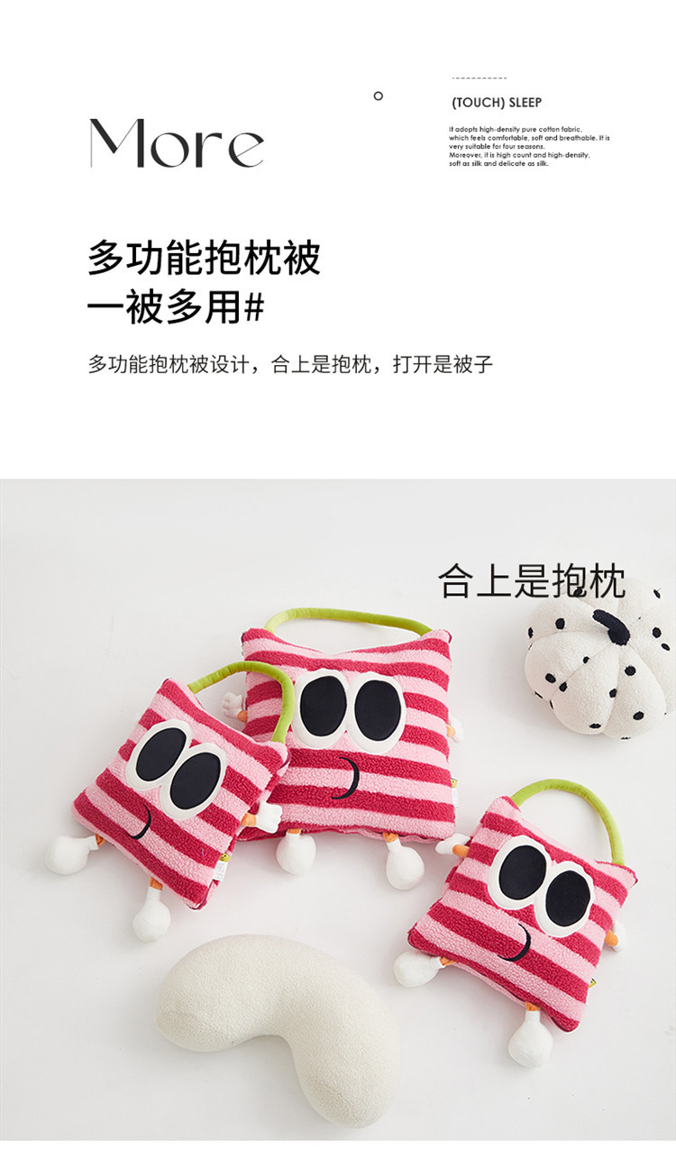 【大眼怪刺绣羊羔绒抱枕被】秋冬季法兰绒毛毯 多巴胺午休办公车用 靠垫被抱枕毯