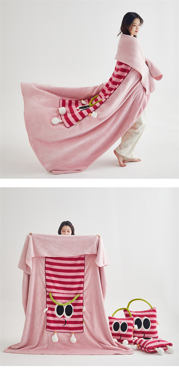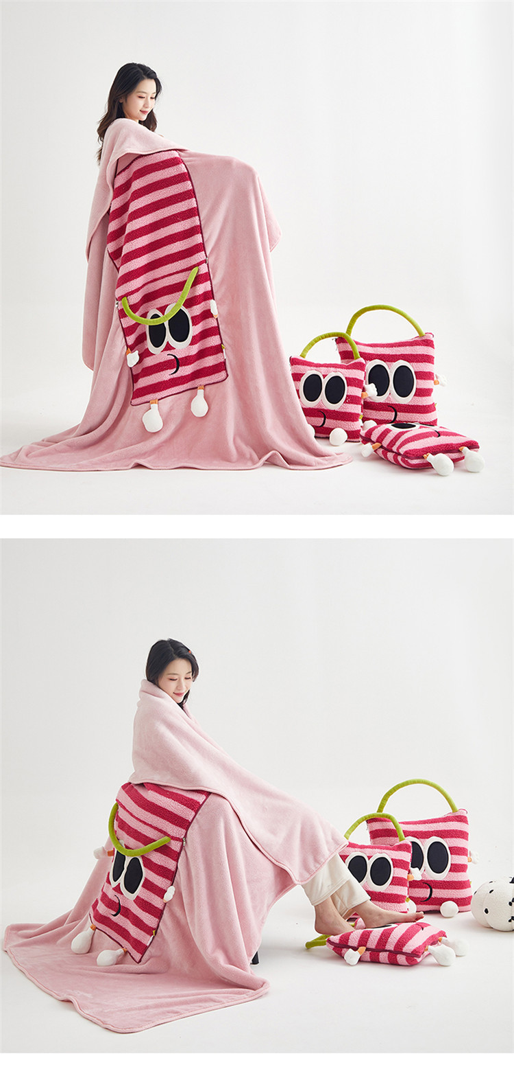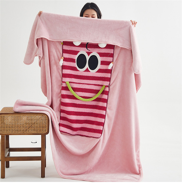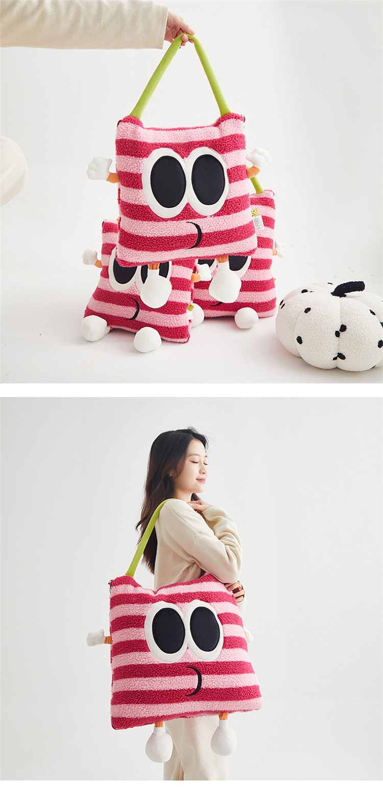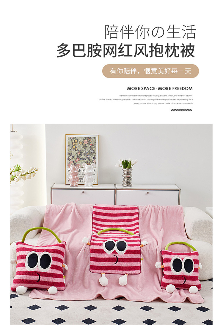 【大眼怪刺绣羊羔绒抱枕被】秋冬季法兰绒毛毯 多巴胺午休办公车用 靠垫被抱枕毯