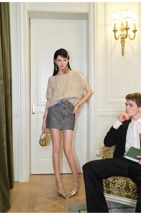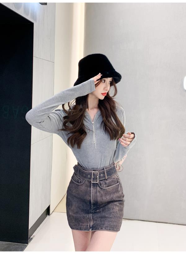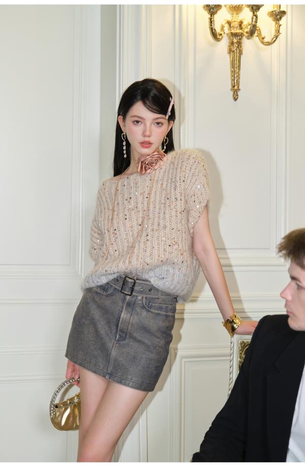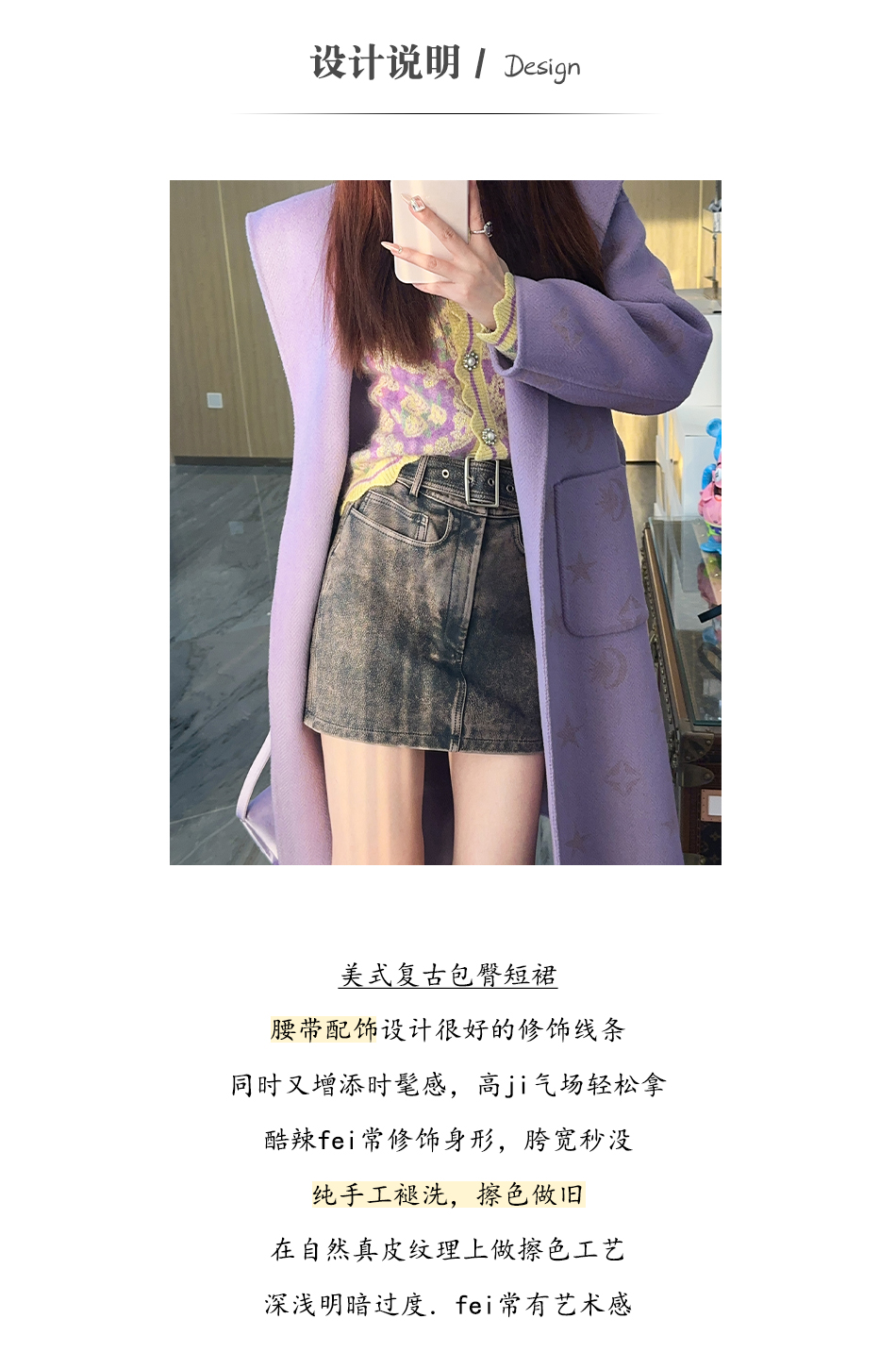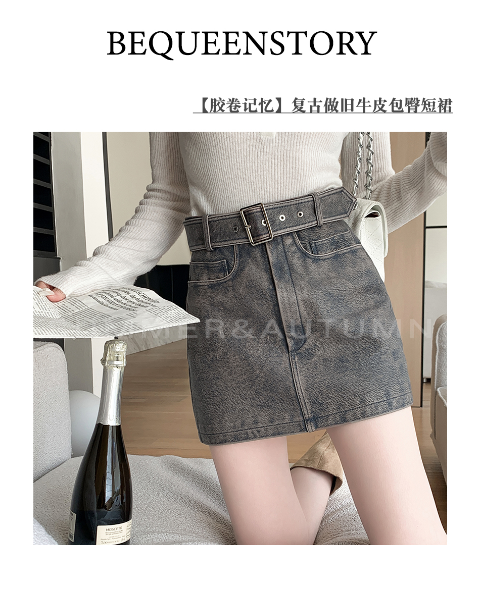 BeQueenStory【胶卷记忆】复古做旧牛皮酷辣包臀裙时尚修身百搭短裙