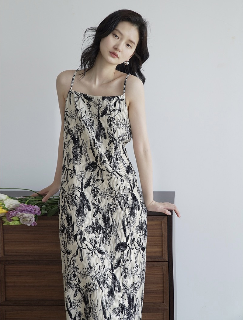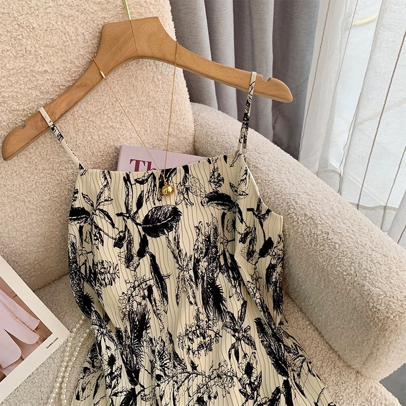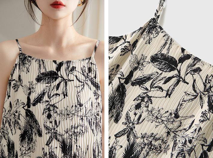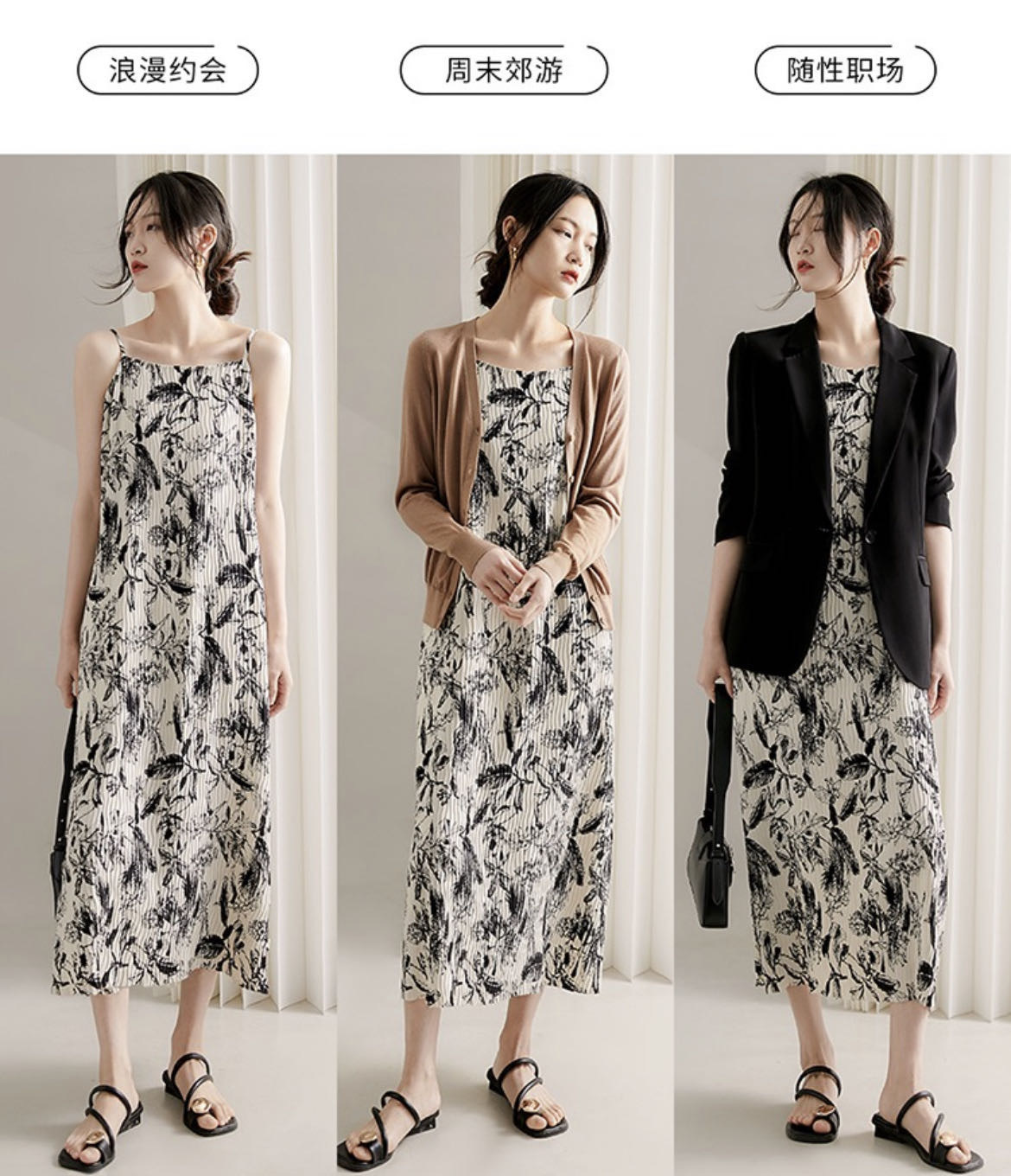 水墨纹吊带连衣裙,大牌质感,进口面料纯手工压褶,奢华舒适感!