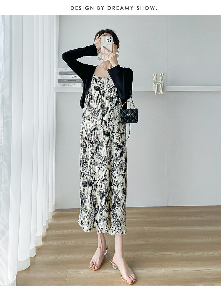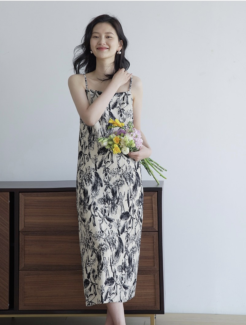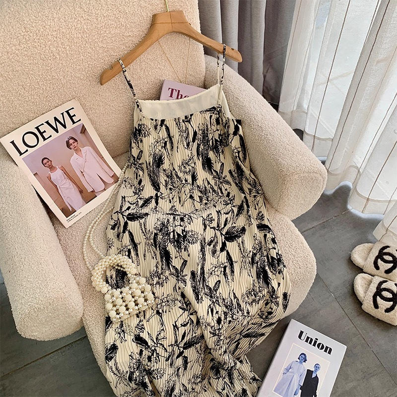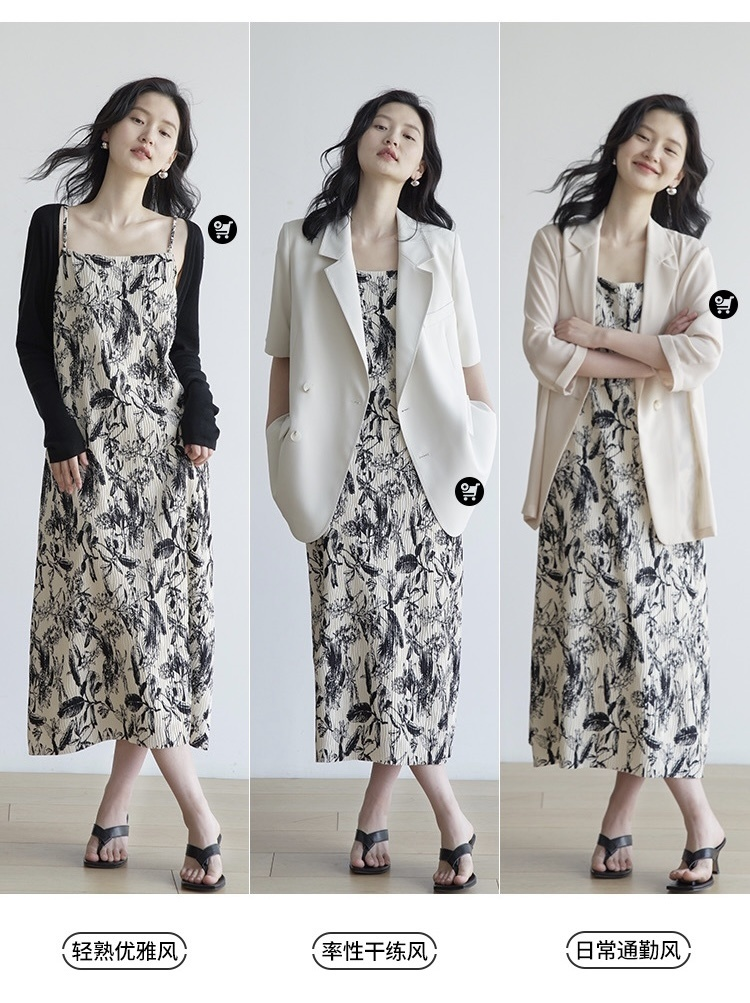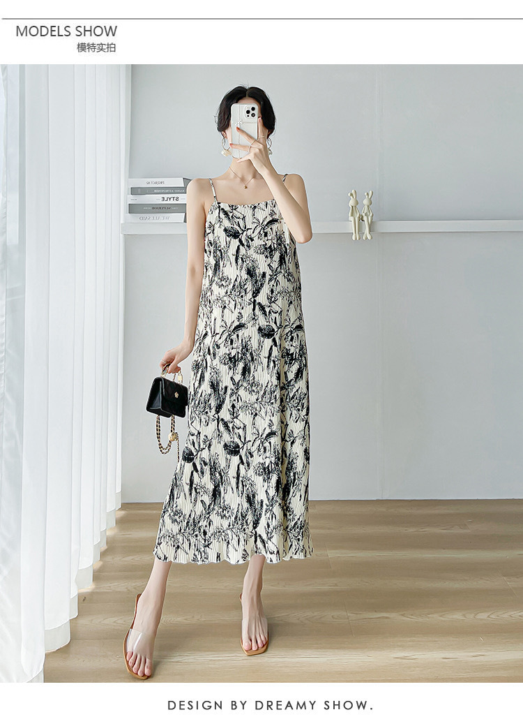 水墨纹吊带连衣裙,大牌质感,进口面料纯手工压褶,奢华舒适感!