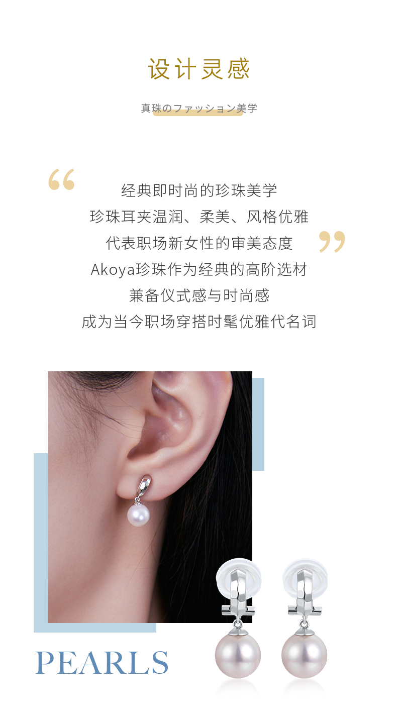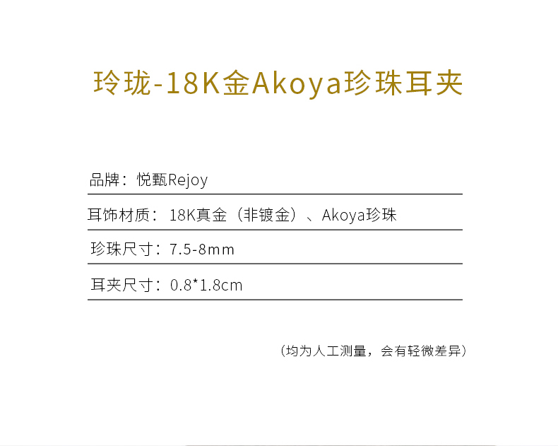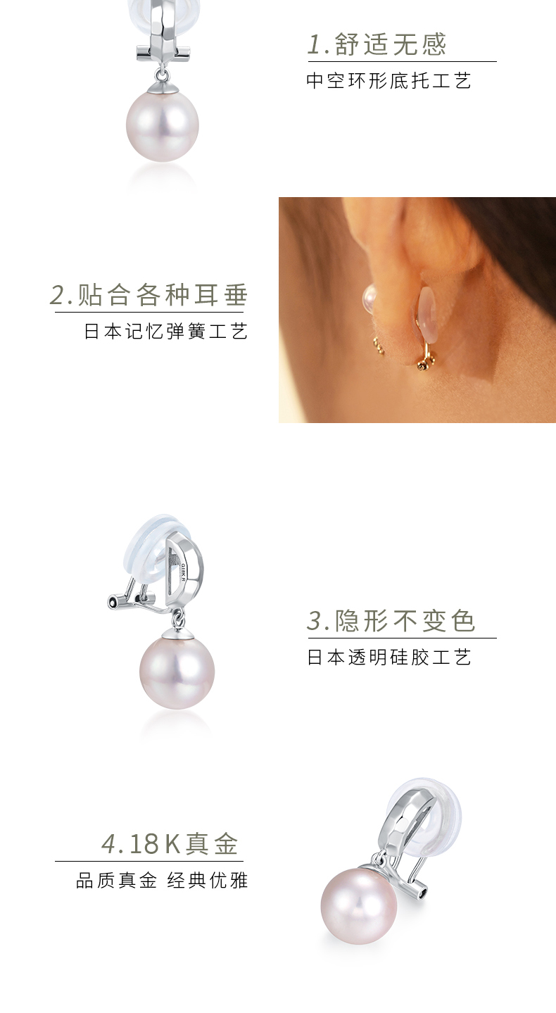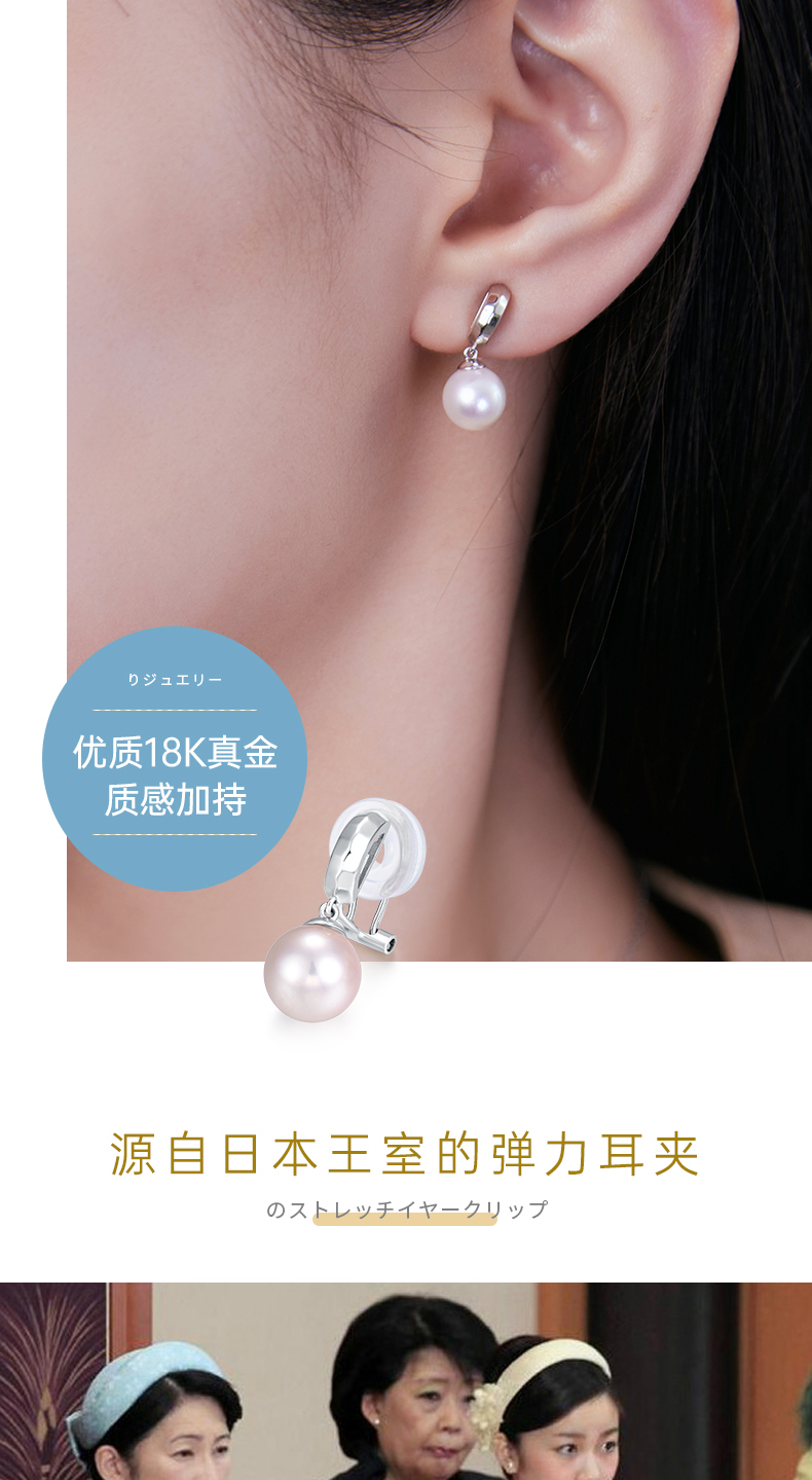 【天猫同款】悦甄 18k金k白Akoya珍珠耳夹 玲珑