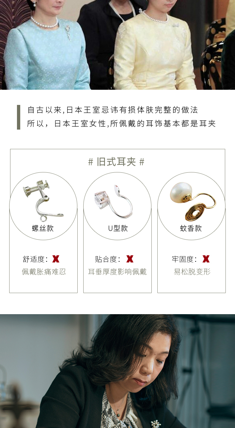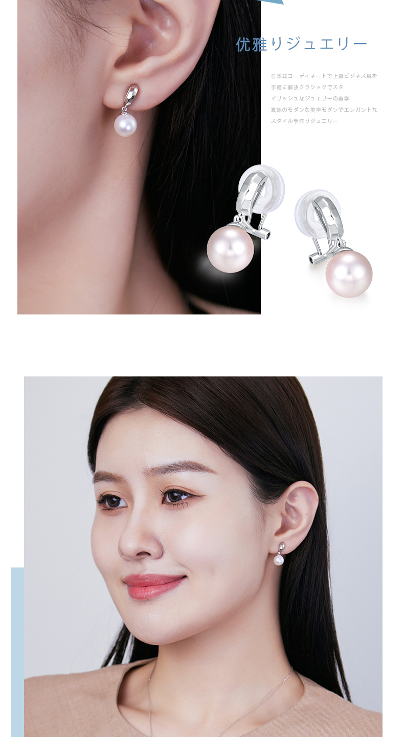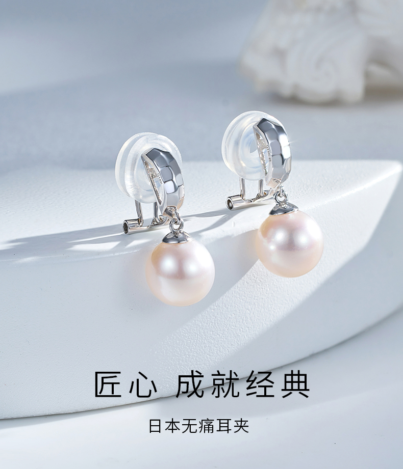 【天猫同款】悦甄 18k金k白Akoya珍珠耳夹 玲珑