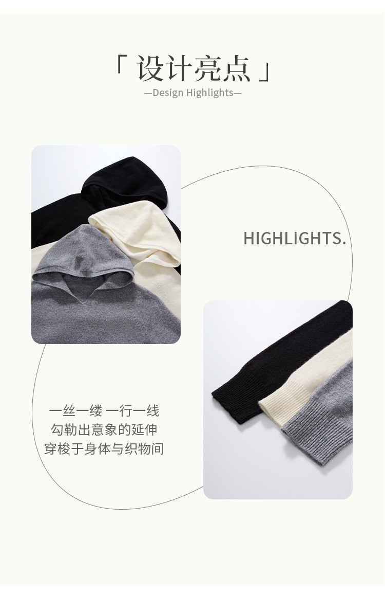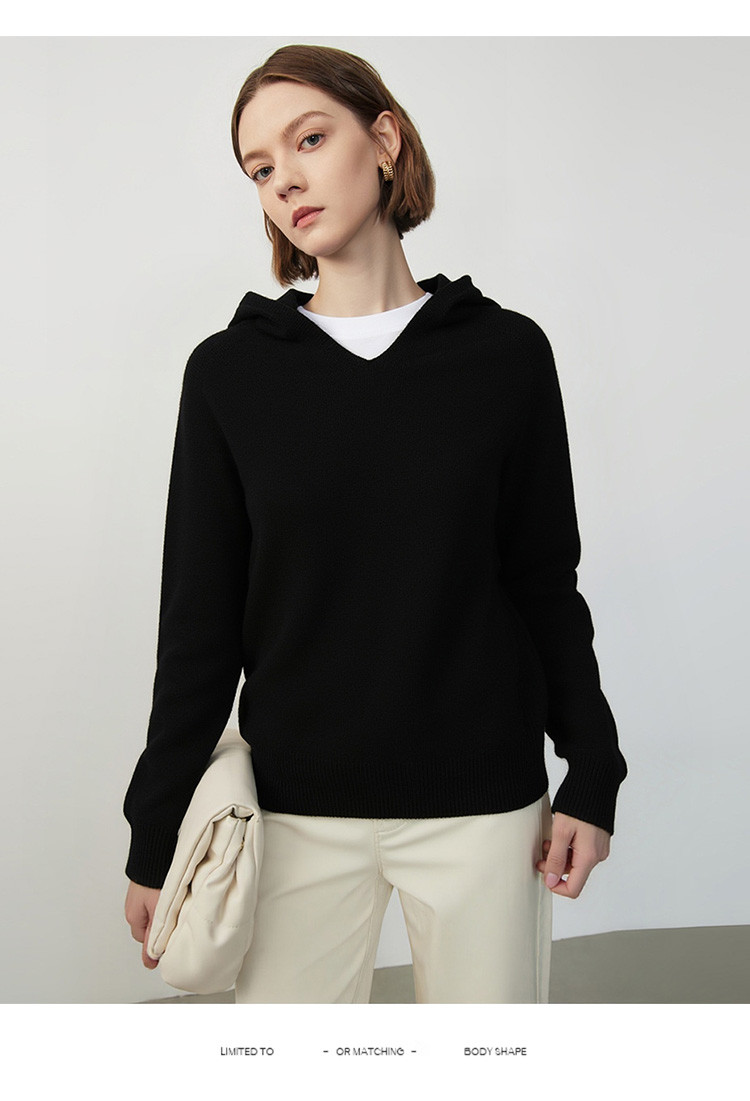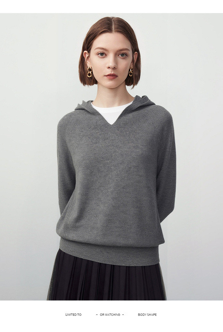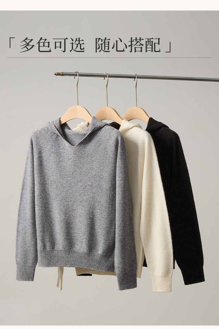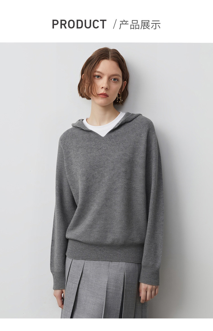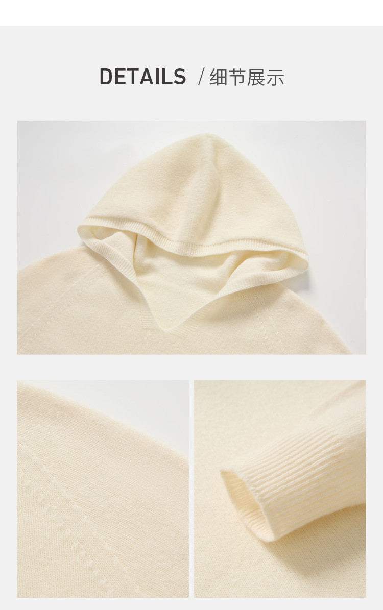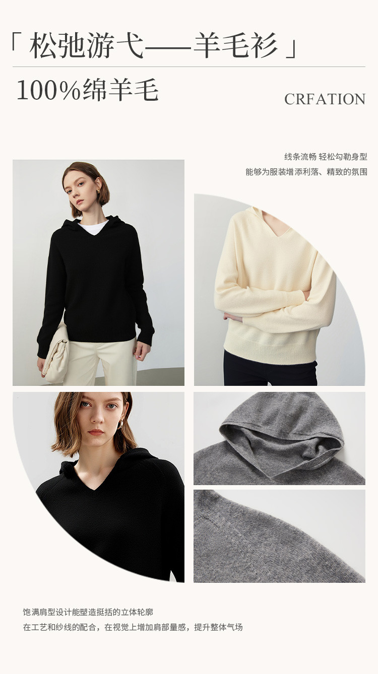 100%绵羊毛连帽无缝羊毛衫宽松慵懒风高级感罗蒙
