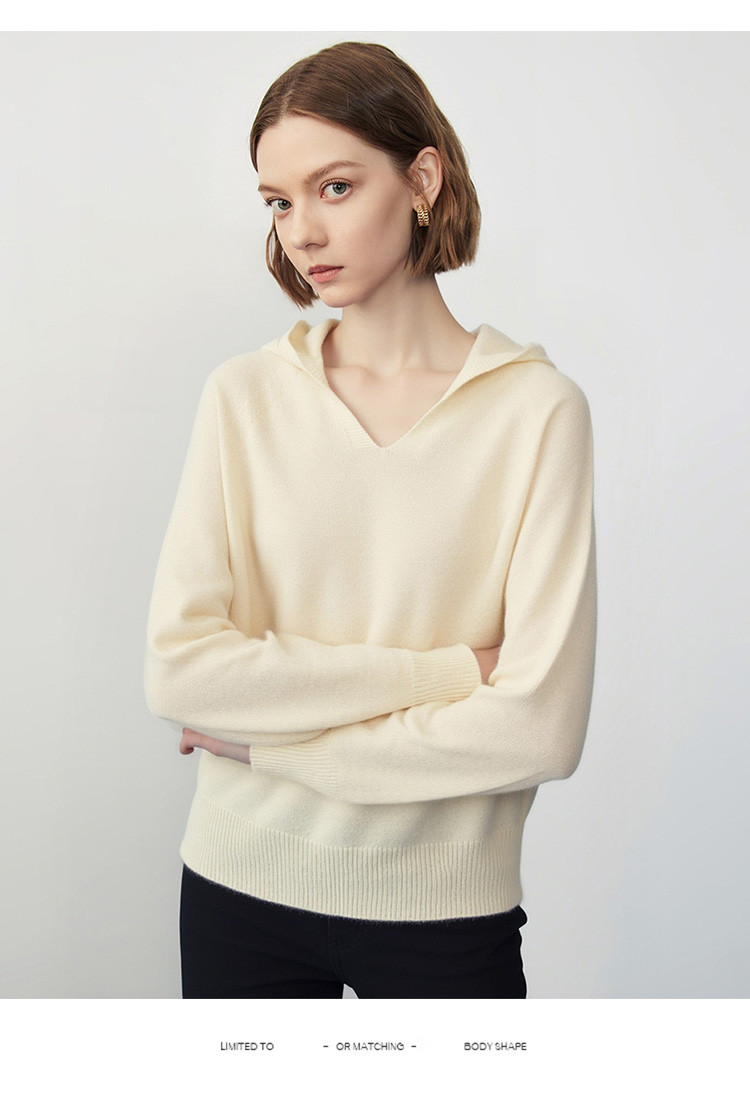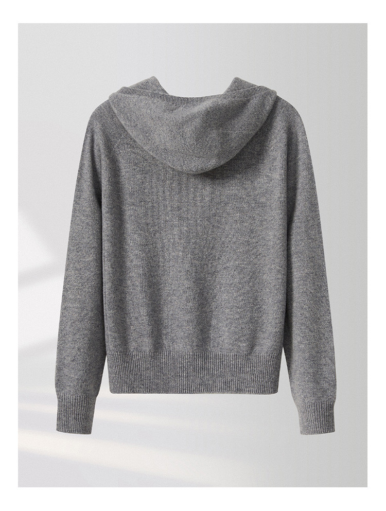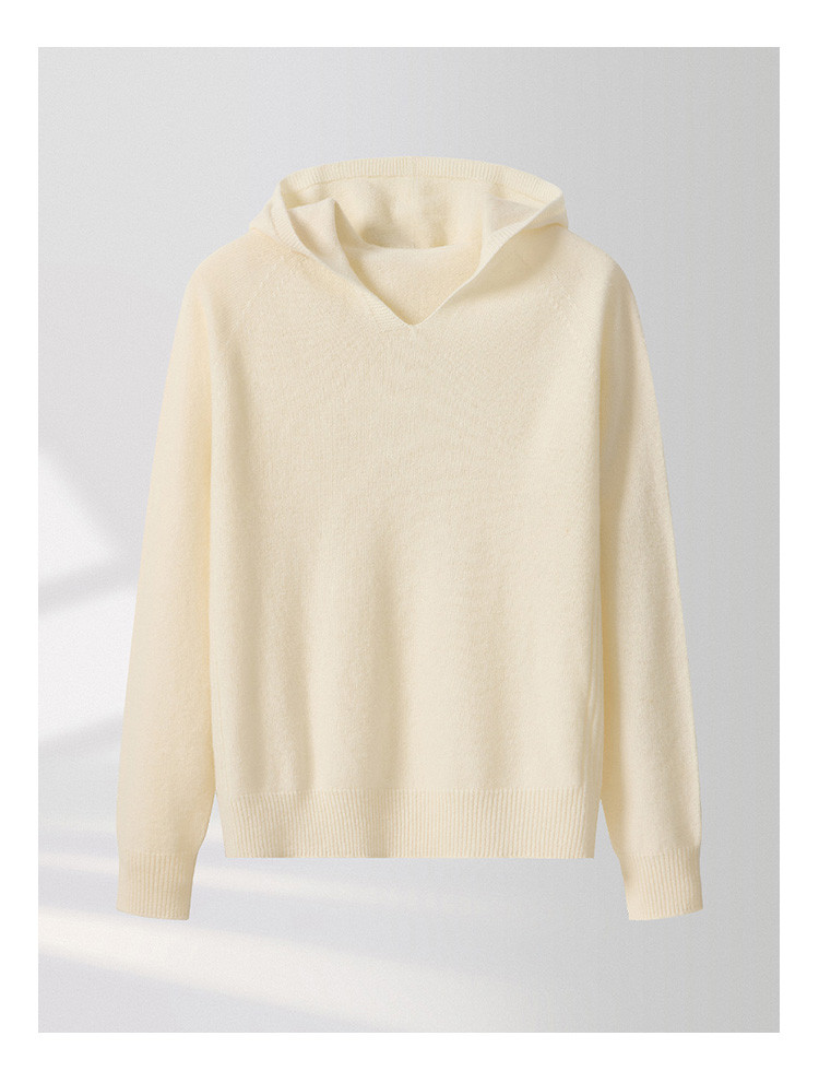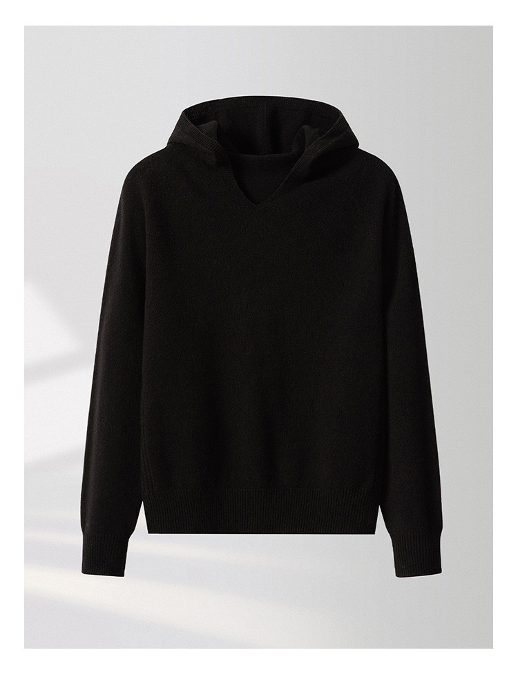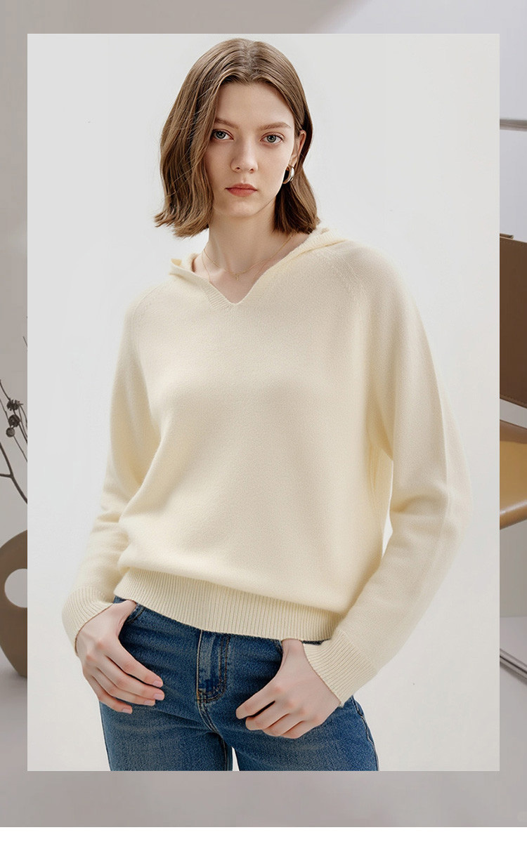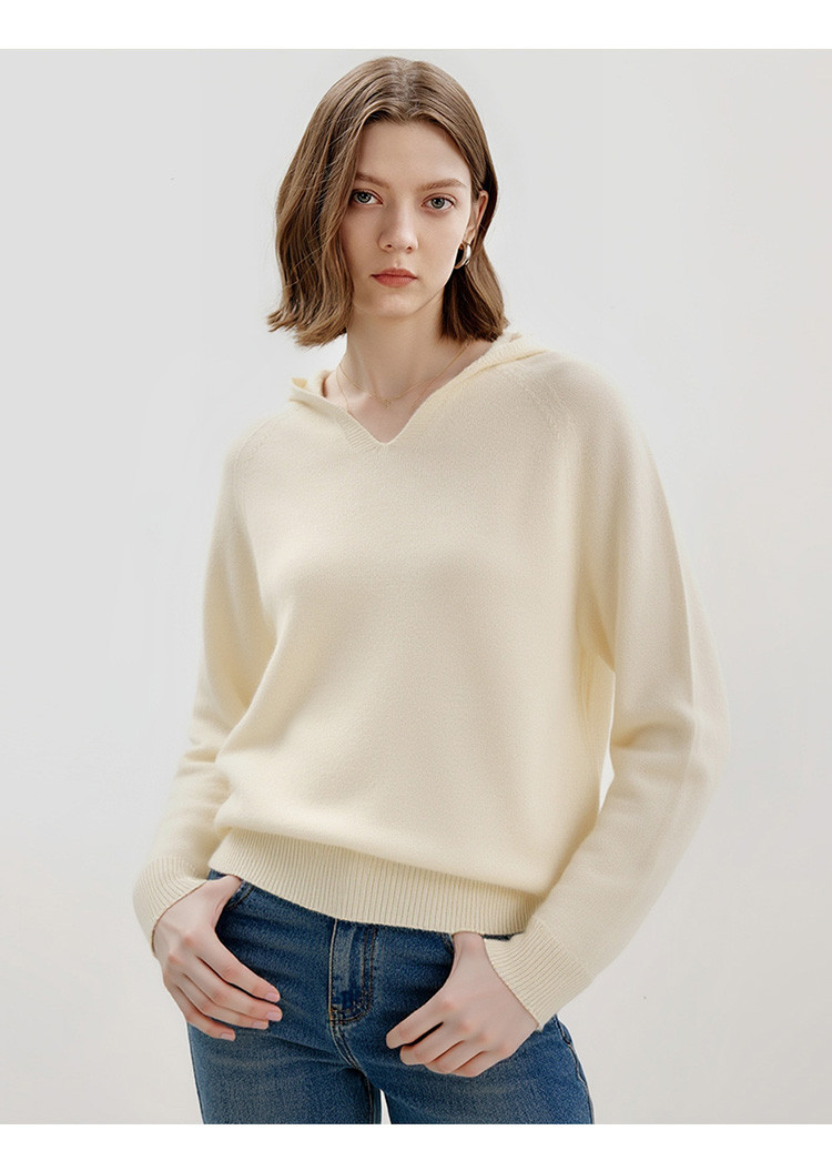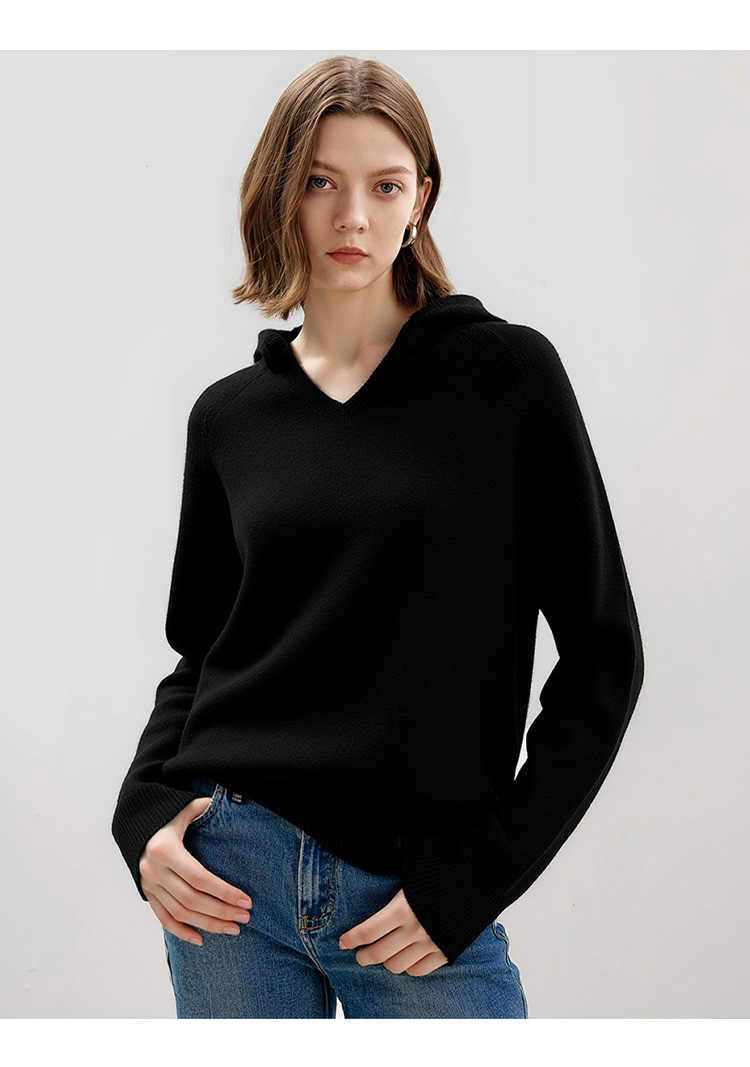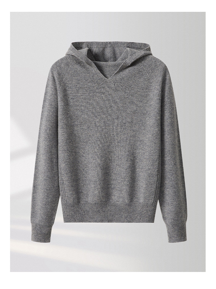 100%绵羊毛连帽无缝羊毛衫宽松慵懒风高级感罗蒙