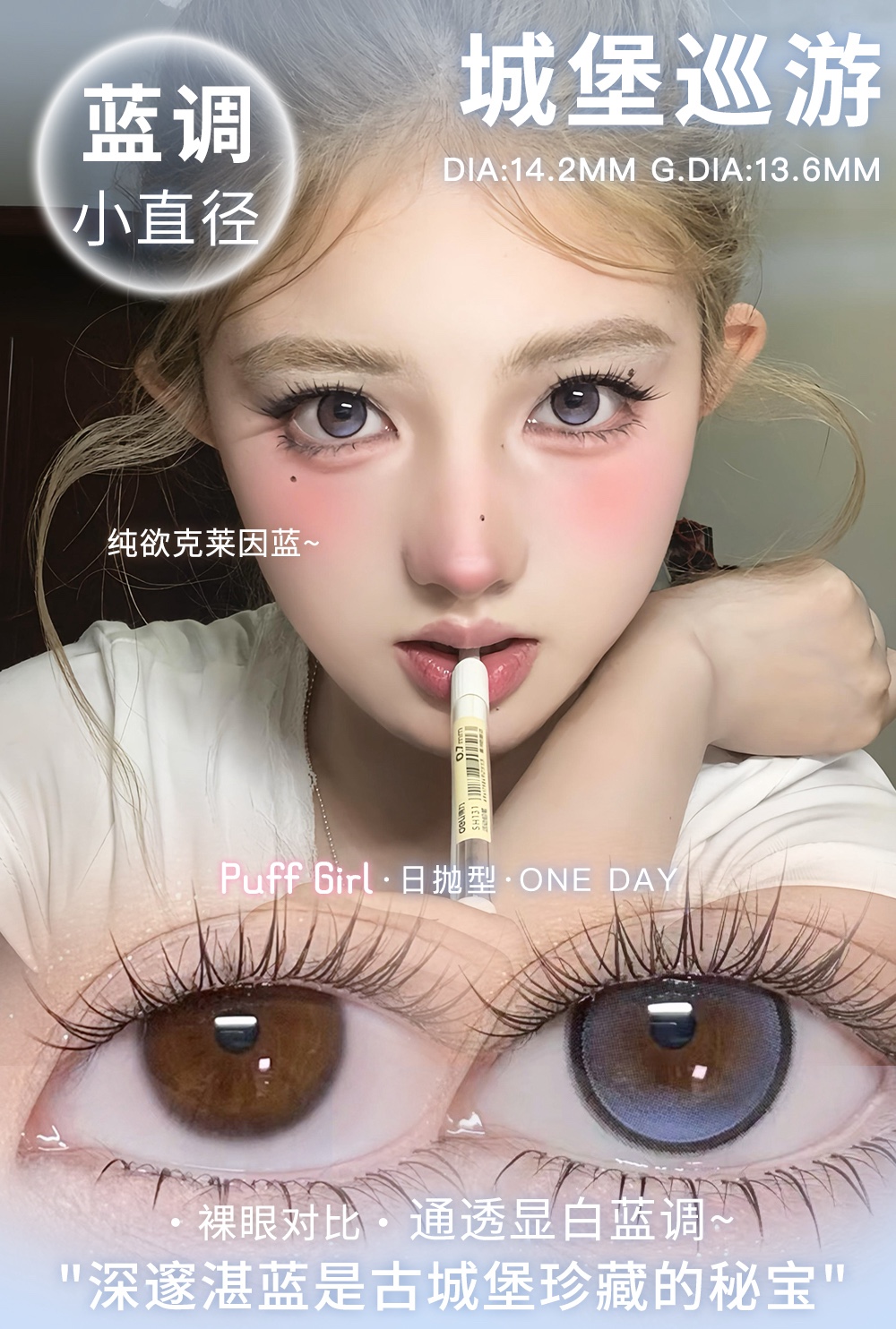 puff girl日抛 城堡巡游 蓝/公主日记 粉 14.2mm 日抛无售后!