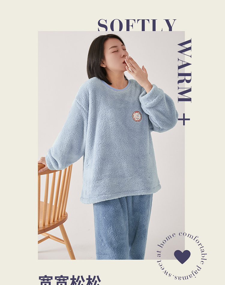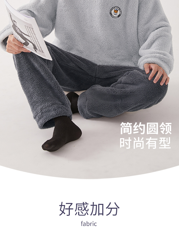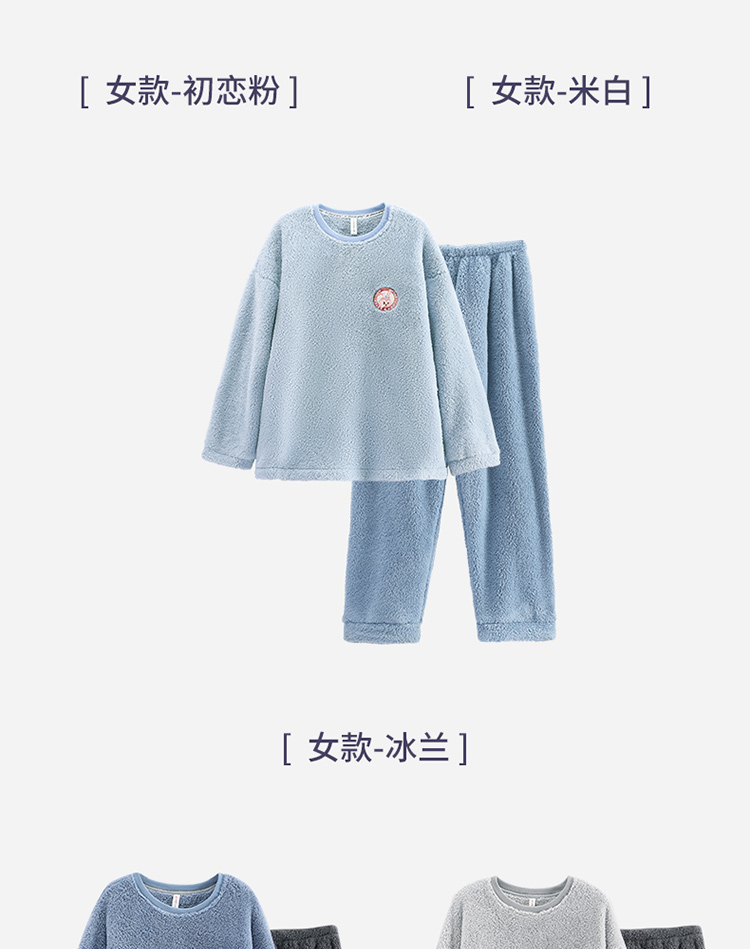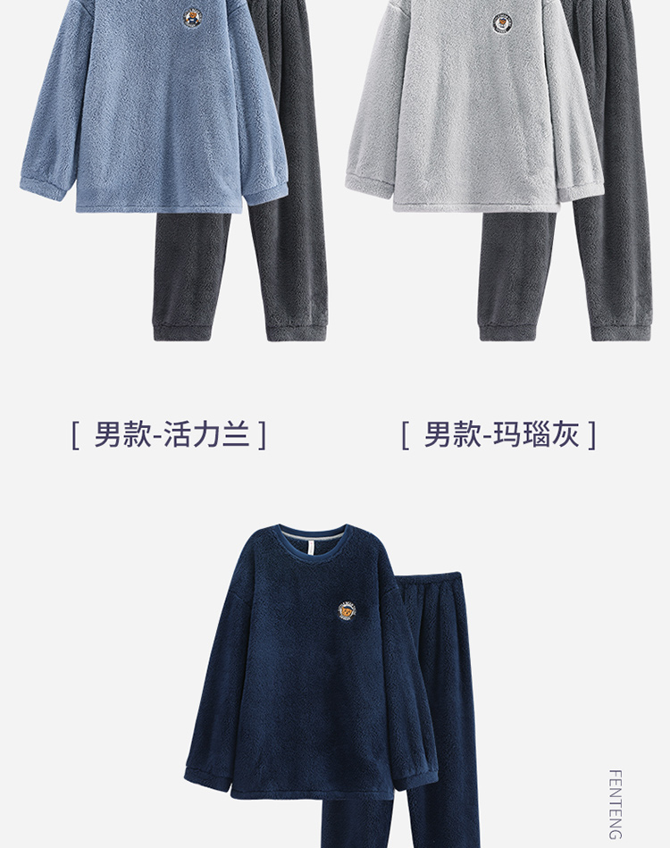 【品牌优选】芬腾秋冬季情侣睡衣女套头珊瑚绒加厚加绒保暖男法兰绒家居服套