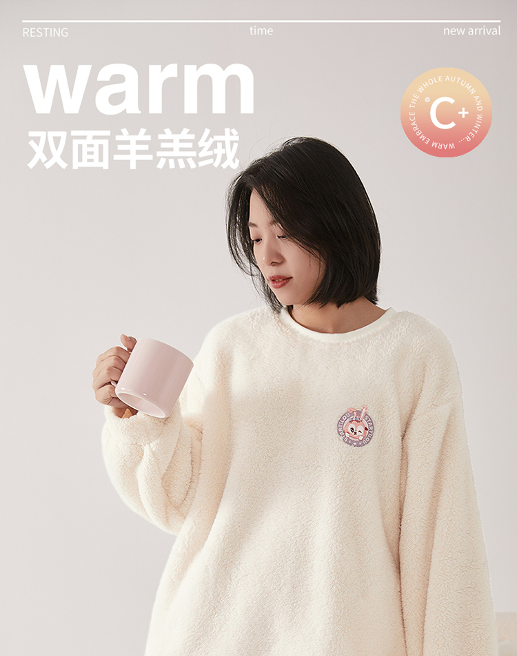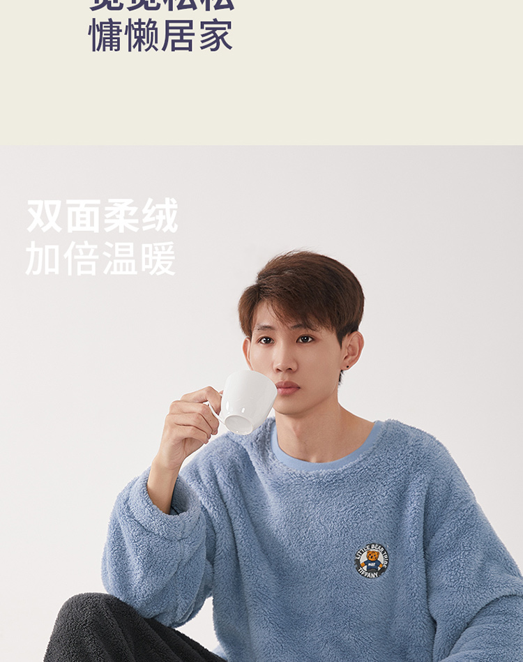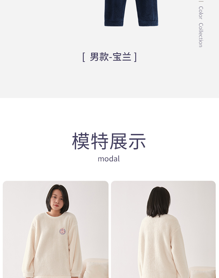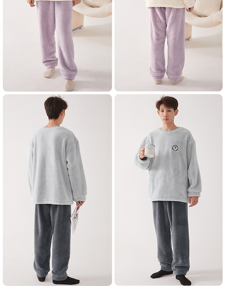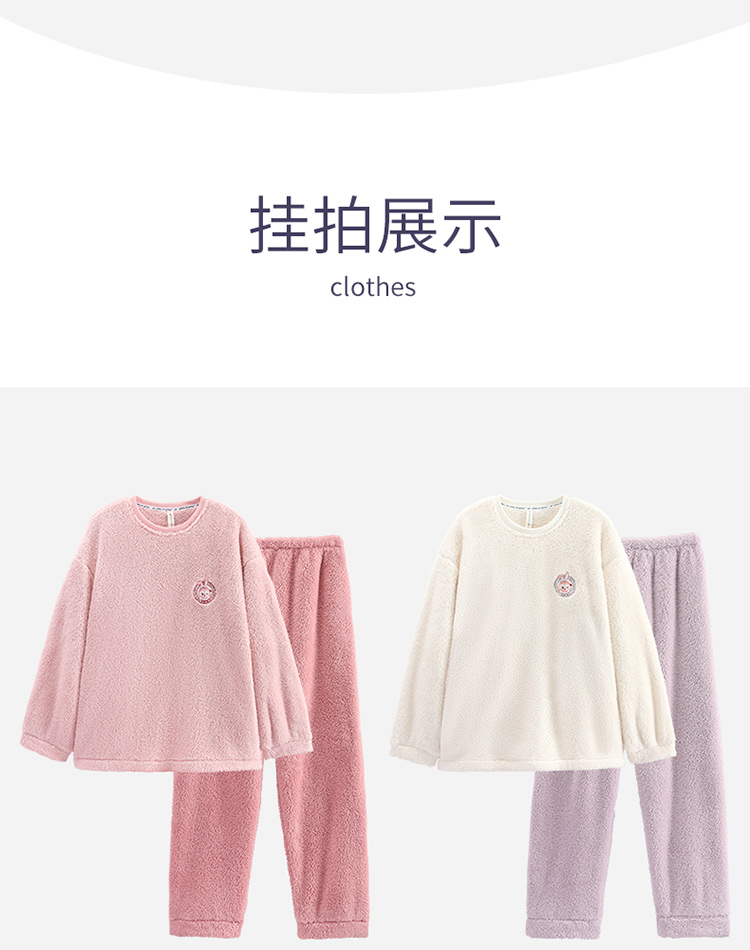 【品牌优选】芬腾秋冬季情侣睡衣女套头珊瑚绒加厚加绒保暖男法兰绒家居服套