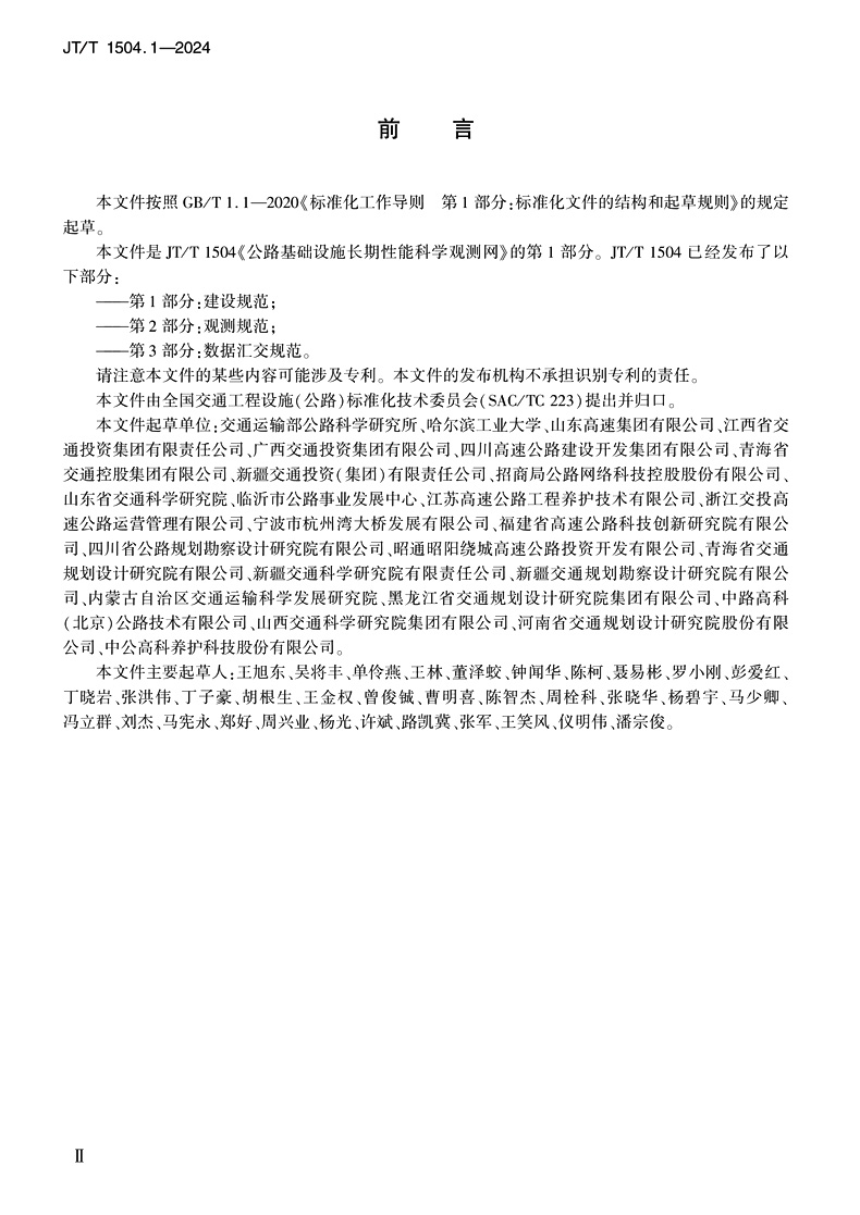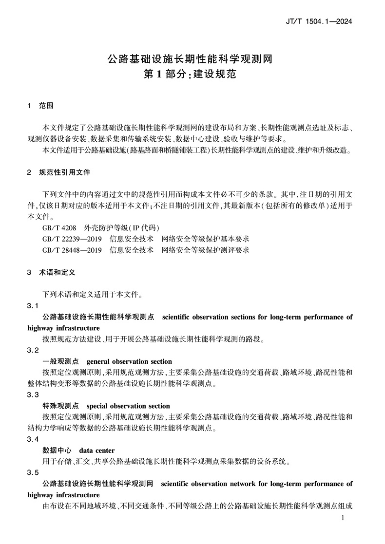 书名:公路基础设施长期性能科学观测网 第1部分:建设规范(JT/T 1504.1—2024)