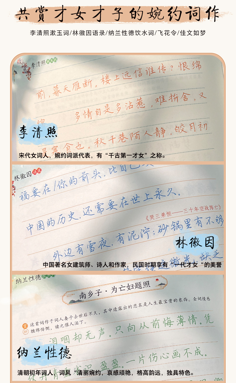 墨点字帖 名品文学 行楷字帖学生楷书字帖成人硬笔唯美古风纳兰林徽因飞花令李清照