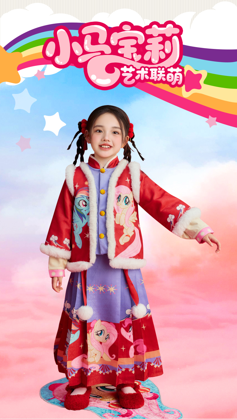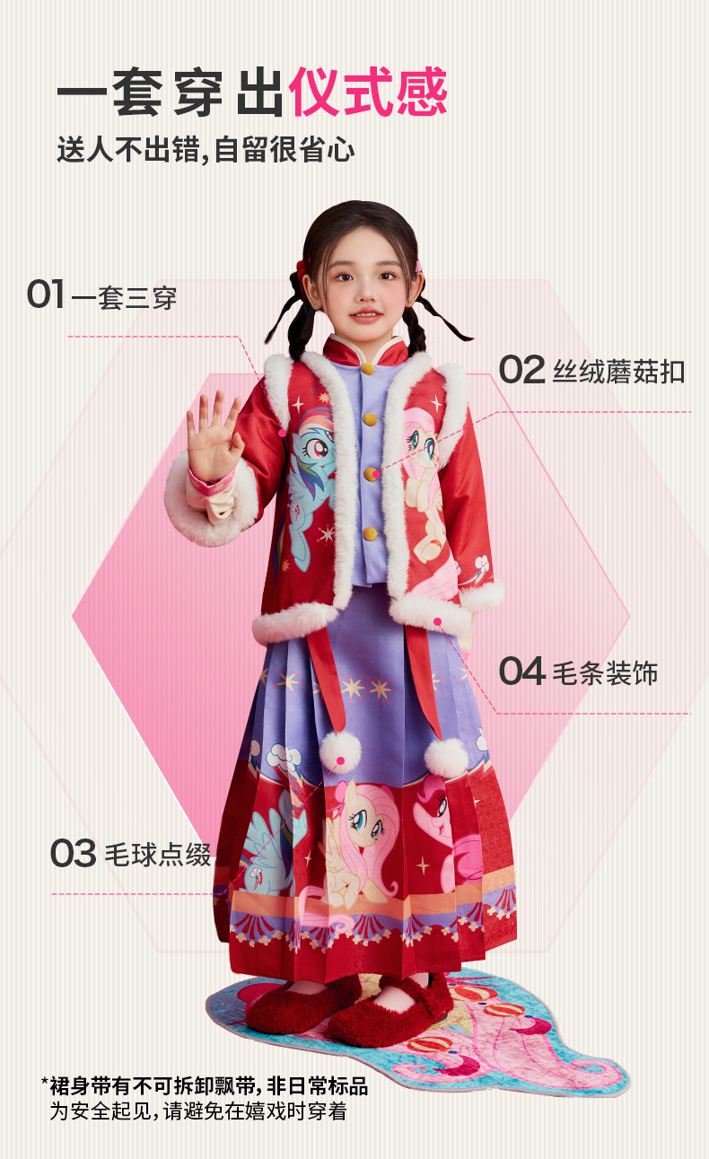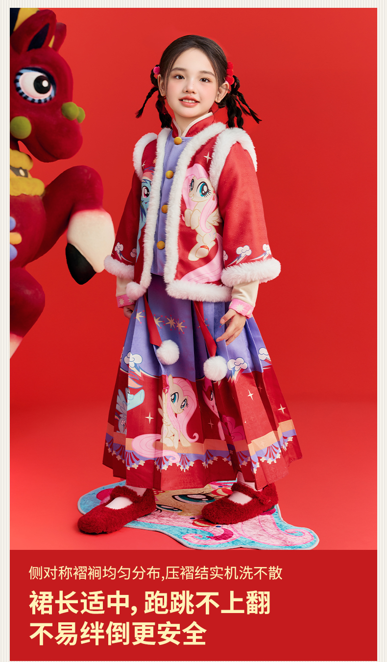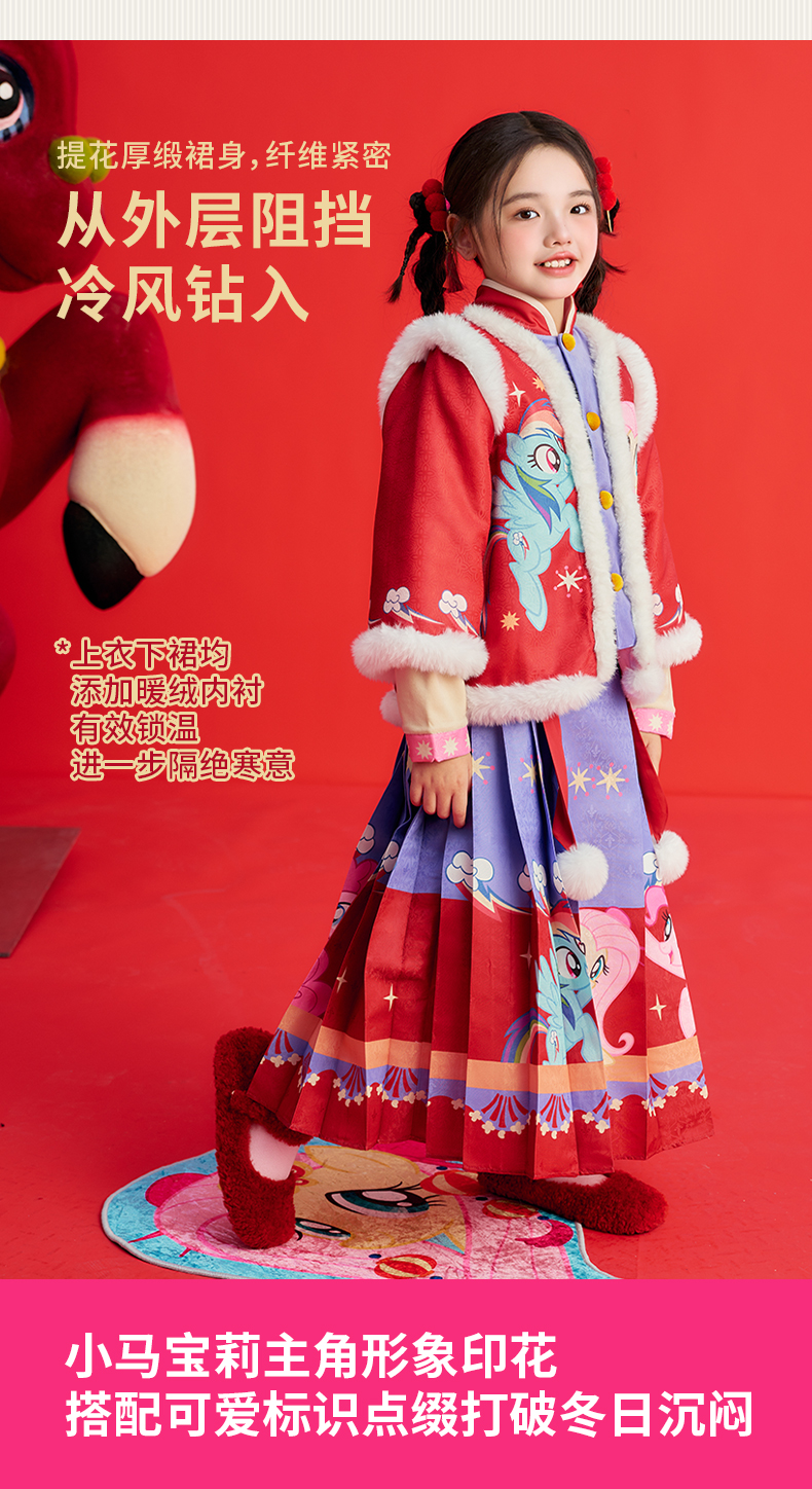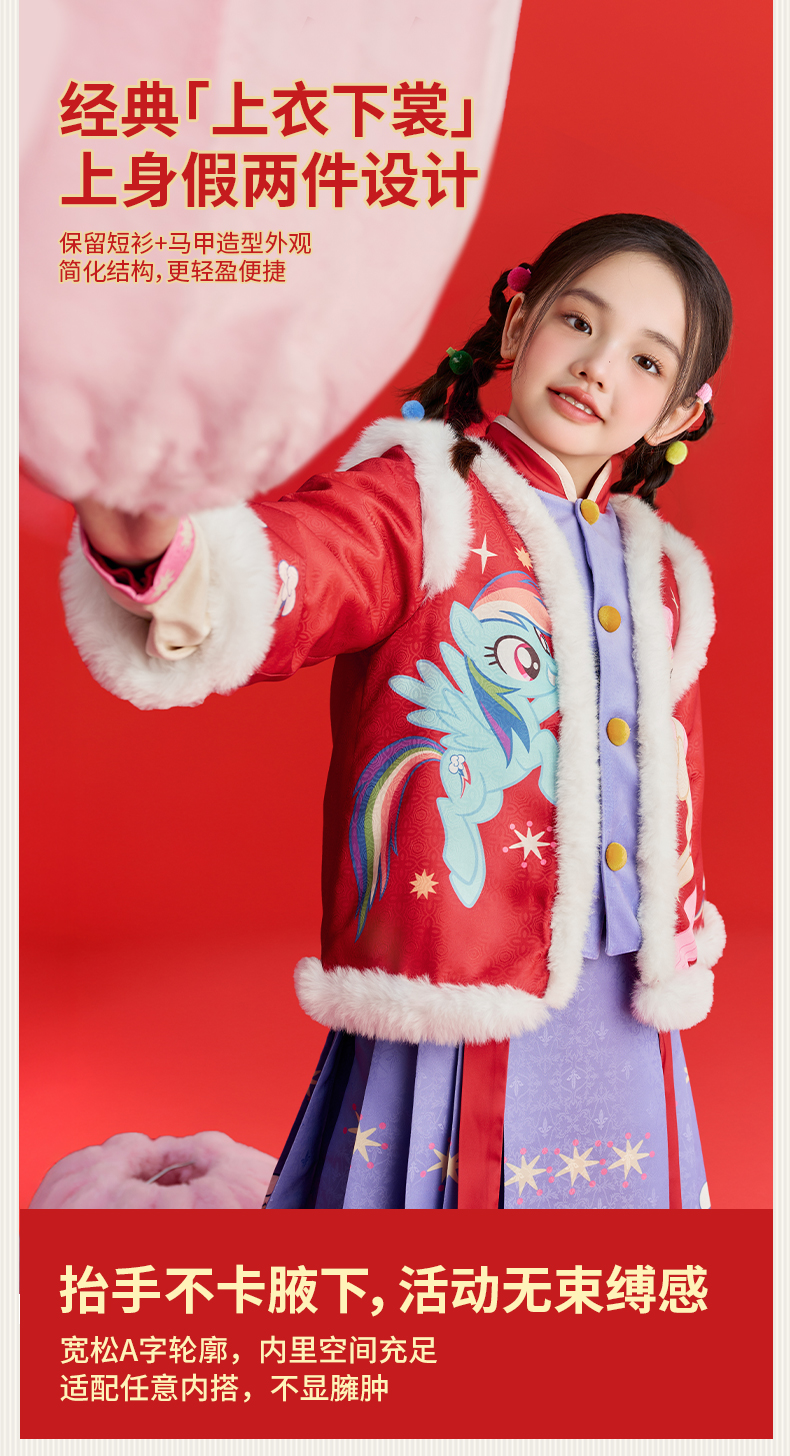 【年衣品牌团】小马宝莉联名年衣童装套装女童冬季马面裙小马宝莉新年中式套装 1207