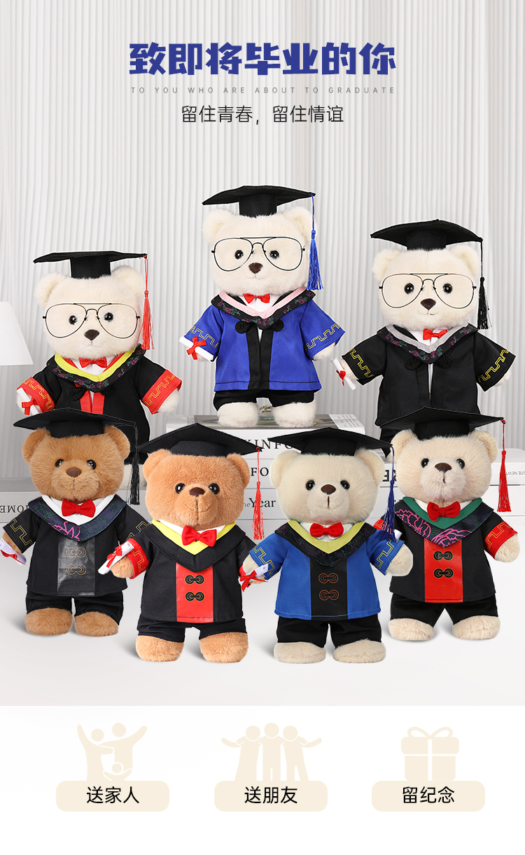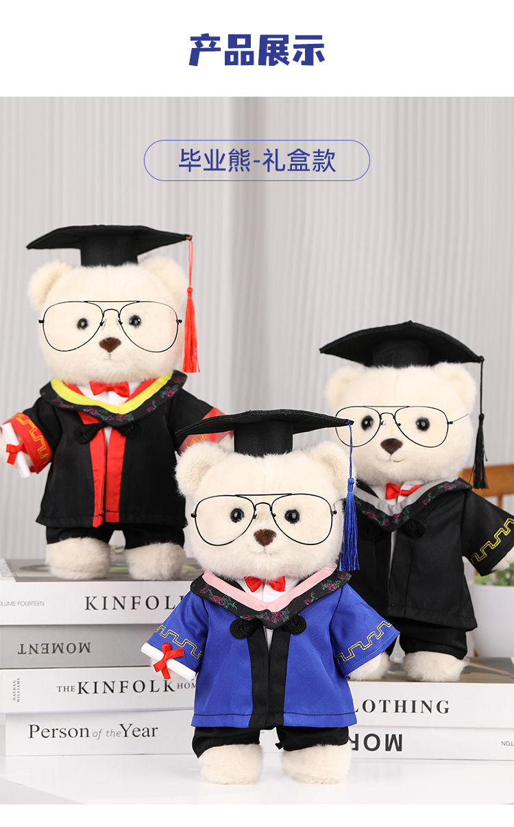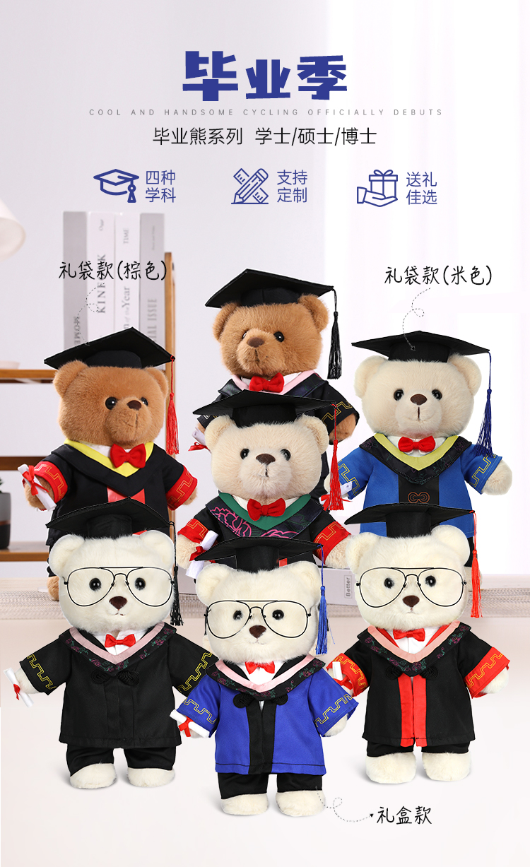 【毕业熊】可定制创意毛绒公仔玩具 礼盒装小熊玩偶送礼摆件