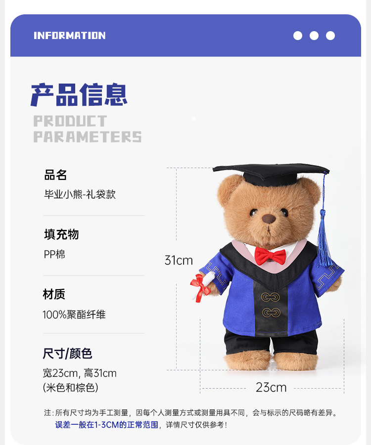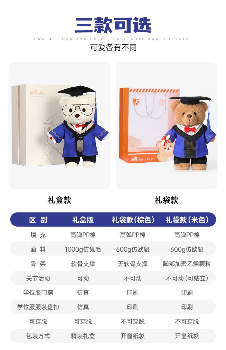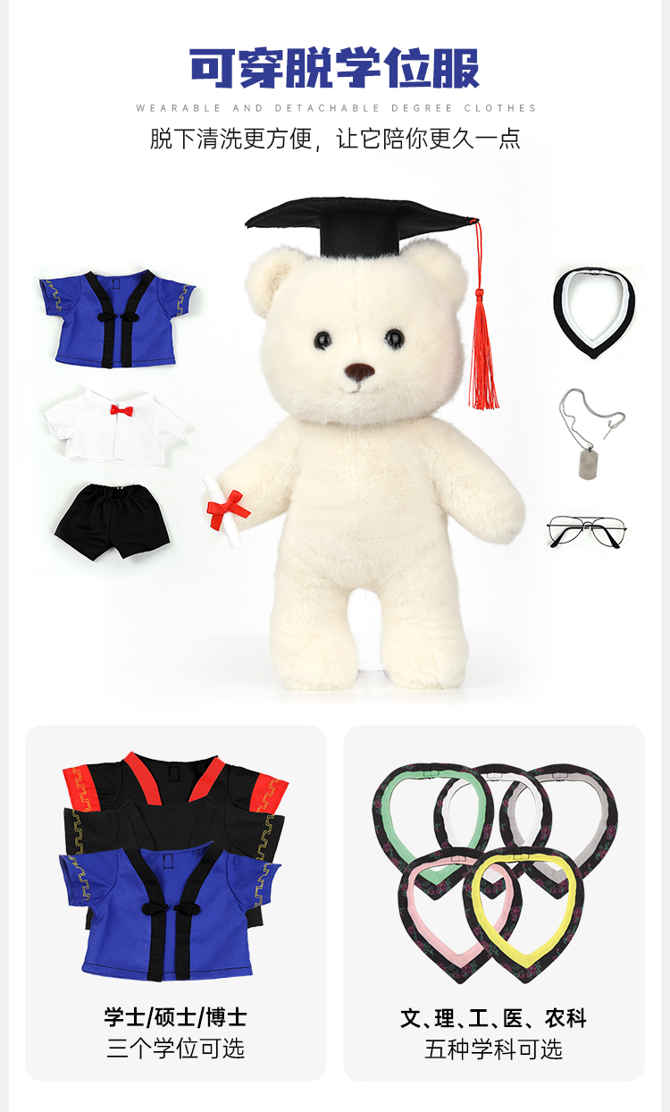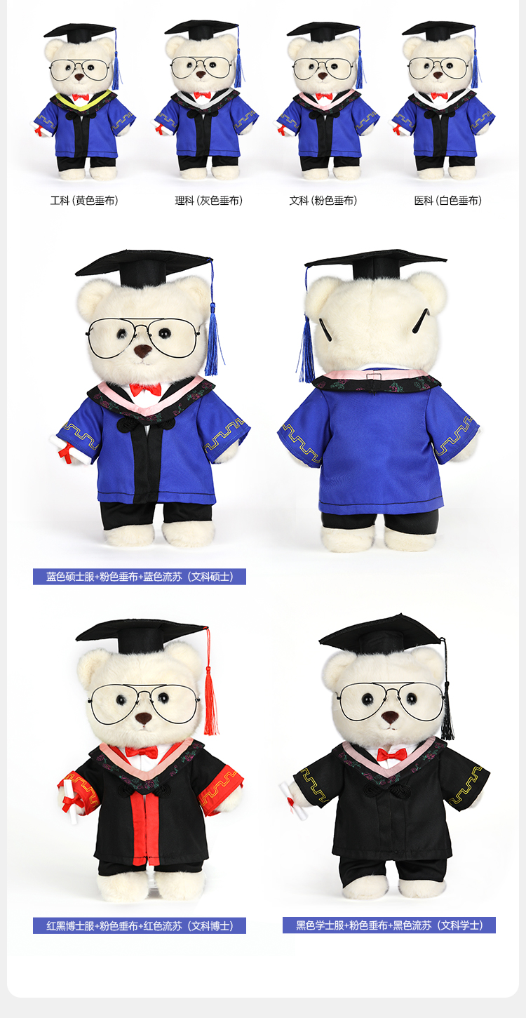 【毕业熊】可定制创意毛绒公仔玩具 礼盒装小熊玩偶送礼摆件