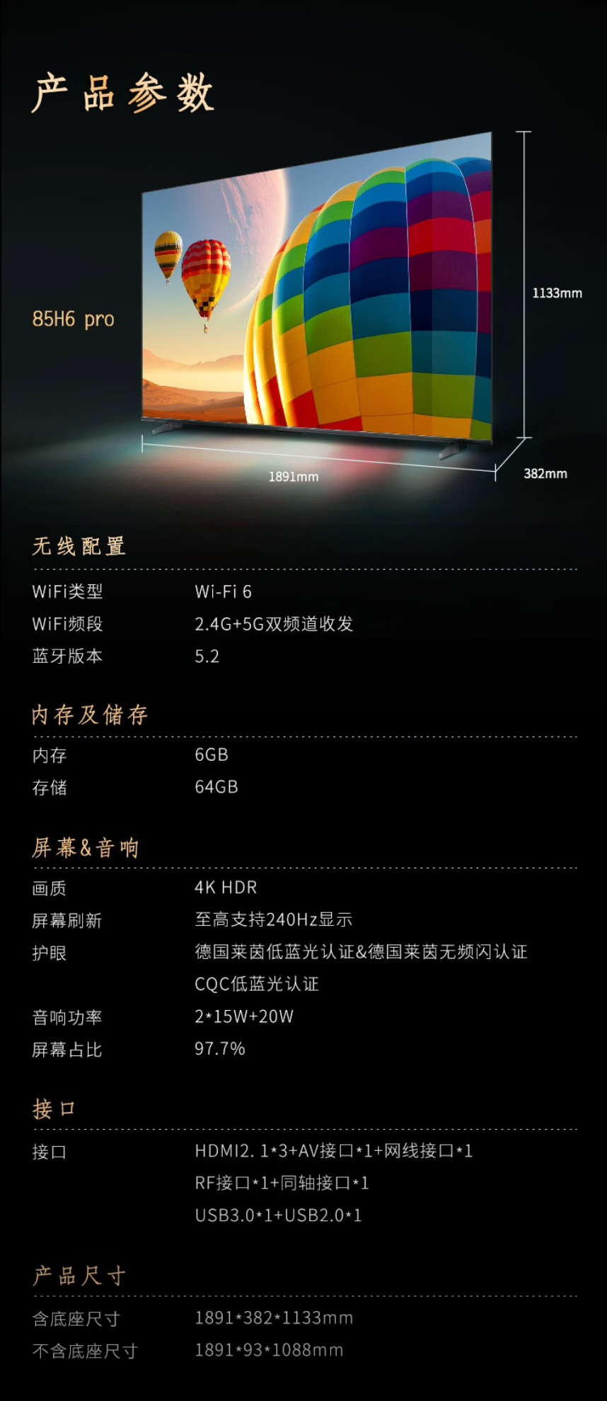海尔(Haier)电视 85H6 Pro