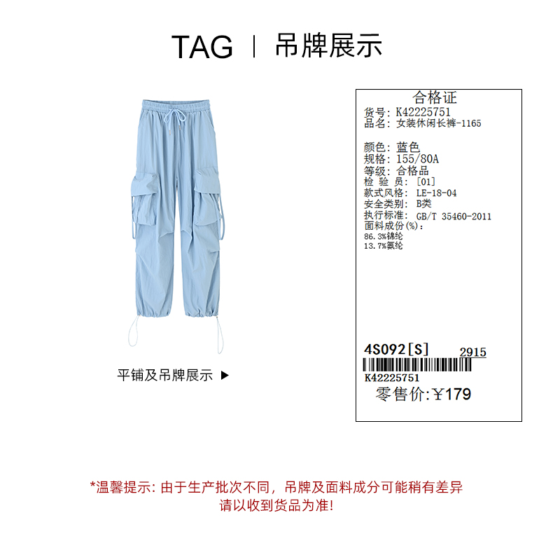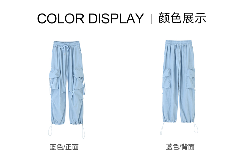 美式侧边口袋抽绳宽松工装裤-1165K4222575