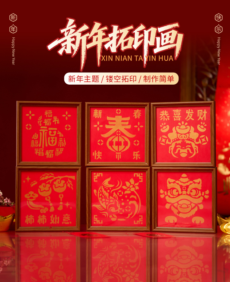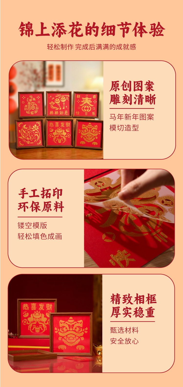 马年春节元旦活动新年拓印画手工diy儿童制作材料团建印刷相框画