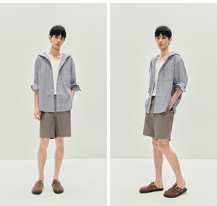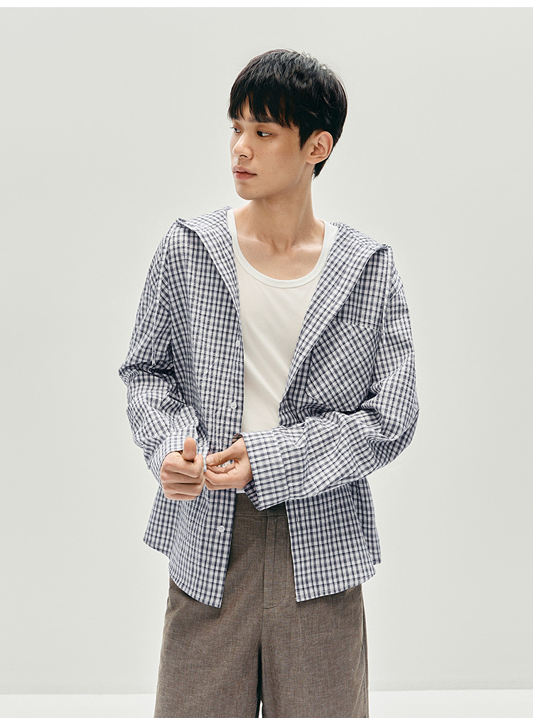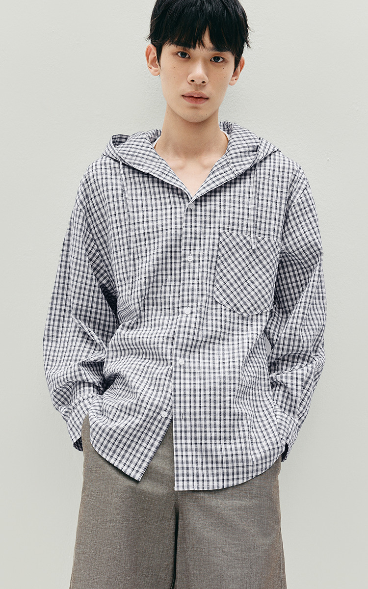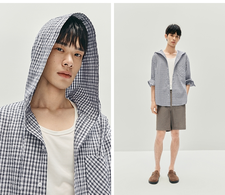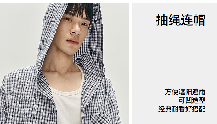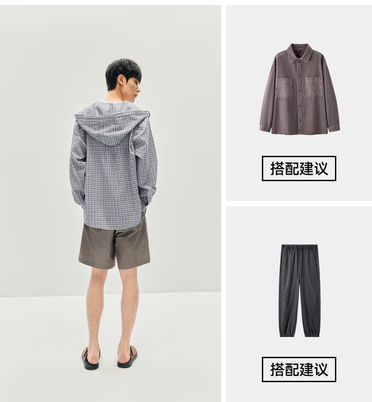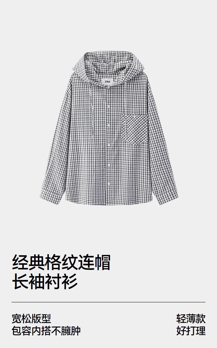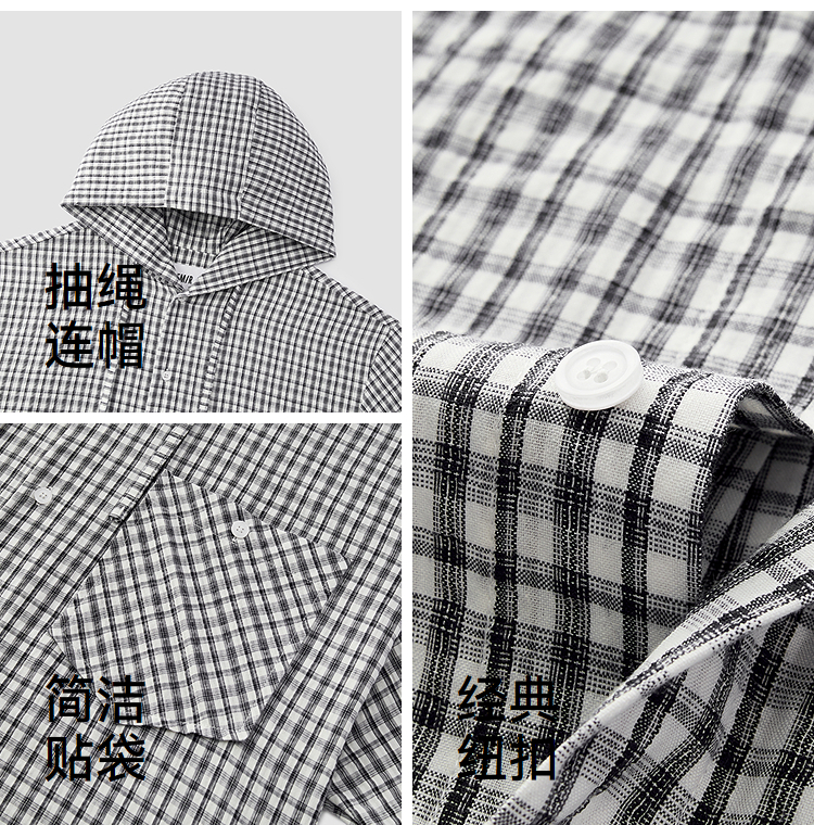 森马长袖衬衫男格纹外套轻薄款2025秋季新款连帽上衣宽松经典百搭