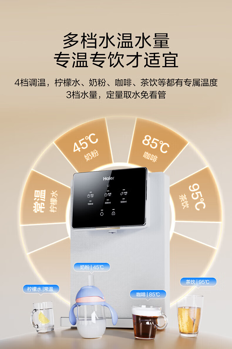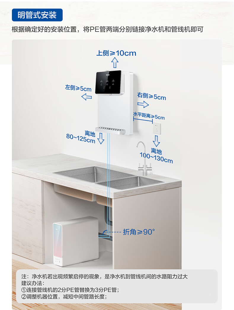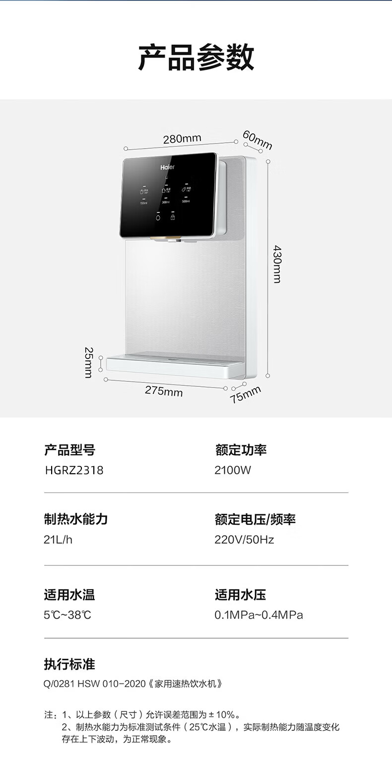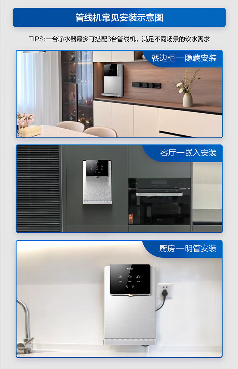 海尔(Haier)管线机 超薄壁挂式饮水机 家用无胆即热式直饮机厚膜速热 4档水温调节净水器净饮机伴侣管线机 新款HGRZ2318【升级不锈钢管路】银灰色