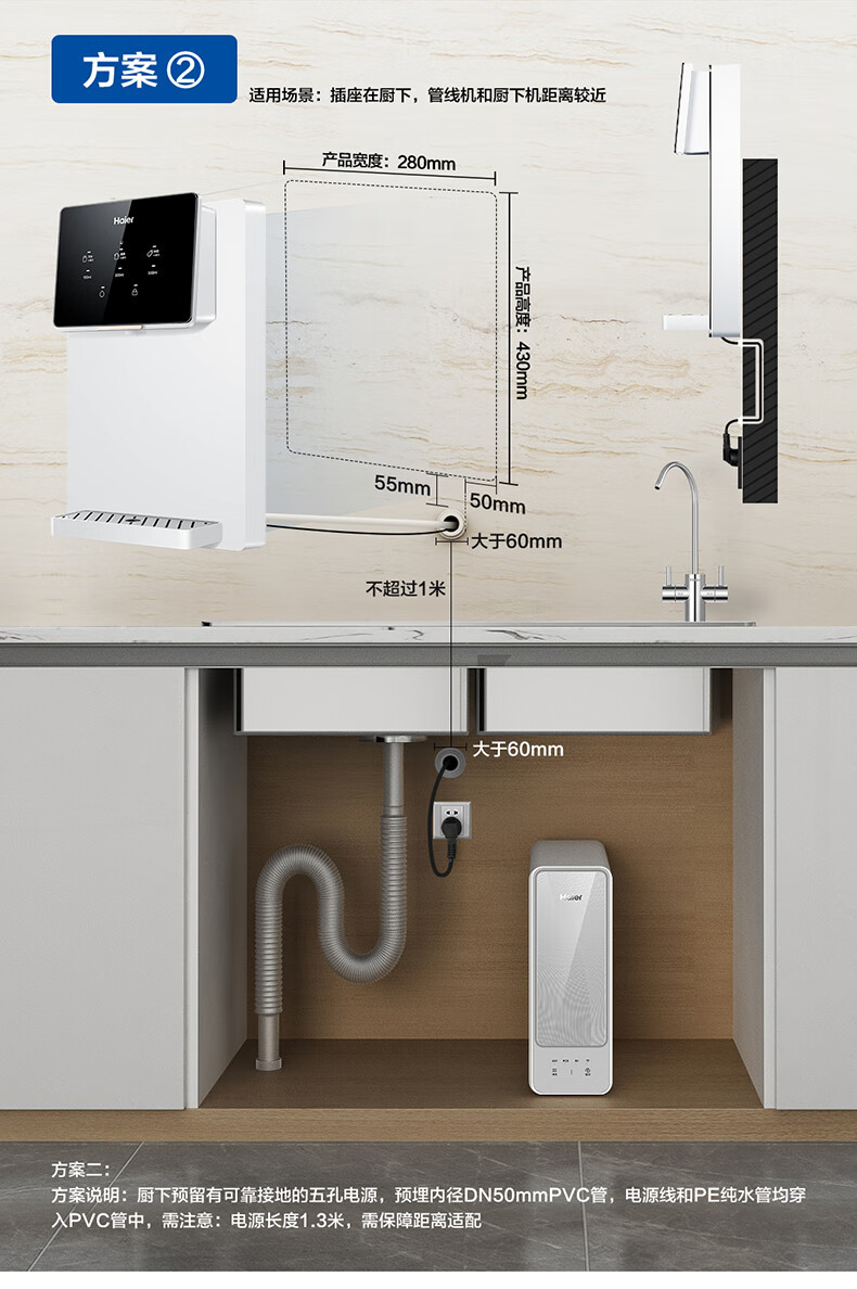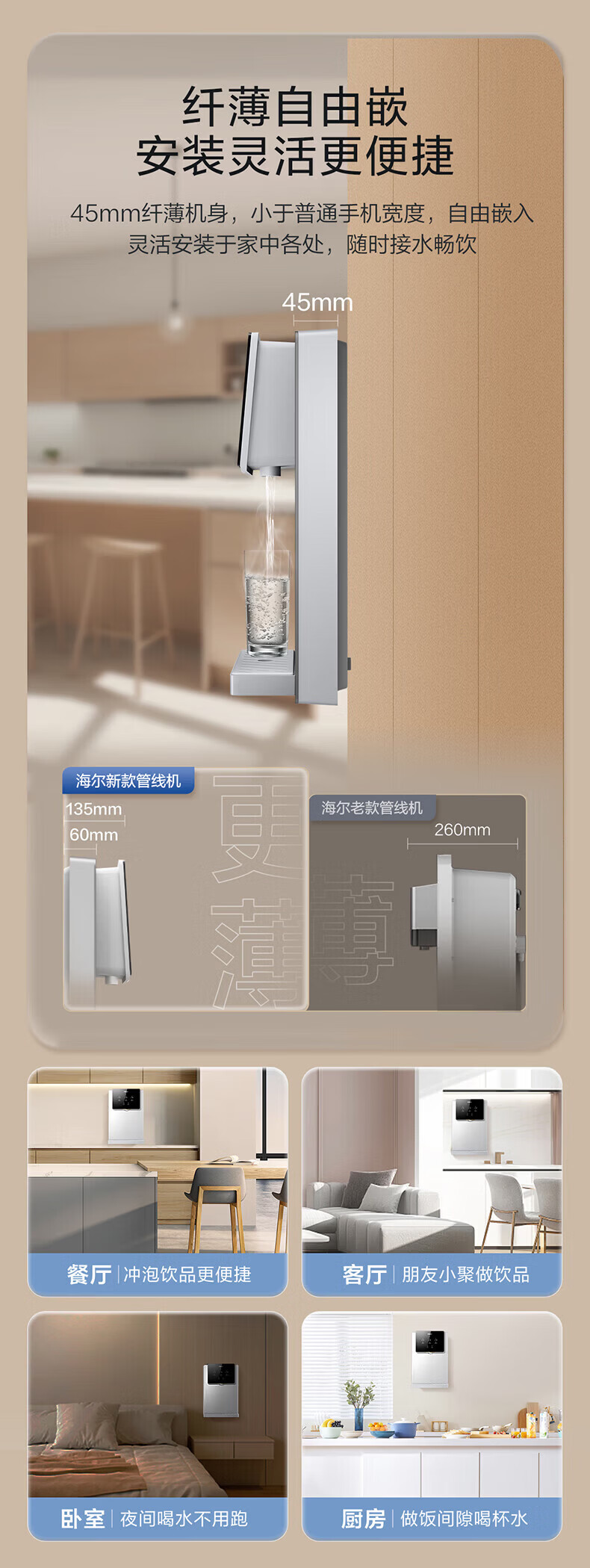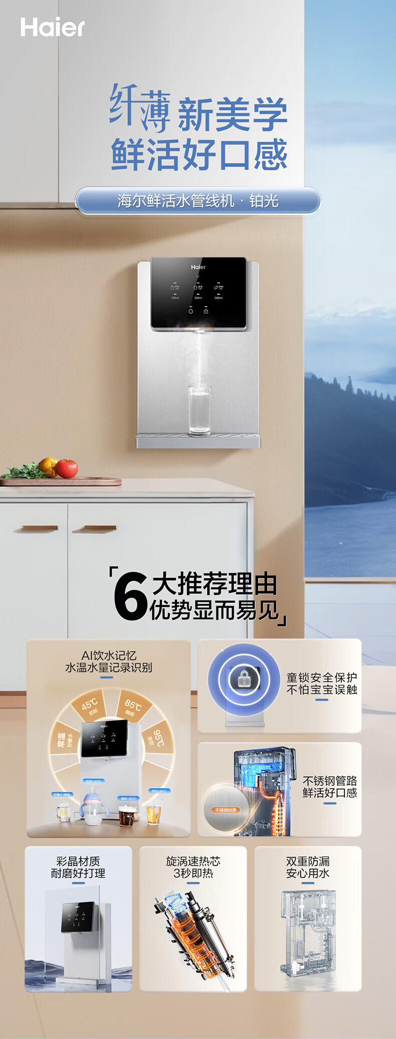 海尔(Haier)管线机 超薄壁挂式饮水机 家用无胆即热式直饮机厚膜速热 4档水温调节净水器净饮机伴侣管线机 新款HGRZ2318【升级不锈钢管路】银灰色