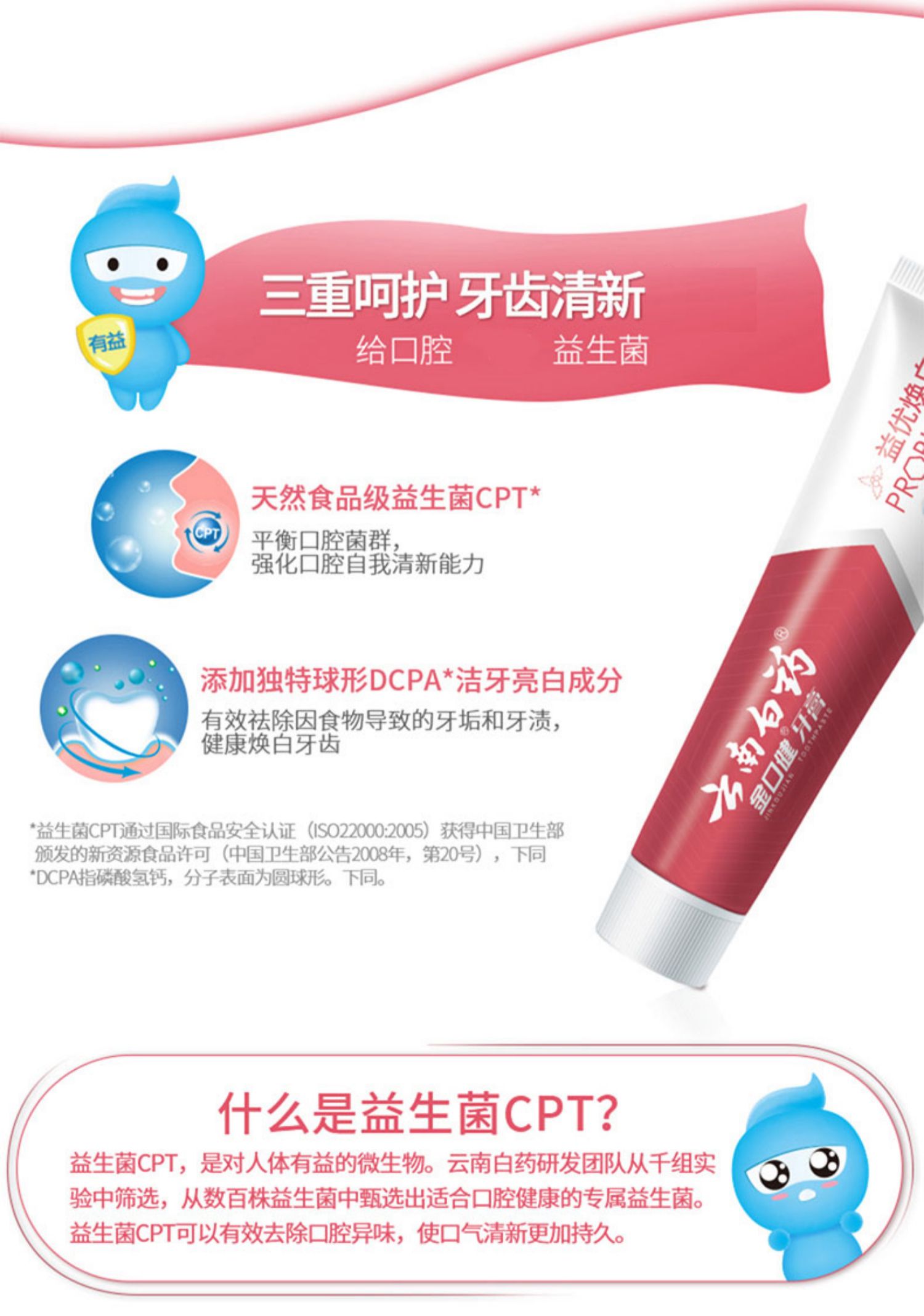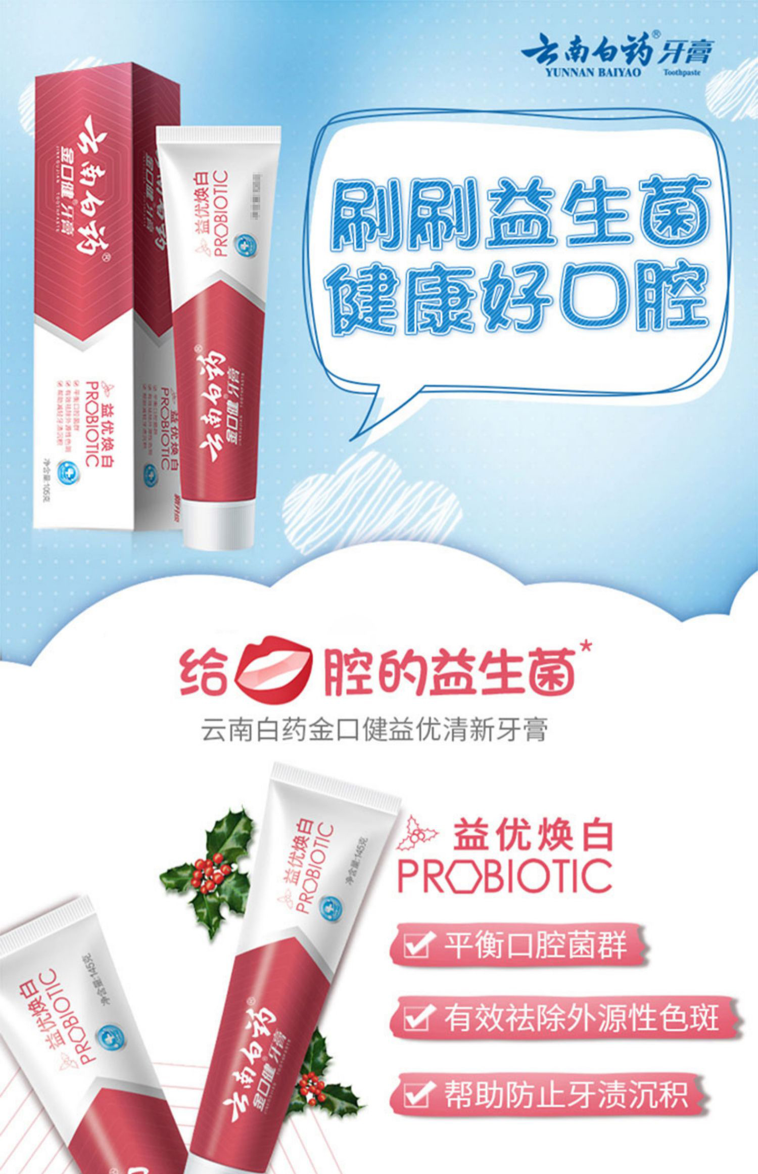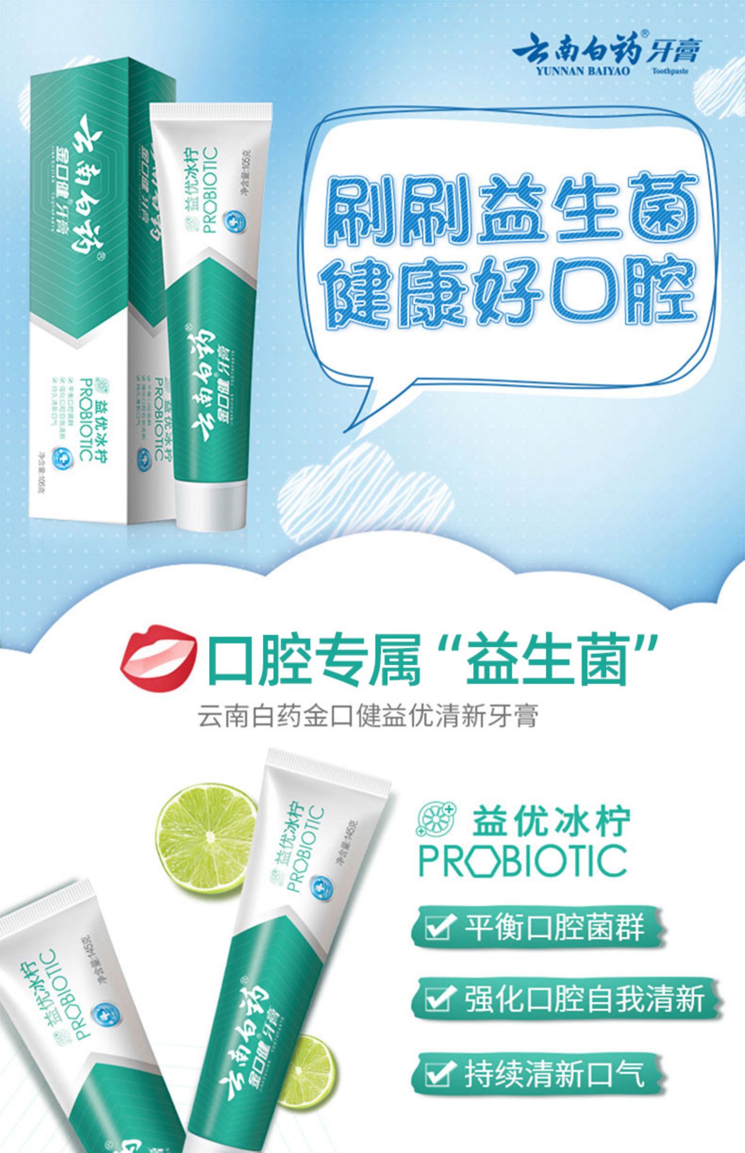 【官方正品】云南白药金口健益生菌牙膏单支多规格多口味可选益优冰柠激爽薄荷焕白清新口气改善口腔菌群平衡
