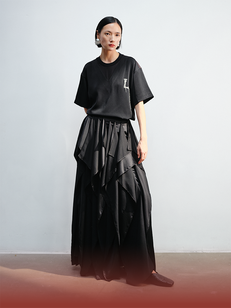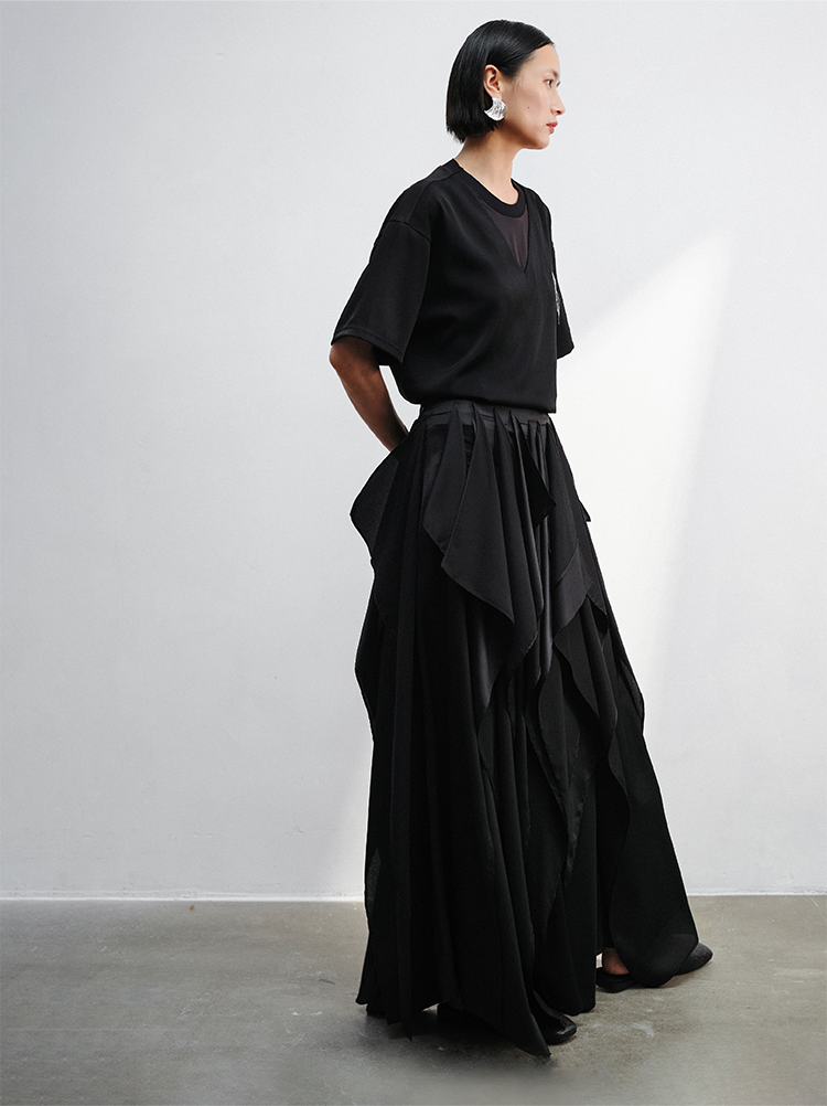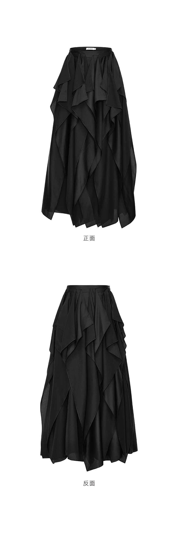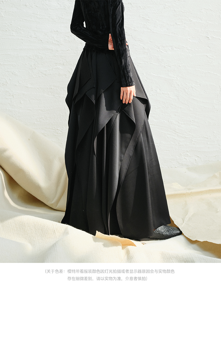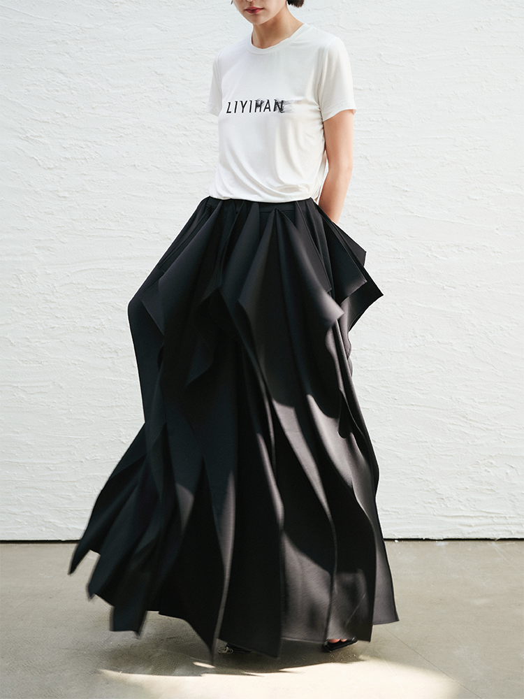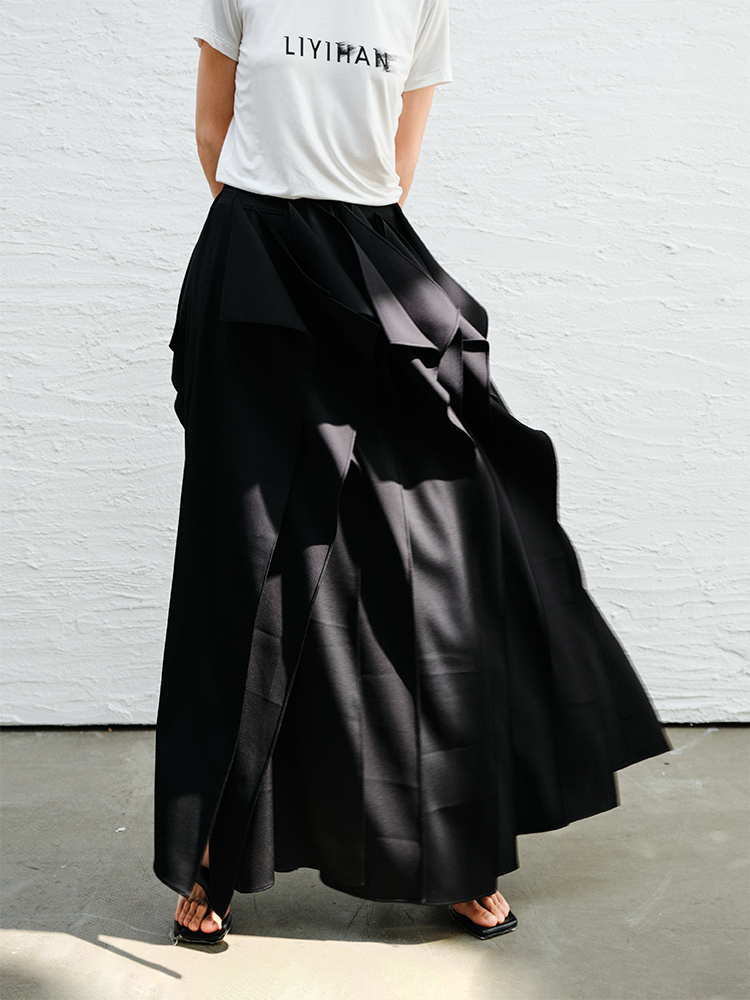 LIYIHAN织梦丨25春醋酸压褶肌理感半身裙女A摆黑色法式中长款长裙