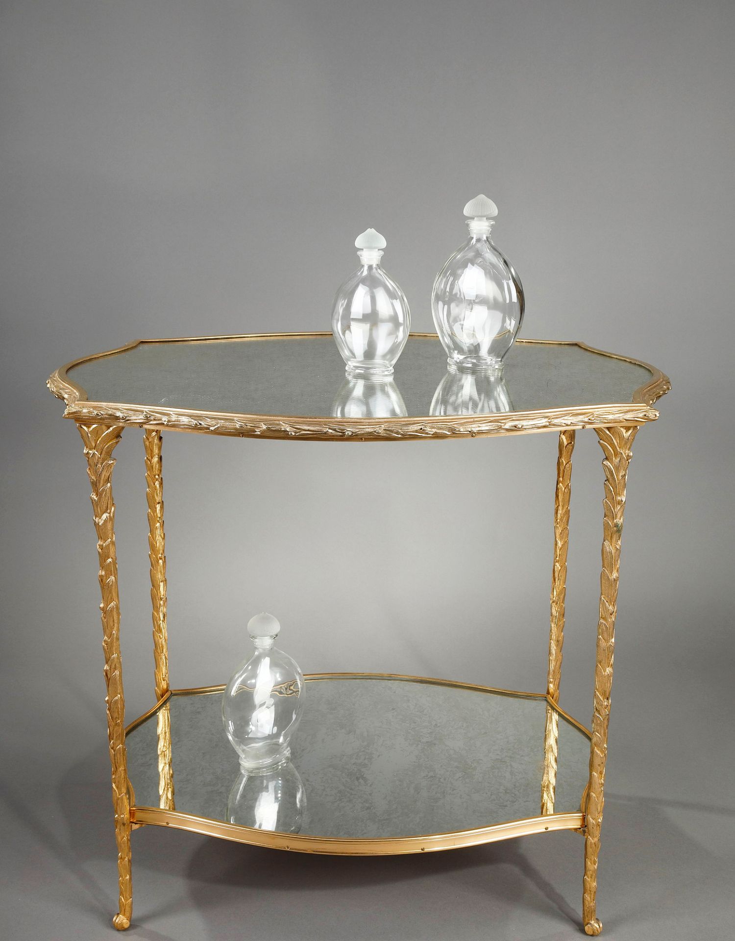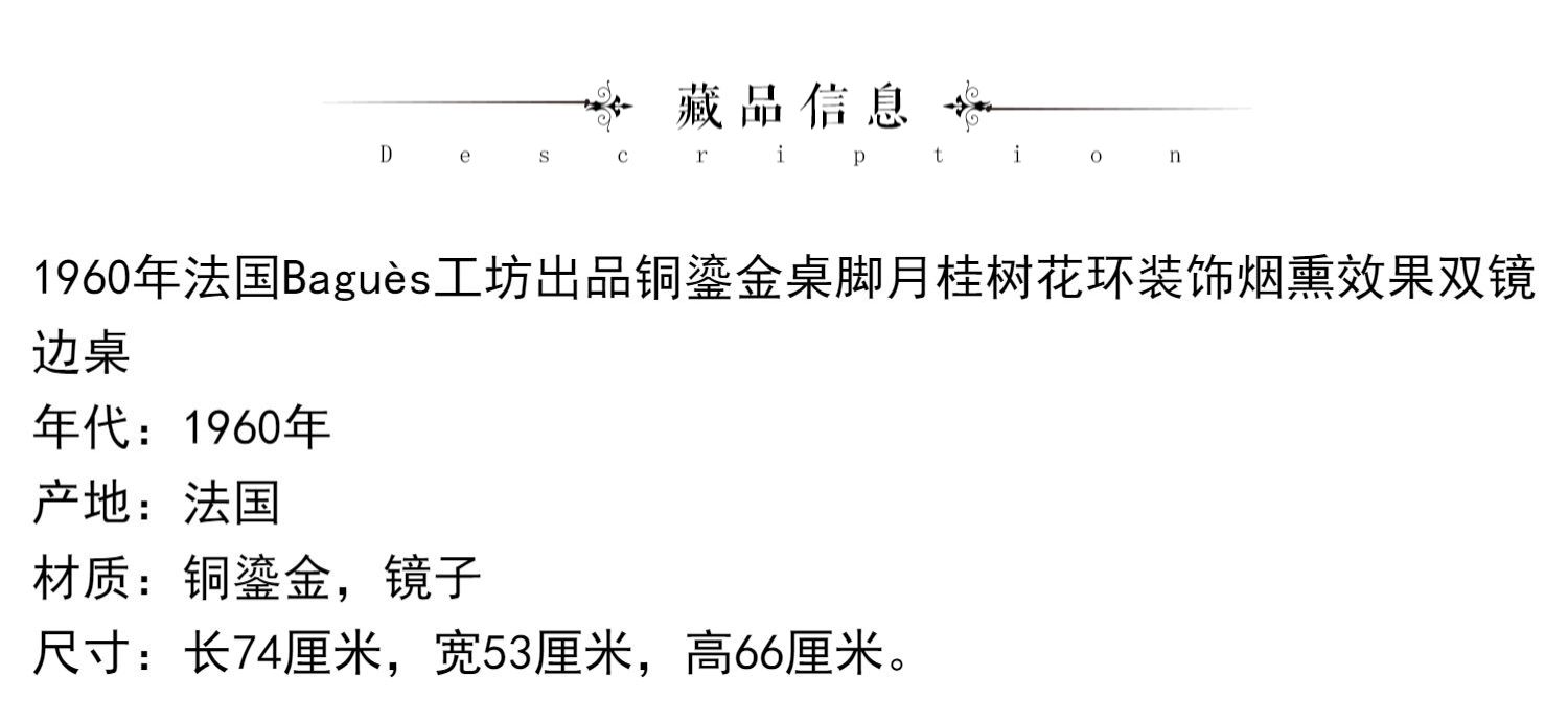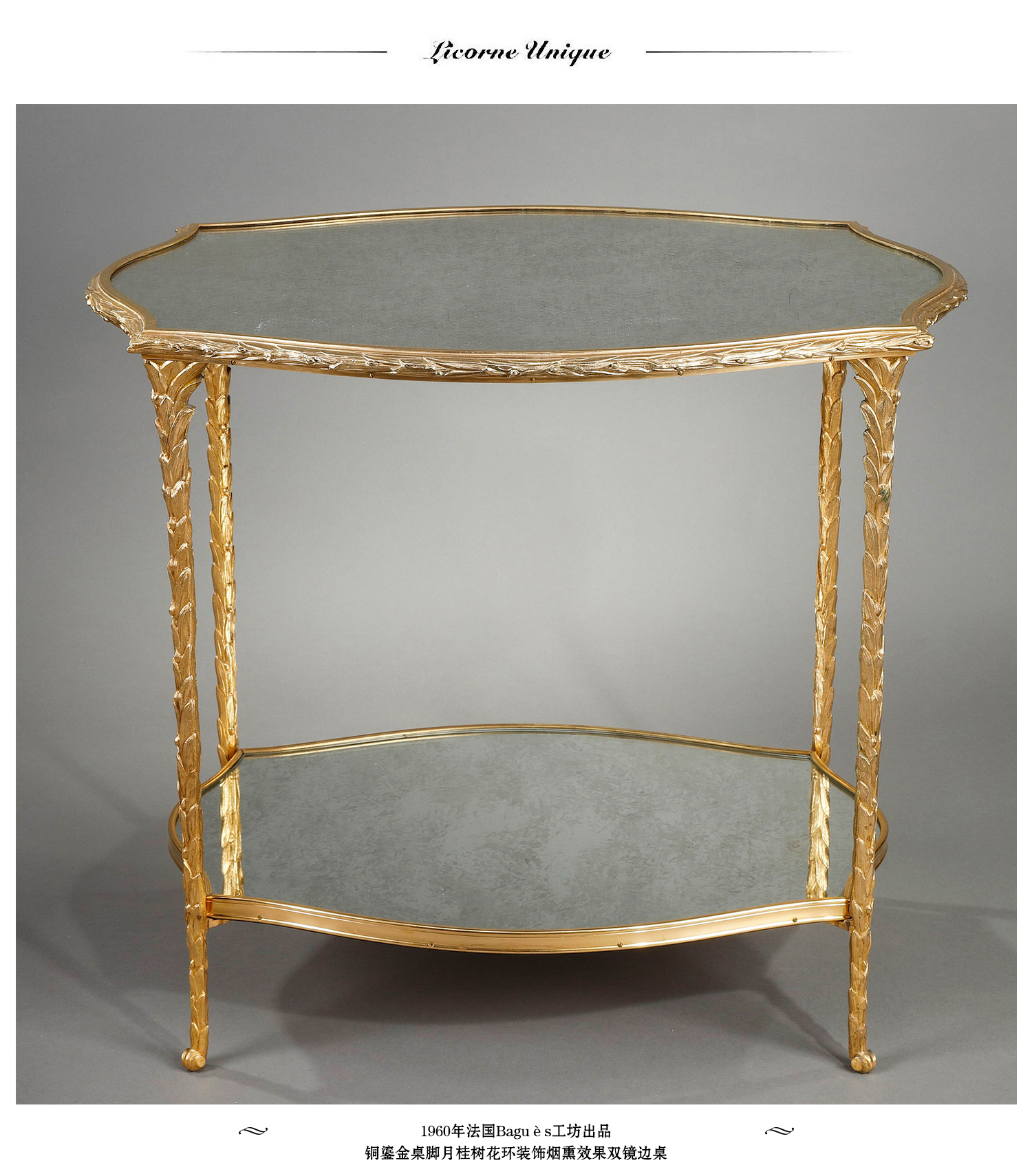 独角鹿西洋古董家具Baguès铜鎏金桌脚月桂树花环烟熏双镜边桌子