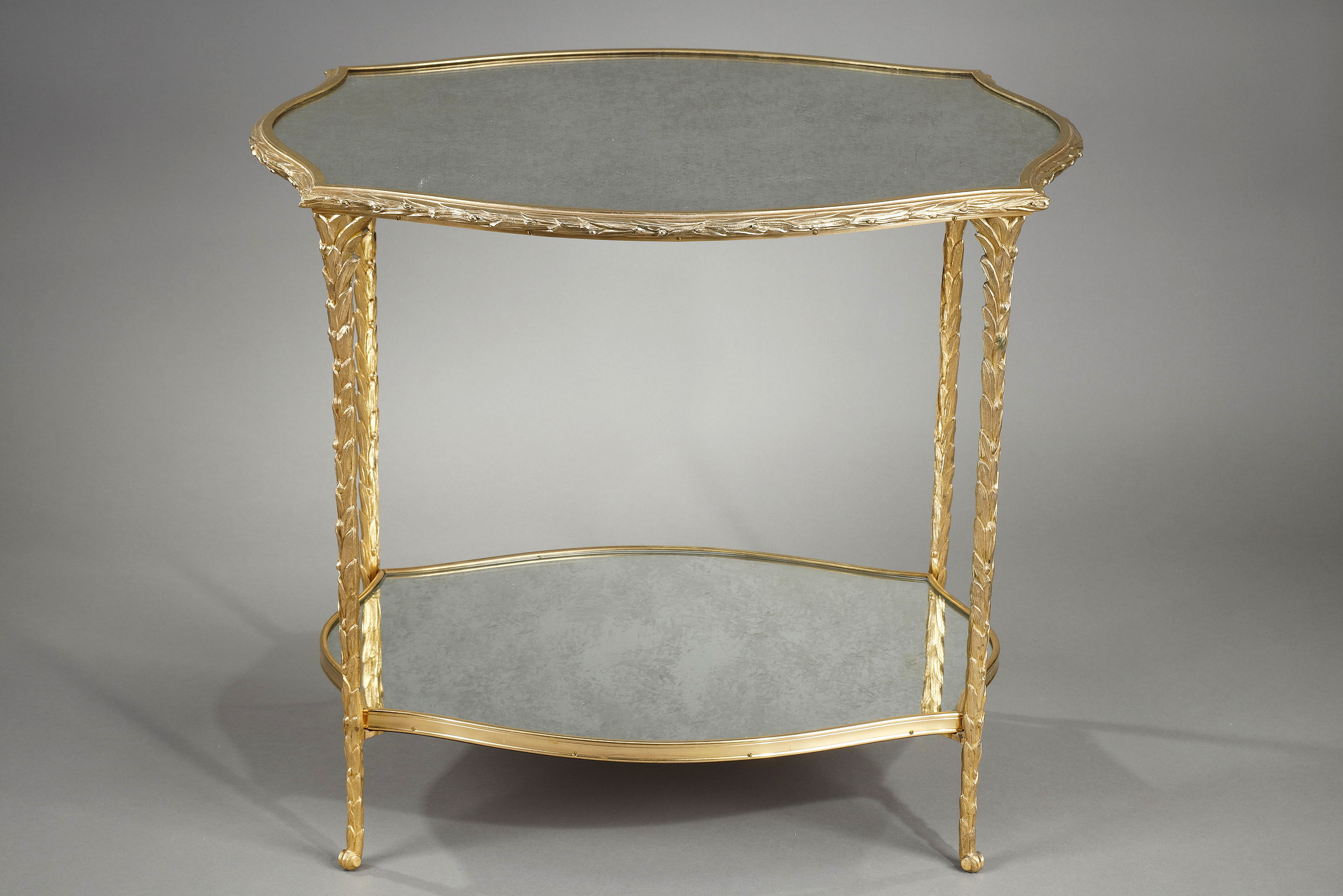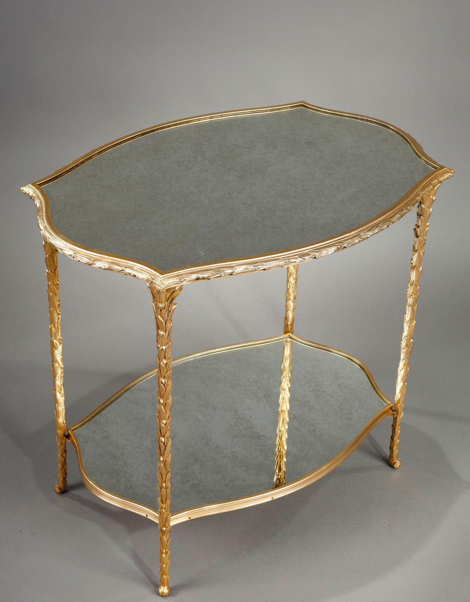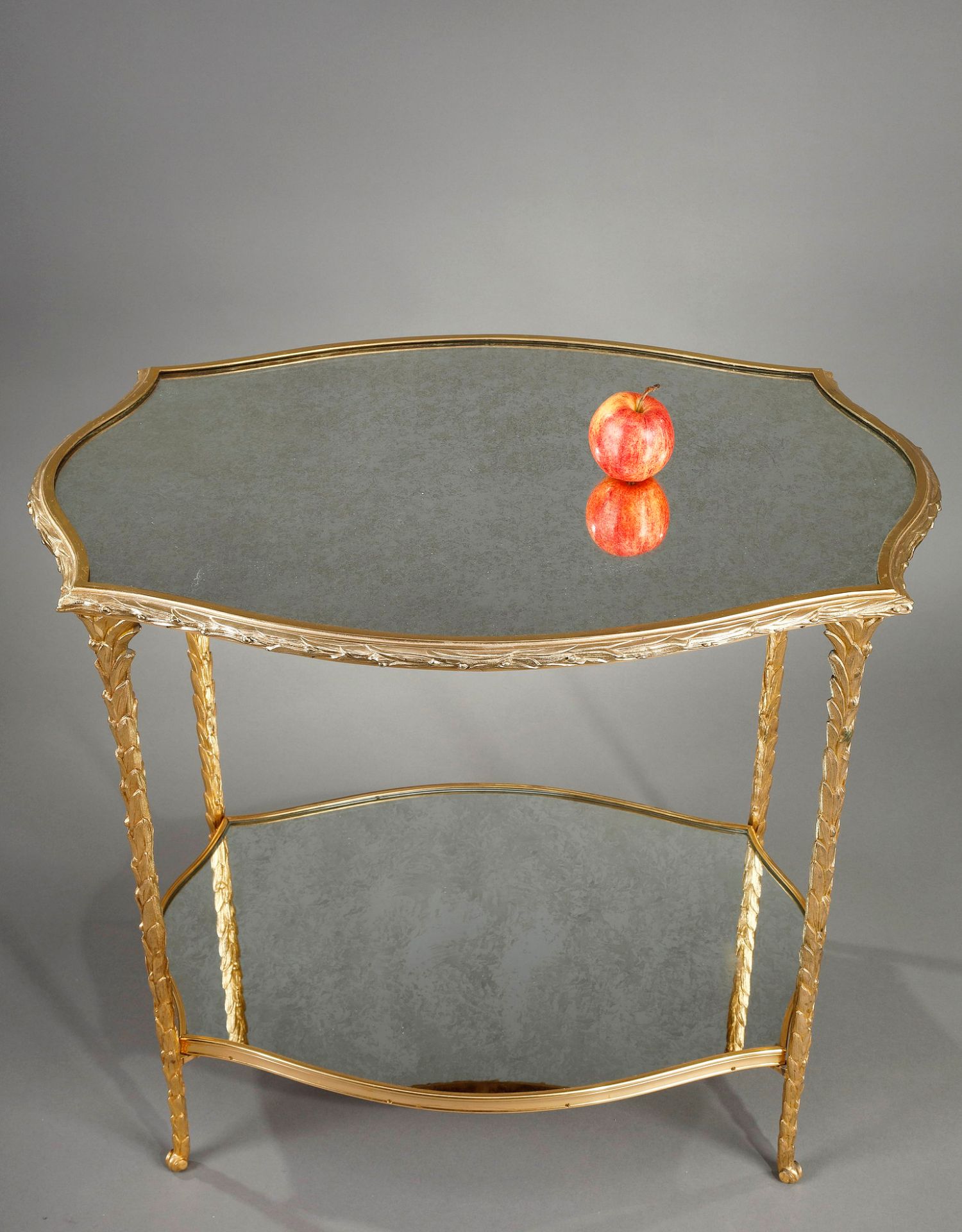 独角鹿西洋古董家具Baguès铜鎏金桌脚月桂树花环烟熏双镜边桌子