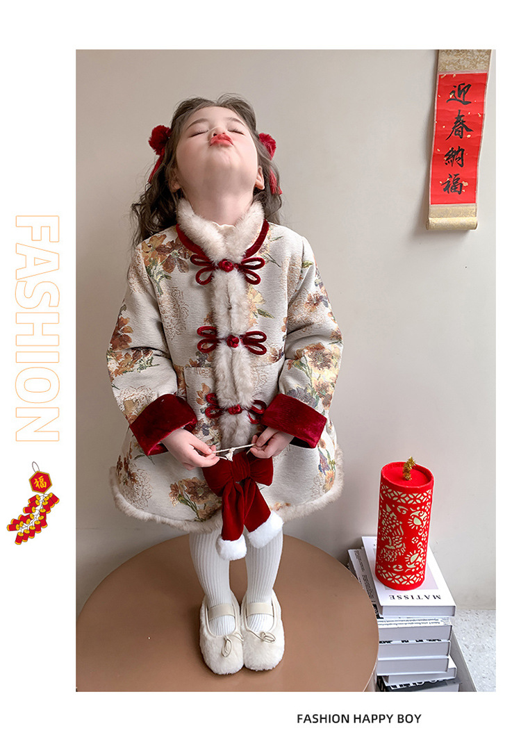 【YW】无忧购新年儿童国风花朵盘扣旗袍洋气年服Q63-1(截单后7天发货)25年清仓捡漏