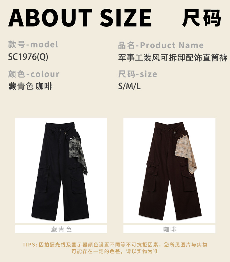 秋季军事工装风可拆卸配饰直筒裤女纪念日百货门店同款165494627