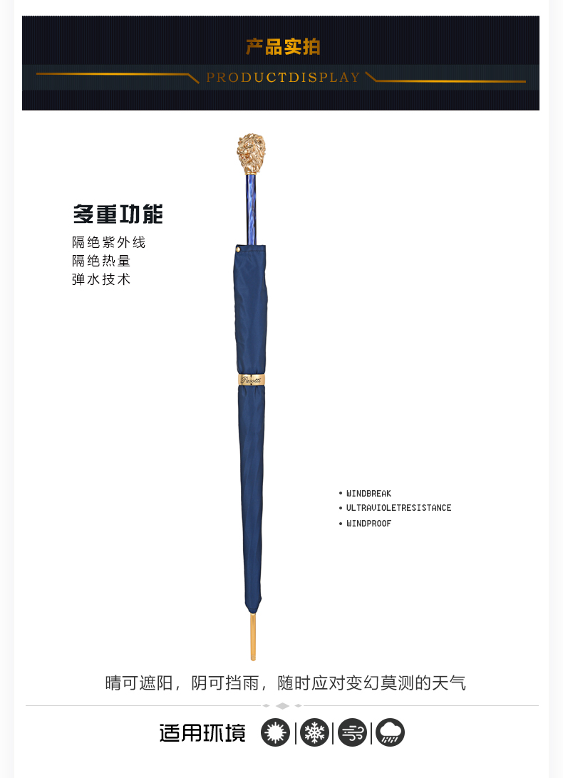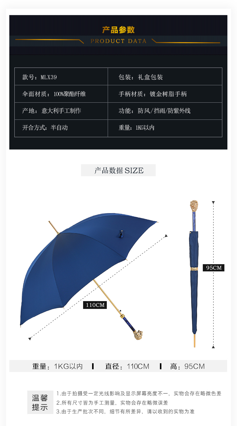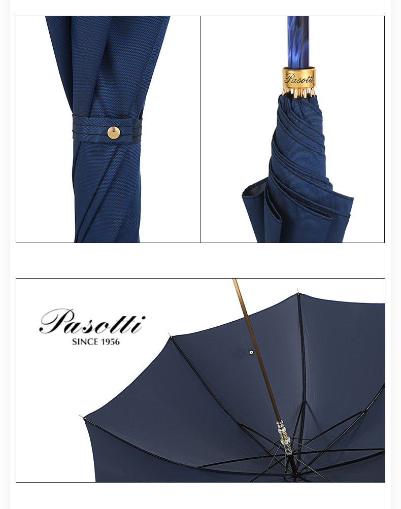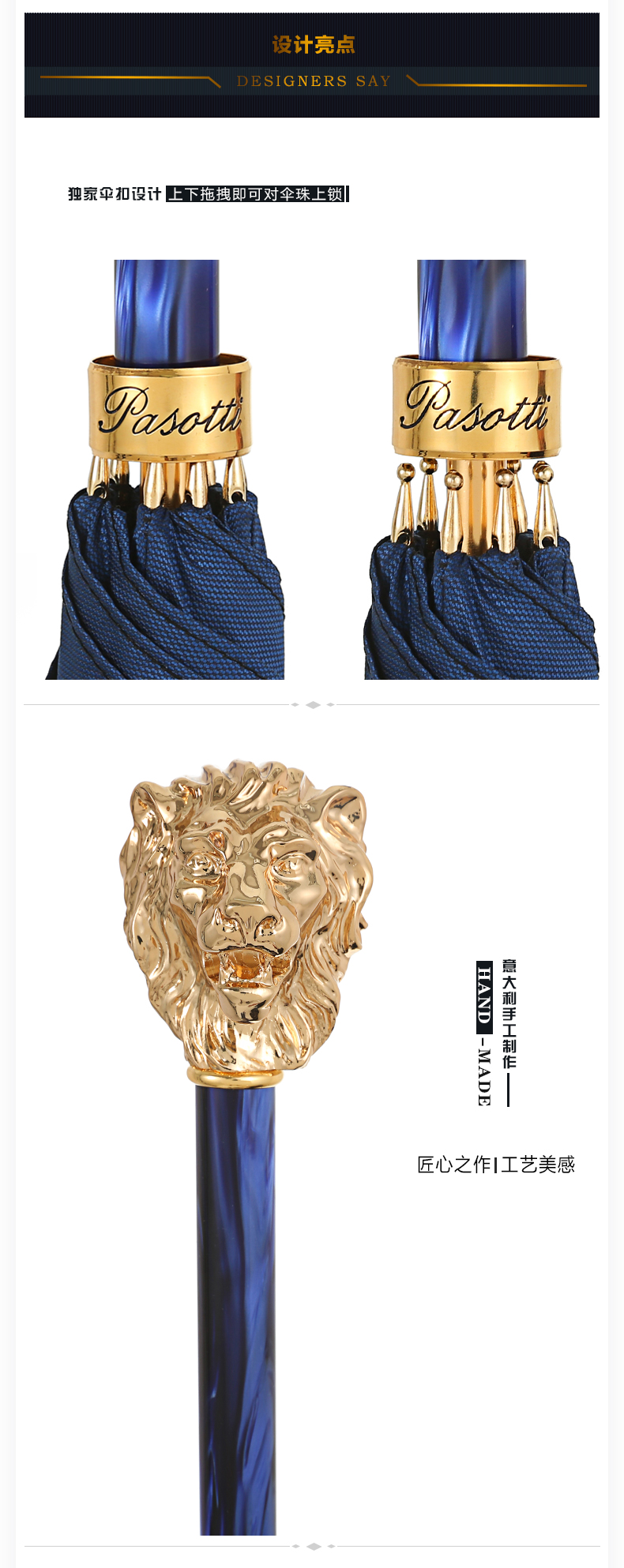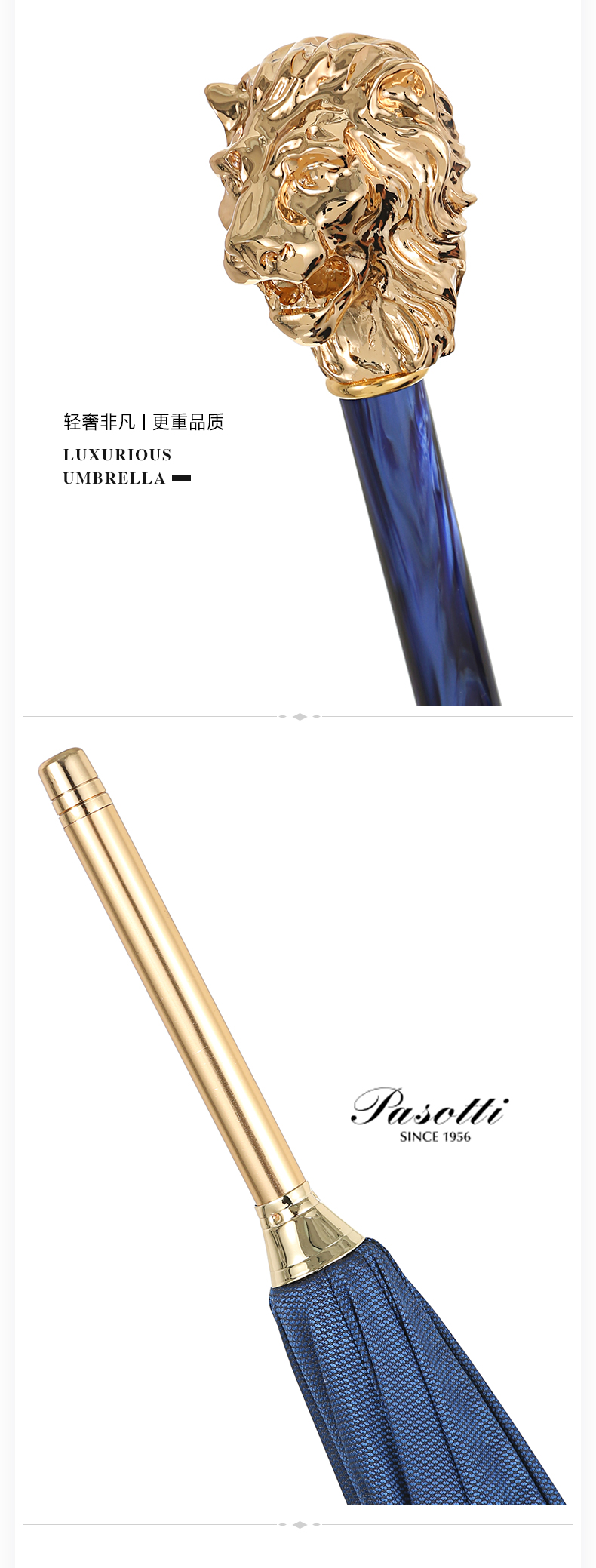 PASOTTI 意大利手工蓝色金狮子头蓝玳瑁纹手柄男直柄晴雨伞礼盒装 直柄晴雨伞 MLX39