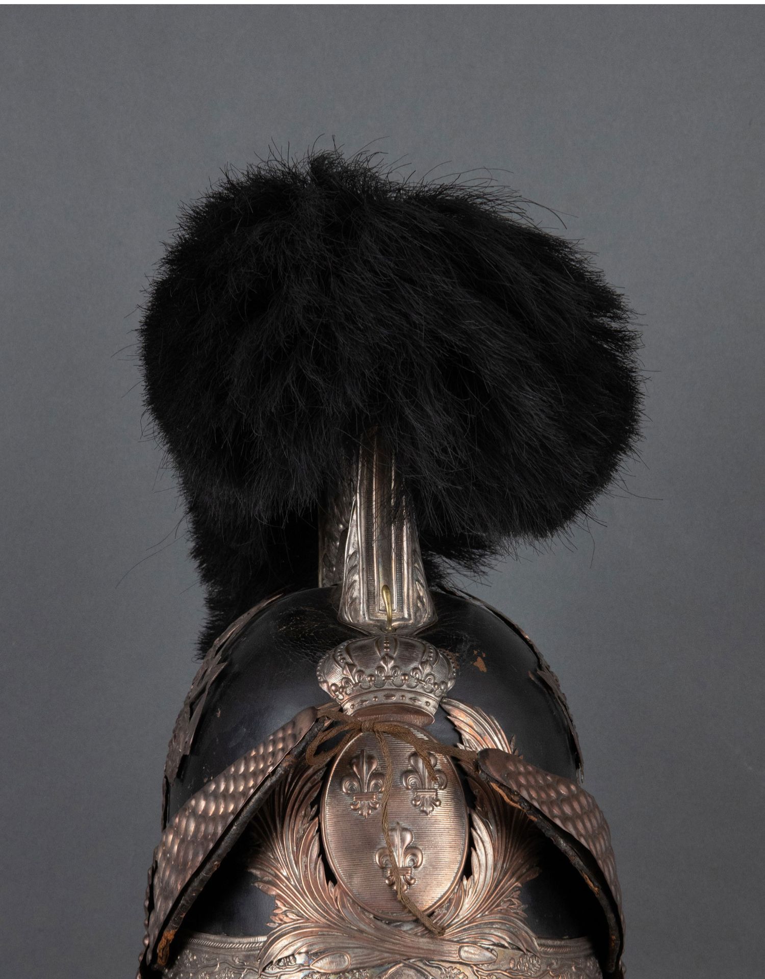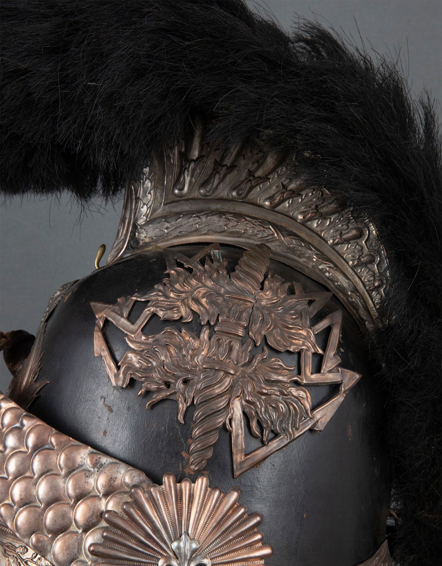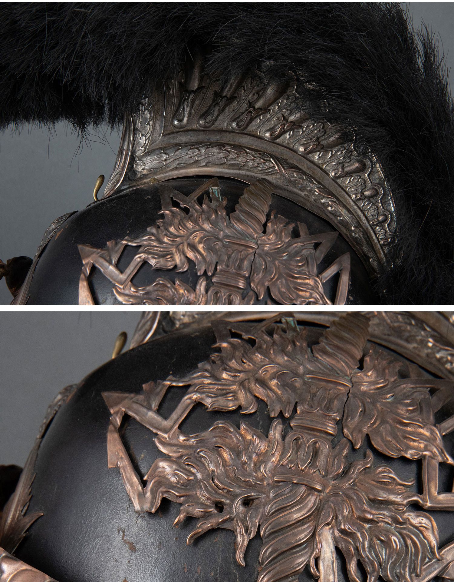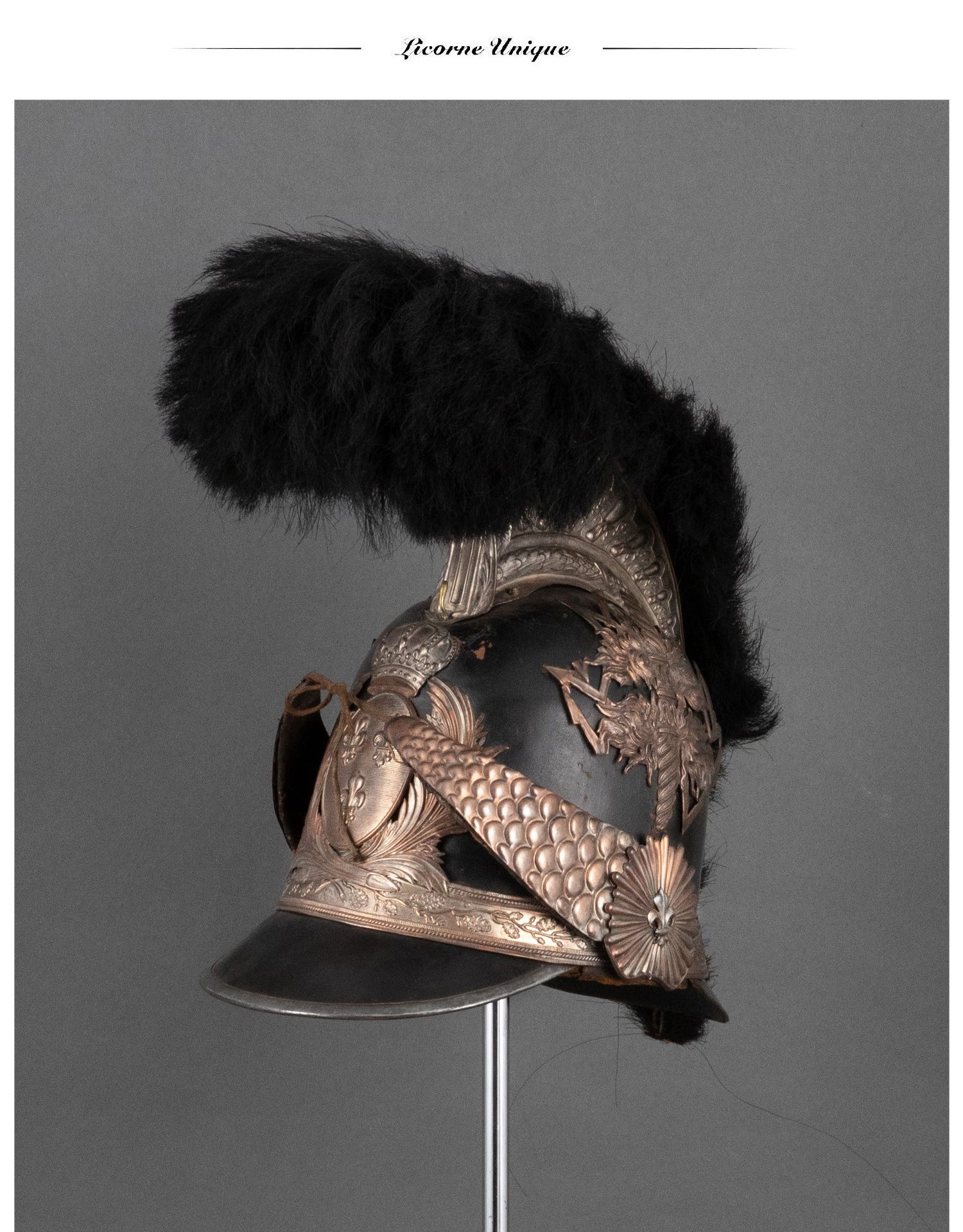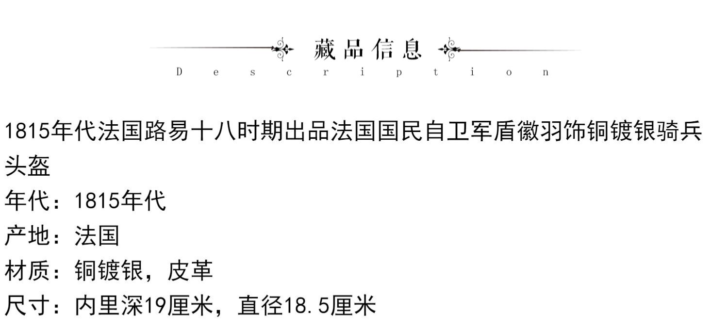 独角鹿西洋古董路易十八时期法国国民自卫军盾徽羽铜镀银骑兵头盔