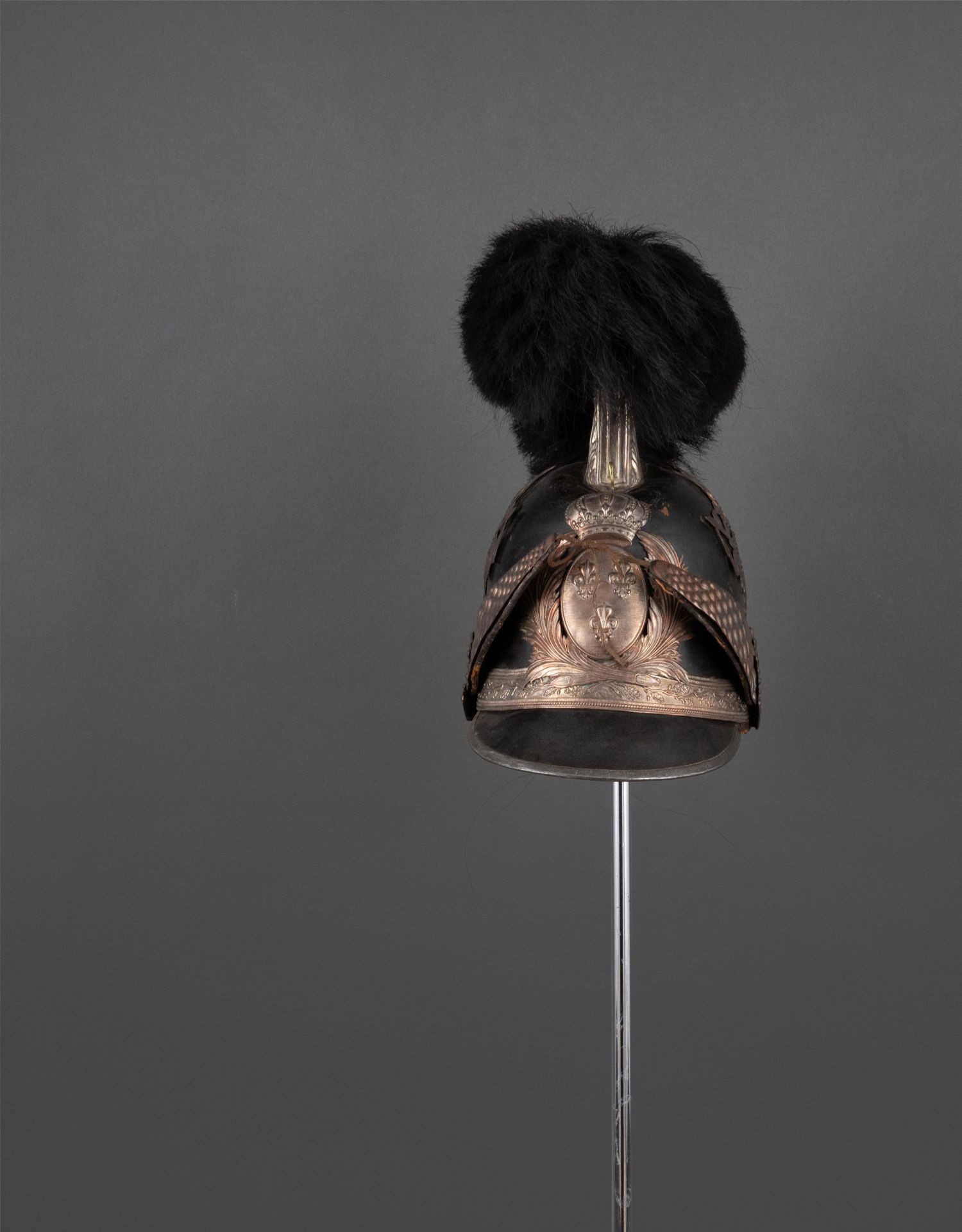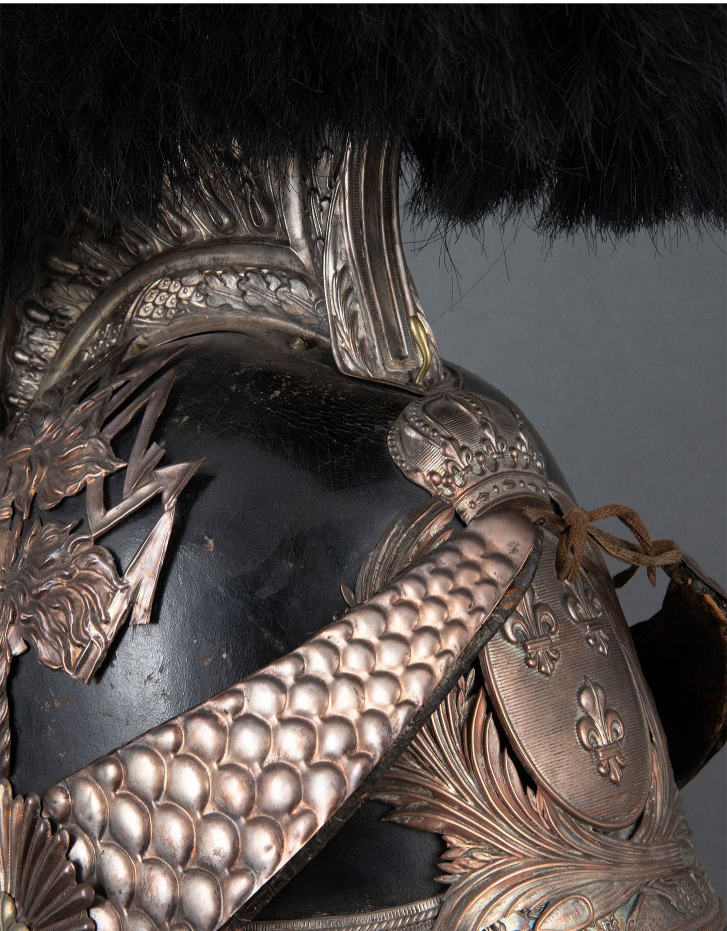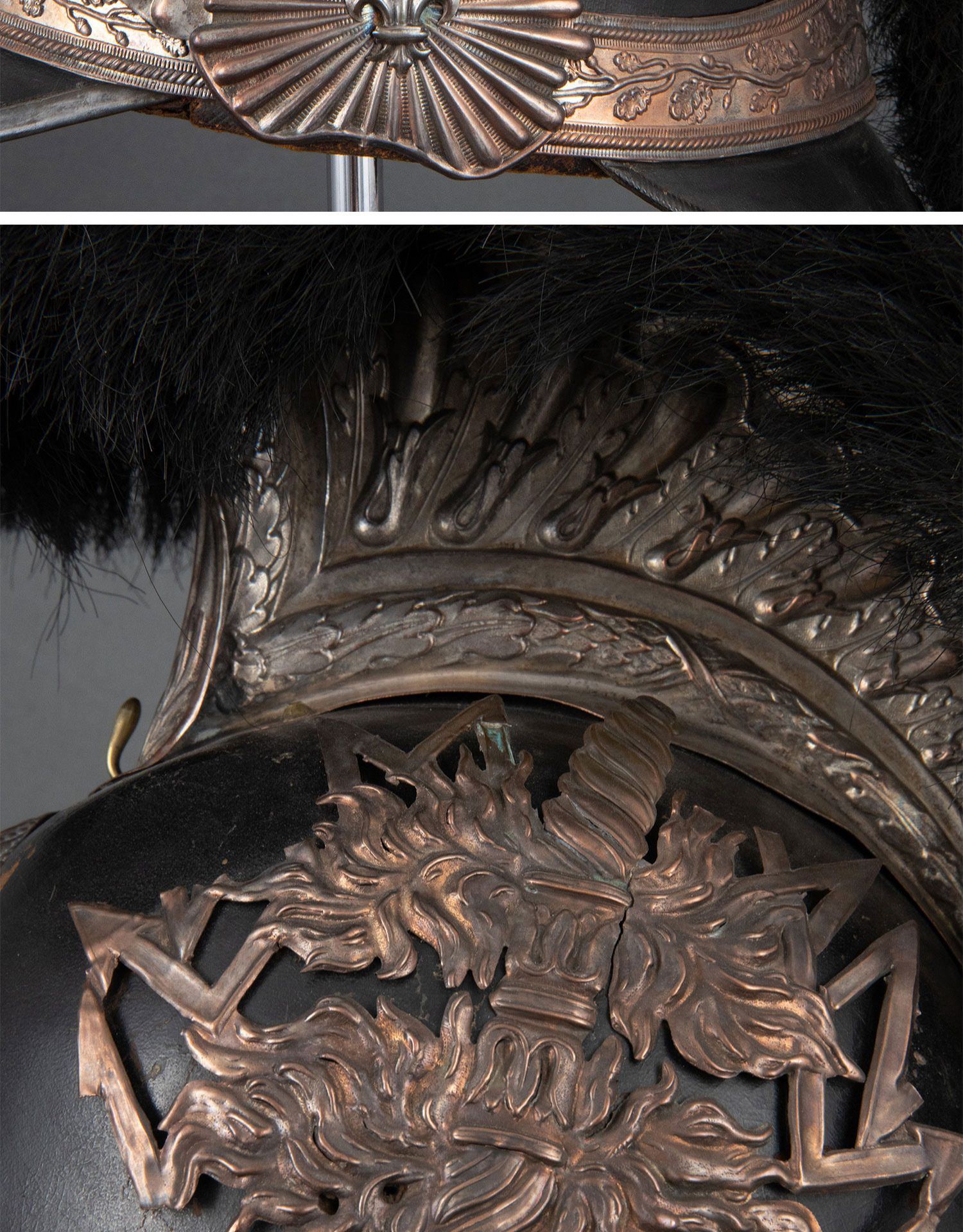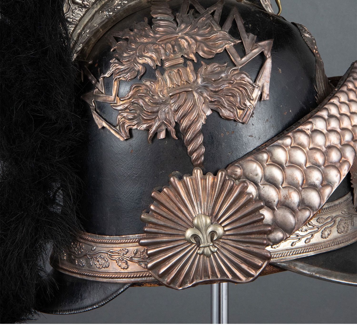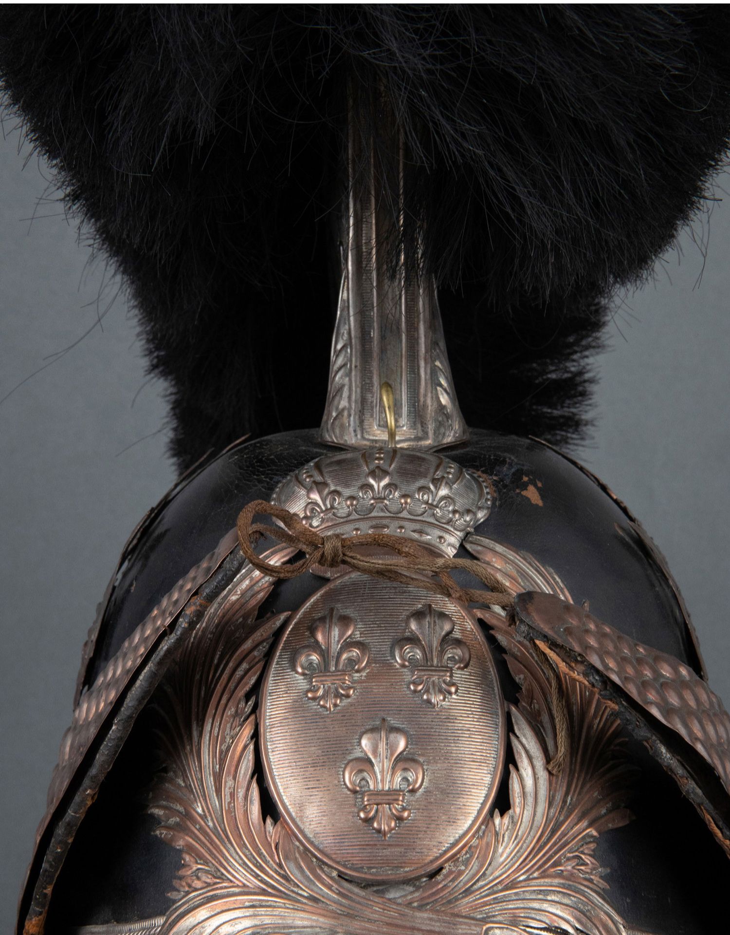 独角鹿西洋古董路易十八时期法国国民自卫军盾徽羽铜镀银骑兵头盔