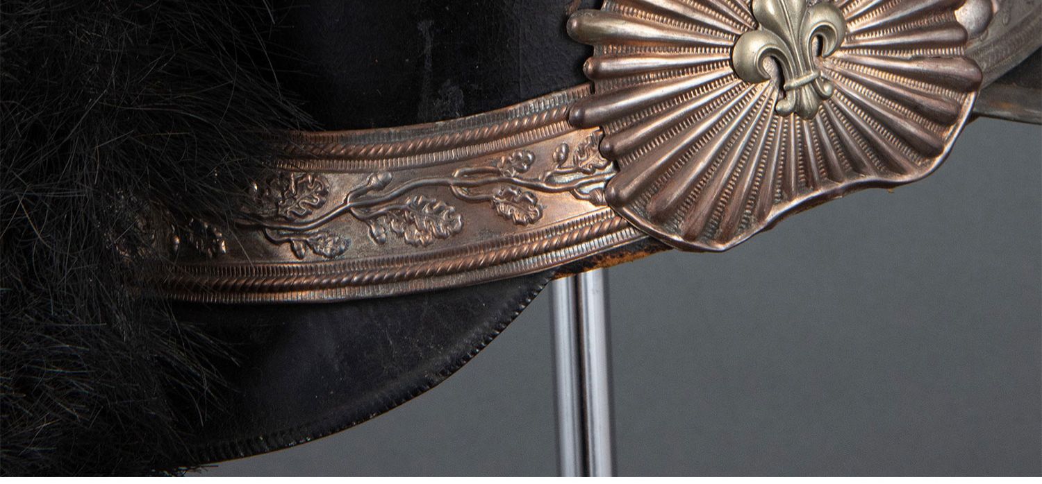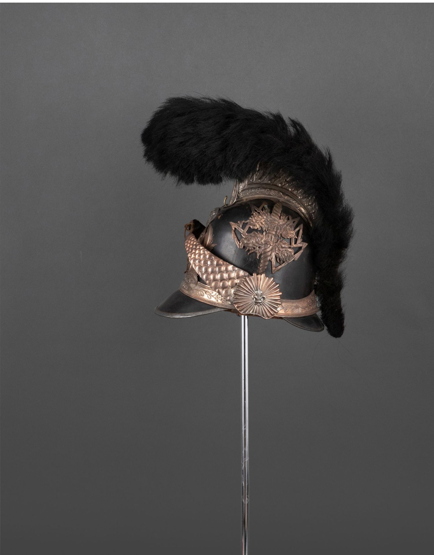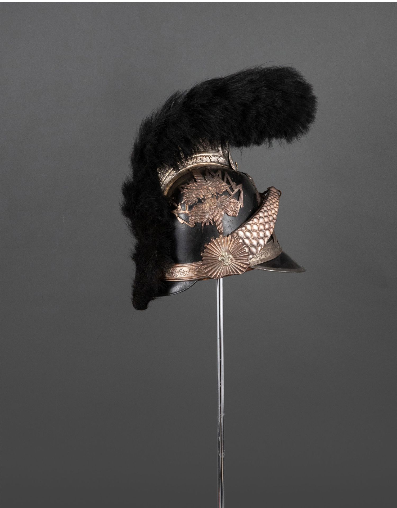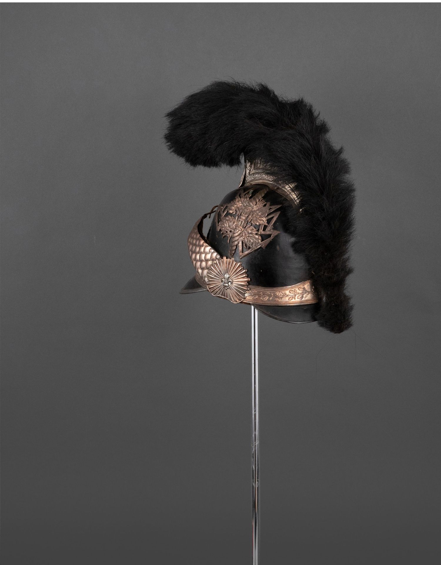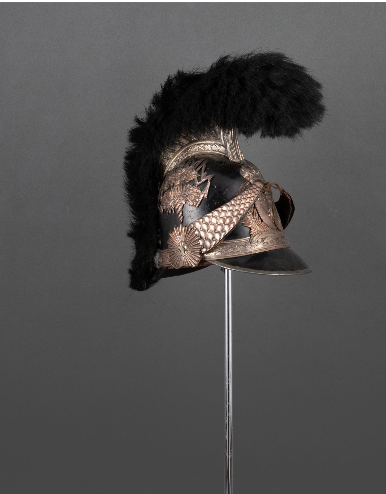 独角鹿西洋古董路易十八时期法国国民自卫军盾徽羽铜镀银骑兵头盔